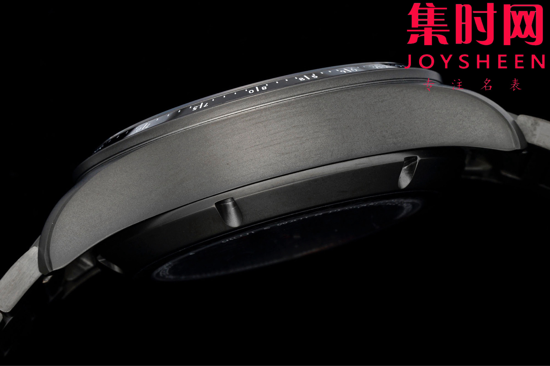2⃣️除了拥有极为醒目的测速陶瓷圈口,这两款飞计高性能为了进一步强化其动感的赛车基因,不仅刻度与阿拉伯数字时标由常规飞计的印刷形式,变为了和大飞G63相同的镶嵌式,并且所有时标、指针的边框和表盘都采用了与闪亮测速圈完美呼应的亮黑色装饰,亮黑色的加入非常明显的让飞计高性能看起来更加的精致和高级,另外,三个小表盘不仅将数字区域和刻度进行了分区,外围的刻度环还特别增加了坡度,营造出了下沉的感觉,从而进一步增强了整表的精致度和层次感。