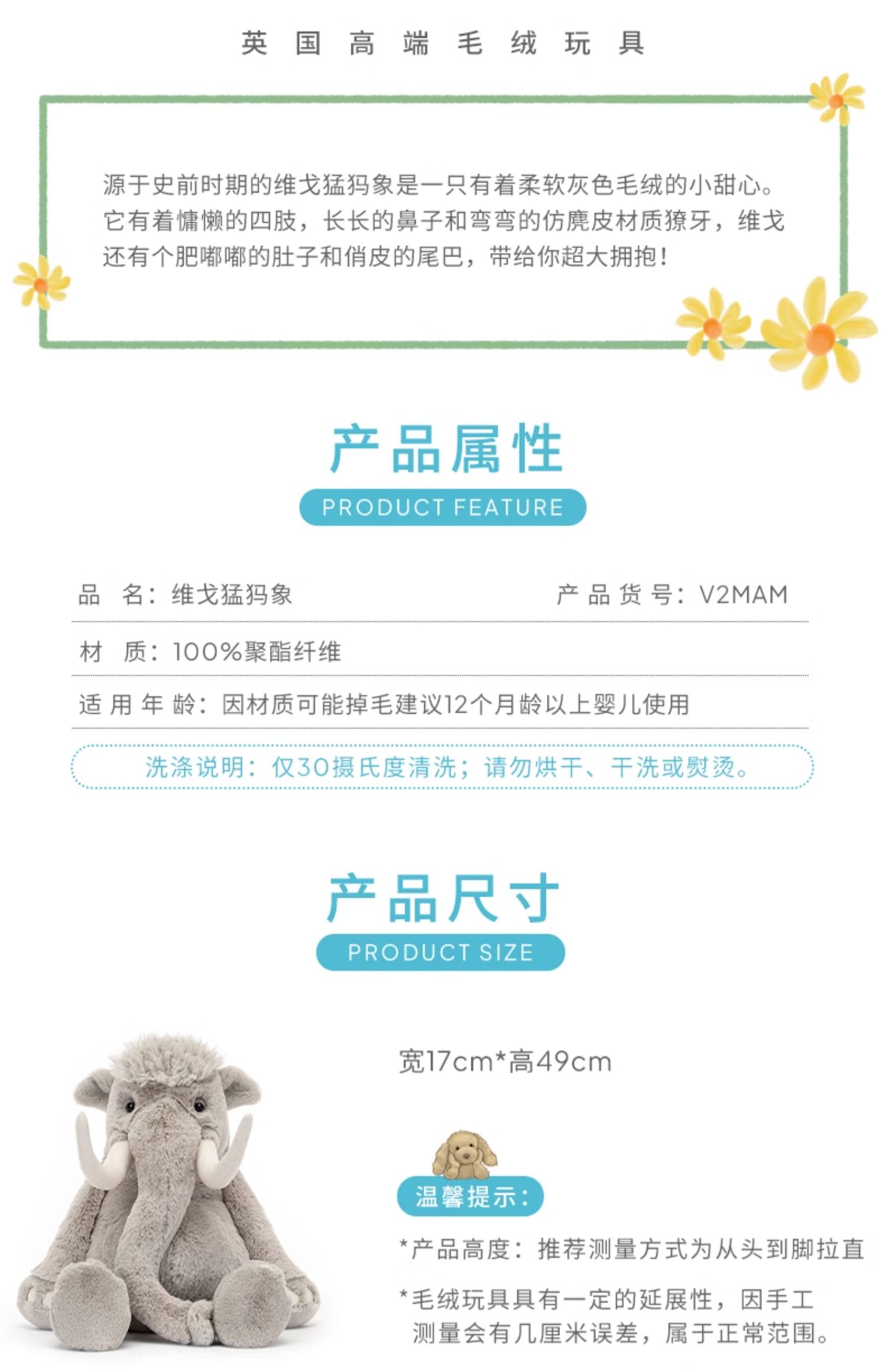 Jellycat 维戈猛犸象 49cm