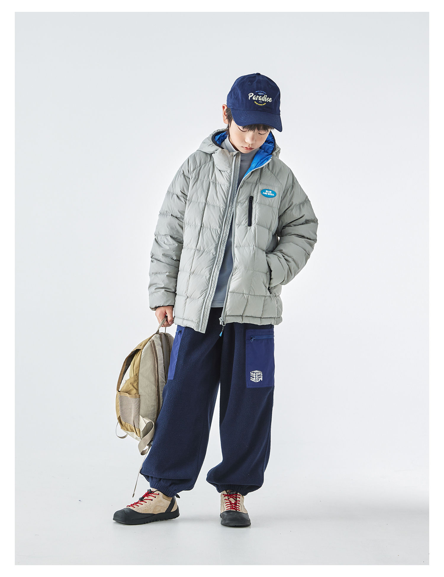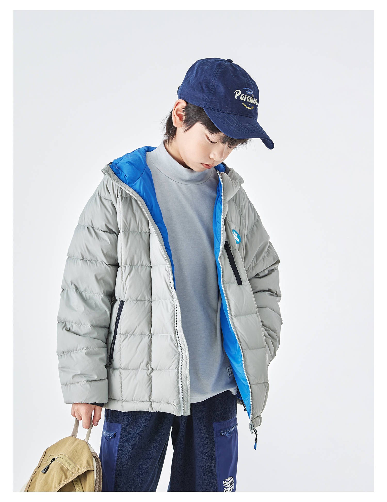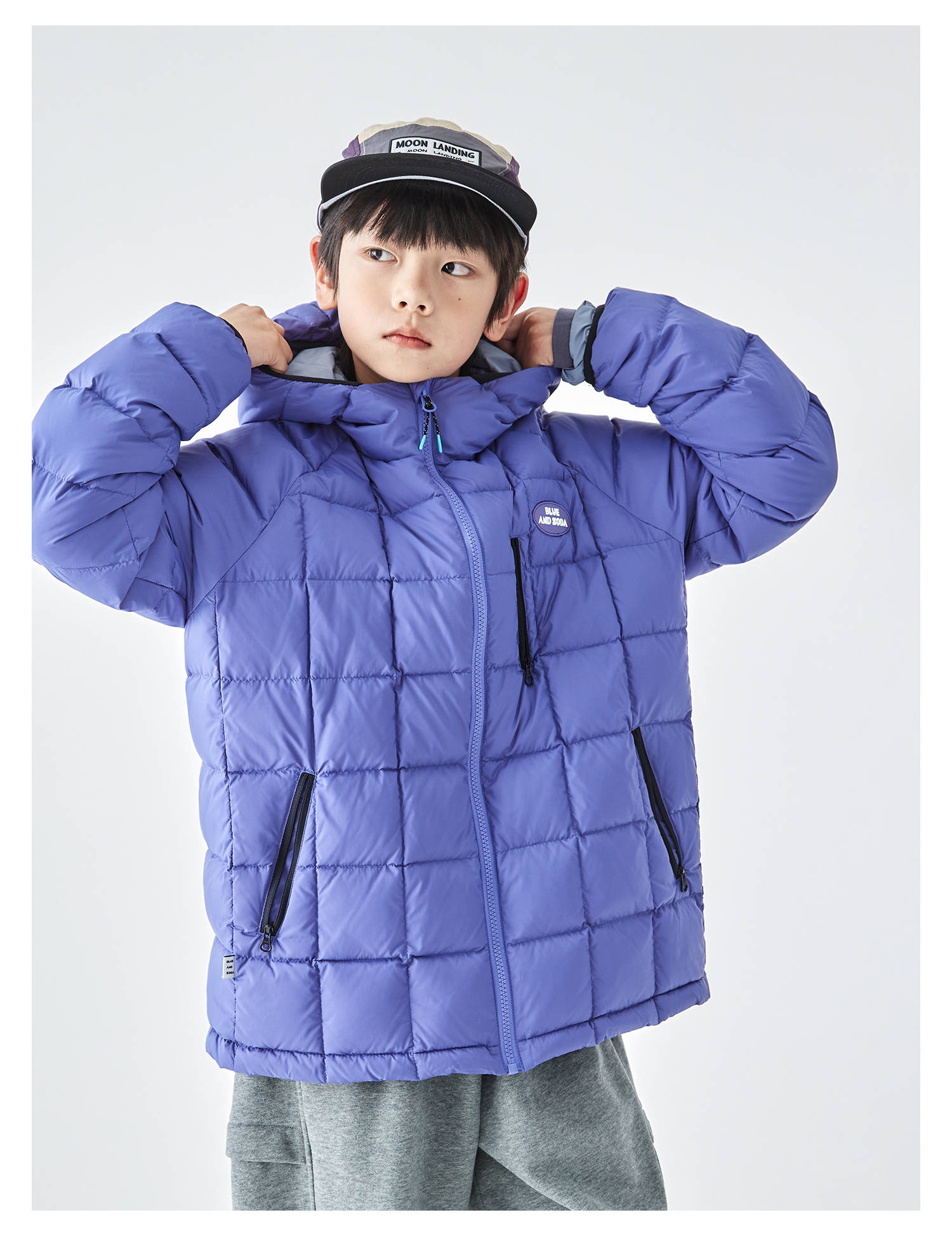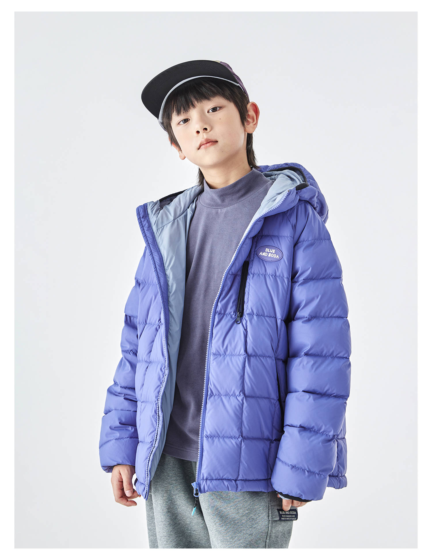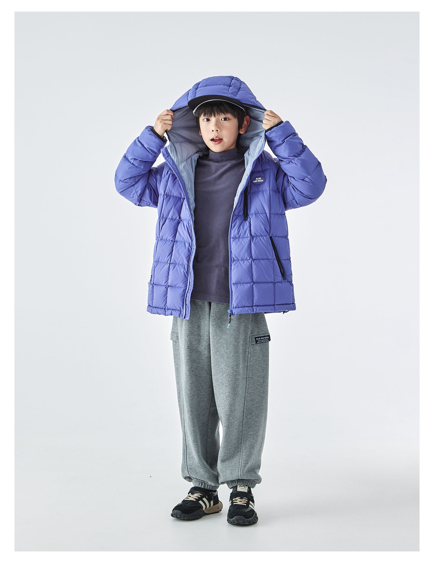 蓝汽水25年冬季新款亲子中大男童轻薄羽绒服防钻绒抗静电连帽外套