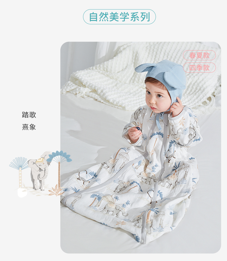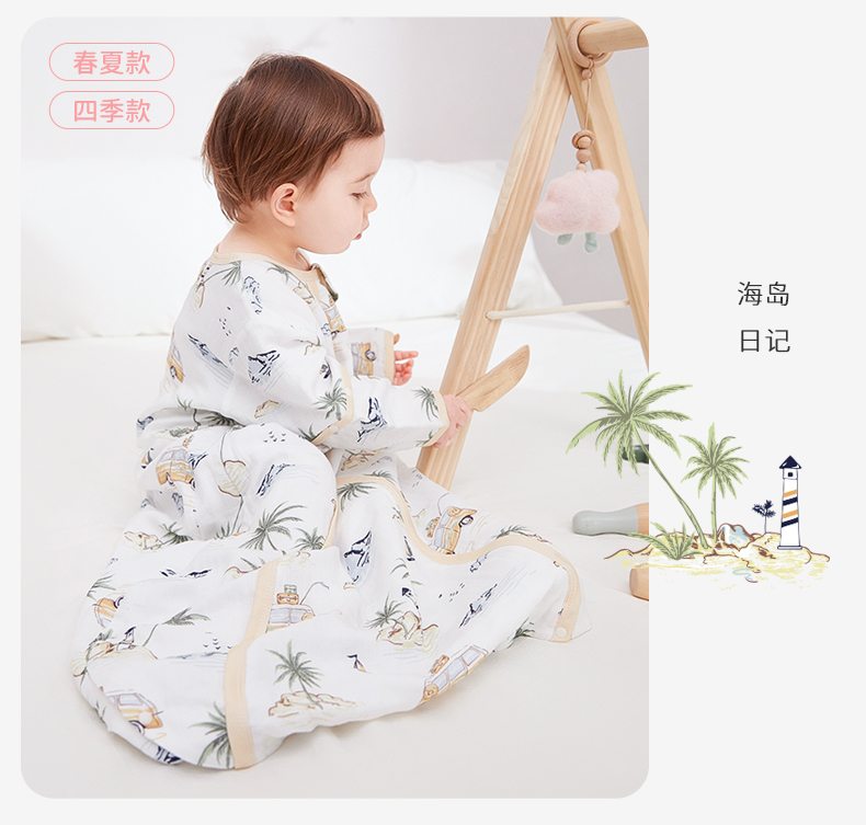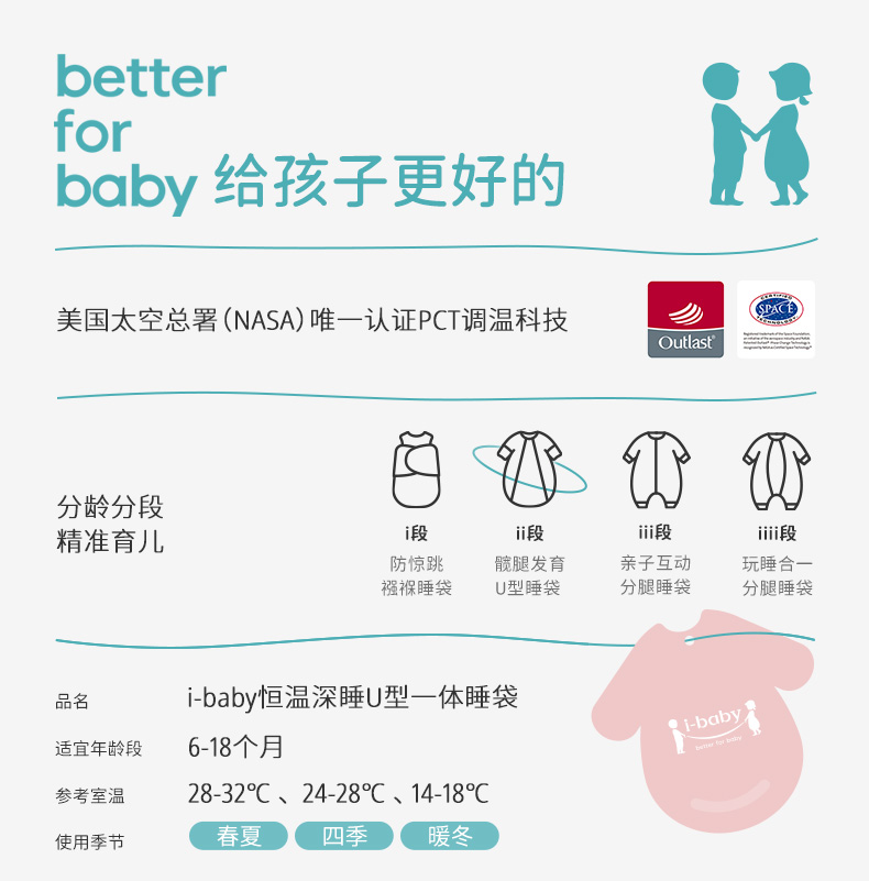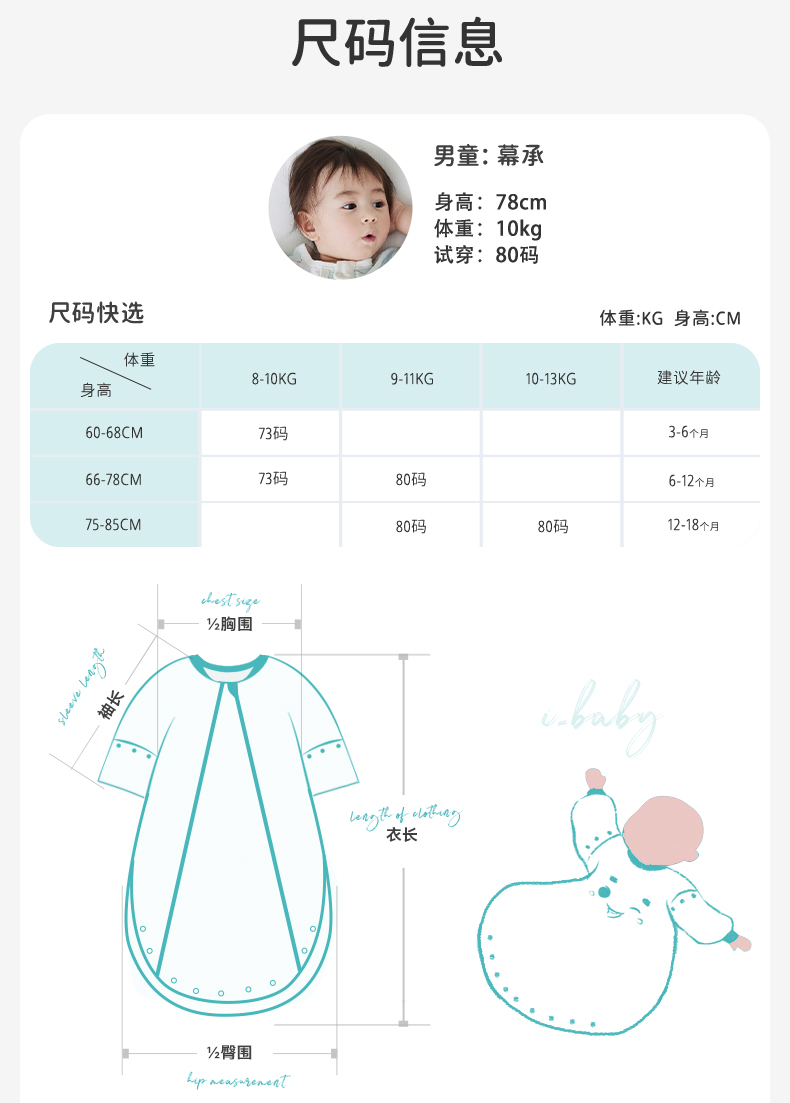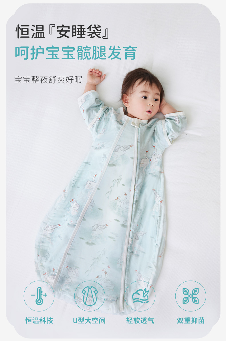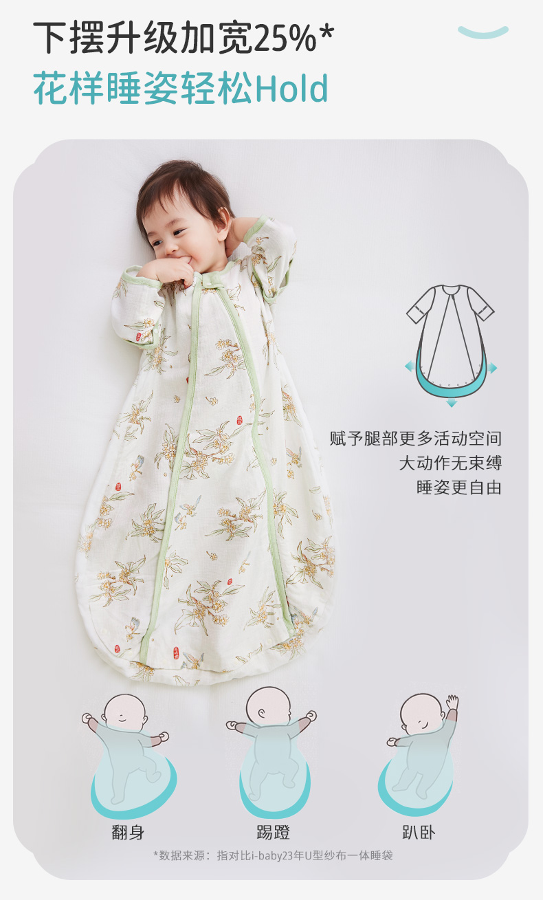 i-baby/英伦宝贝6-12月婴儿髋腿发育恒温深睡四层纱布U型睡袋防踢被 春秋四季通用防惊跳U型睡袋