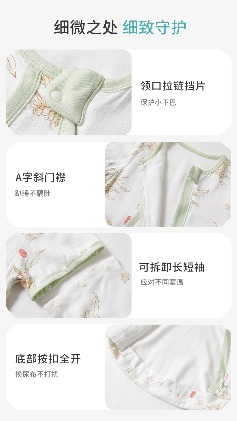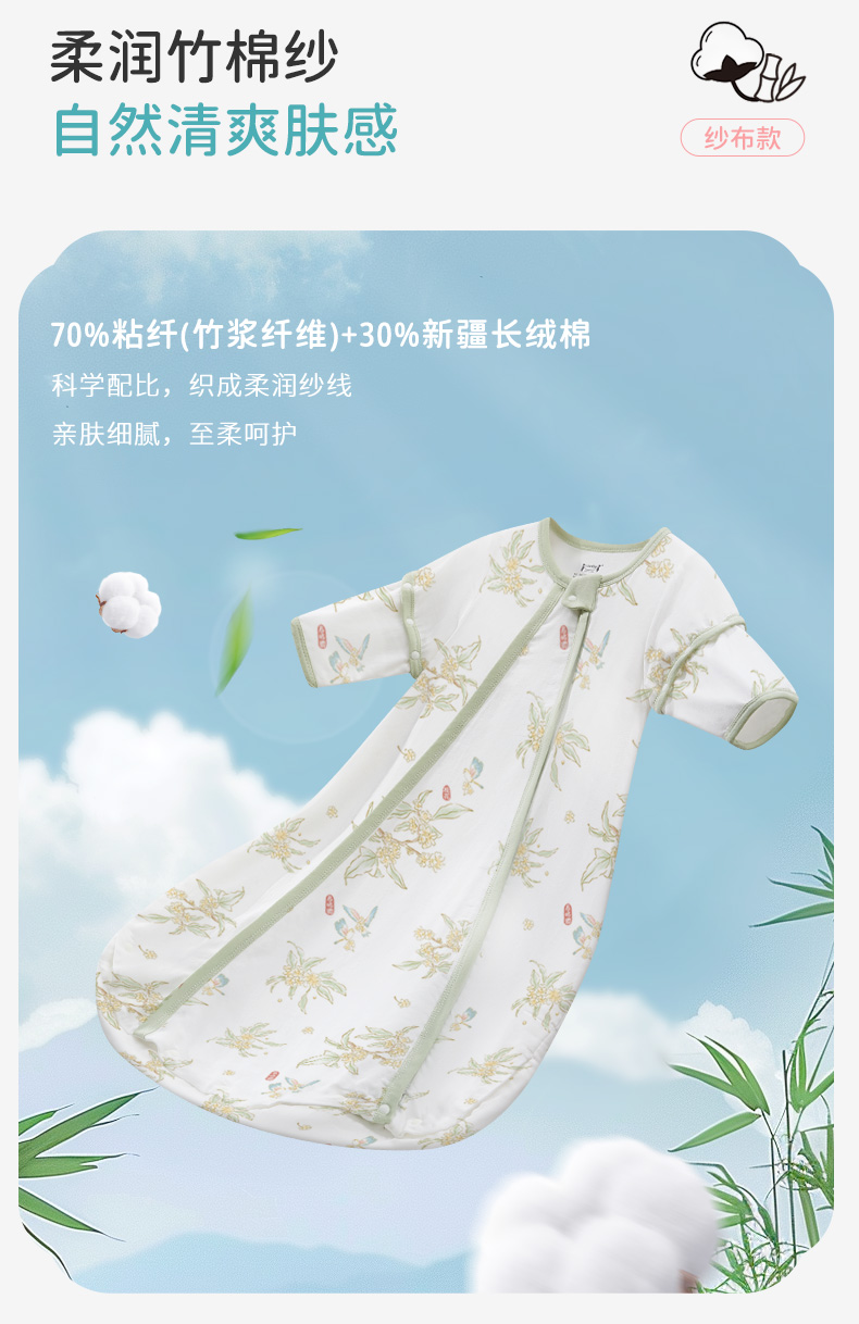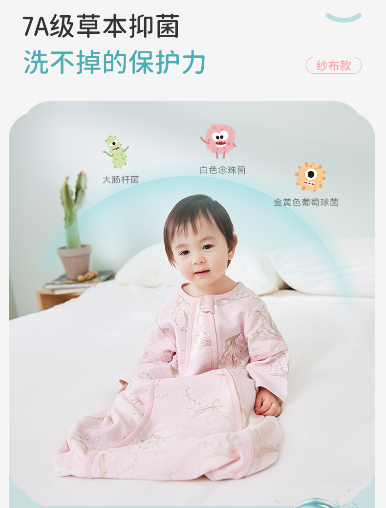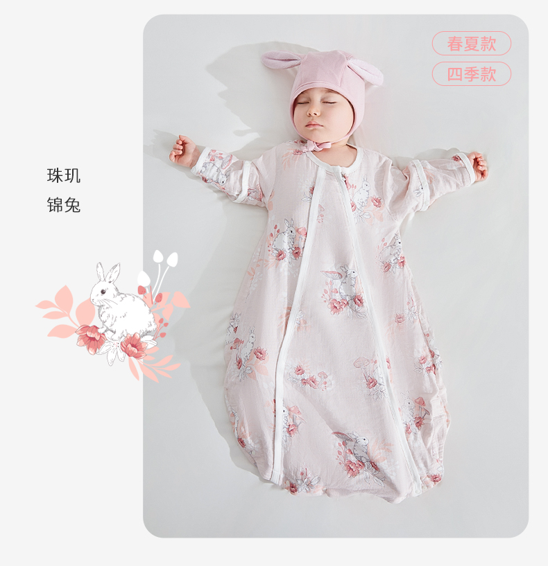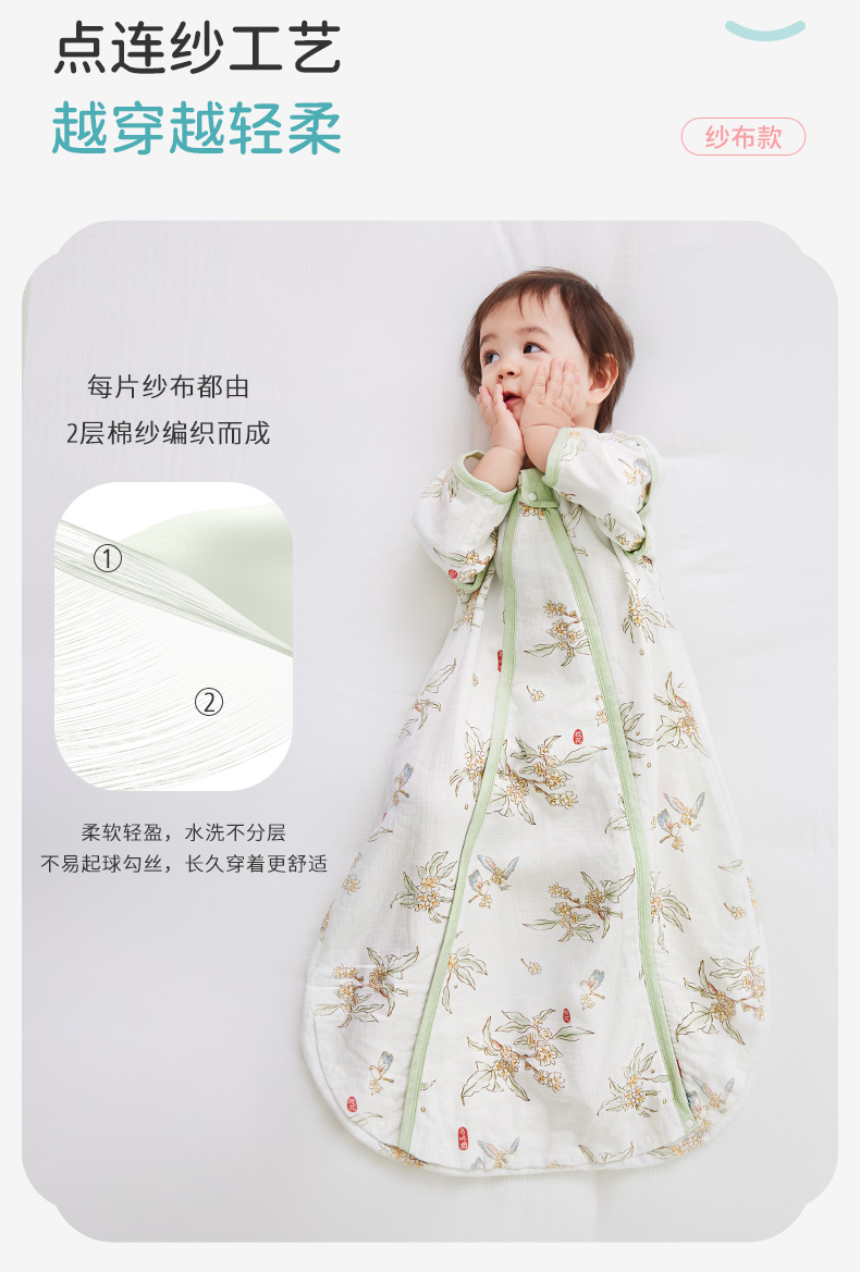i-baby/英伦宝贝6-12月婴儿髋腿发育恒温深睡四层纱布U型睡袋防踢被 春秋四季通用防惊跳U型睡袋