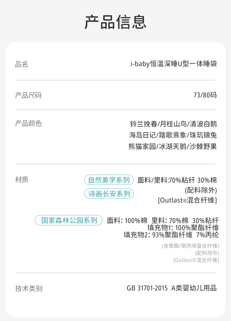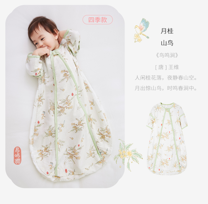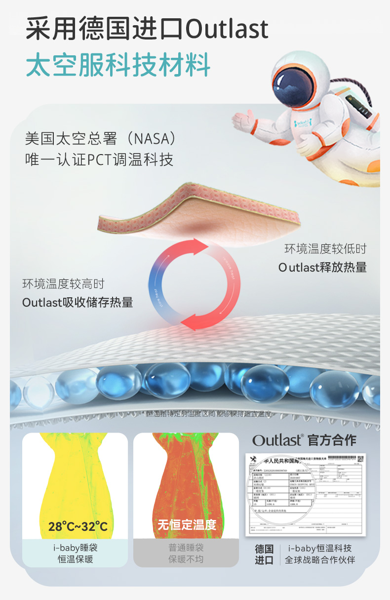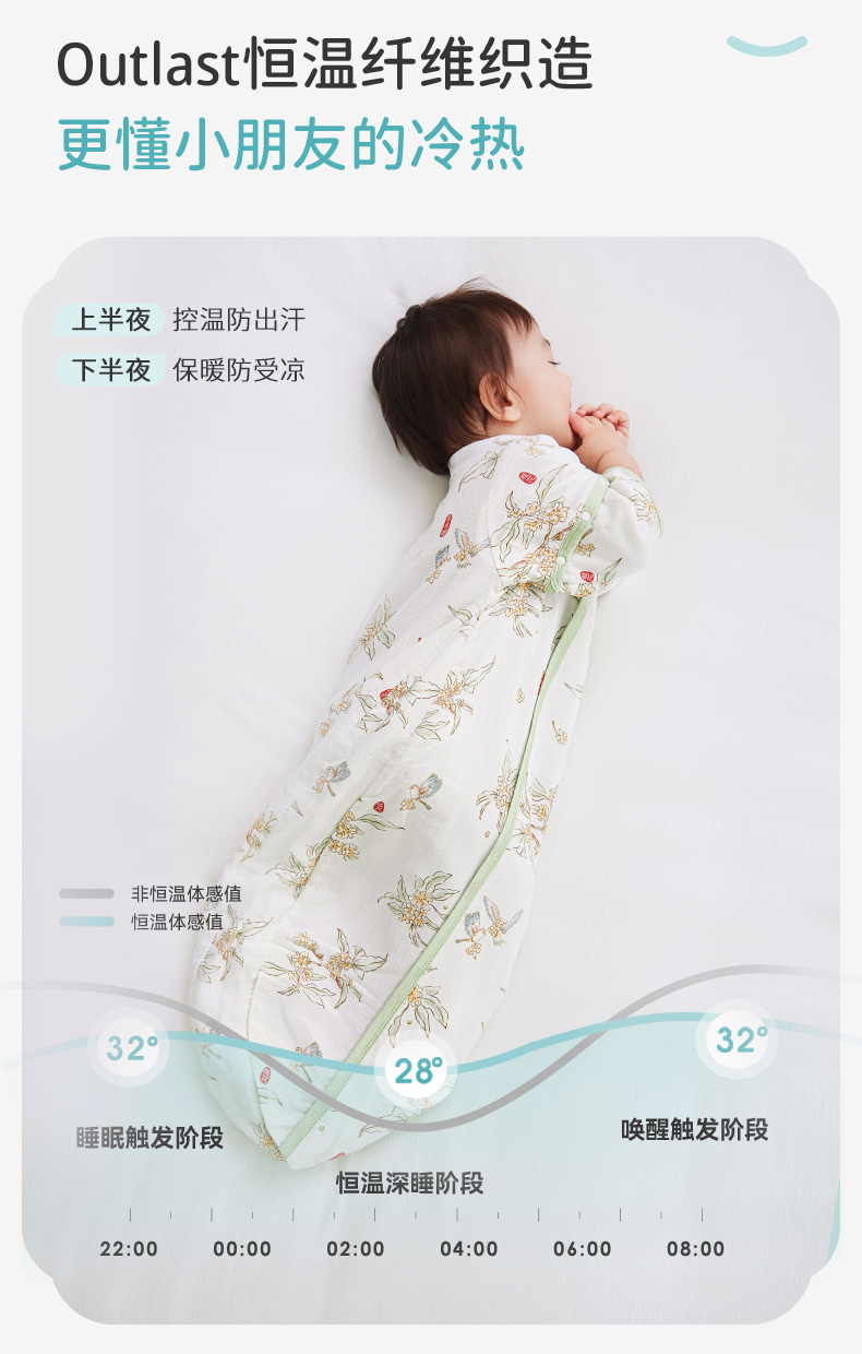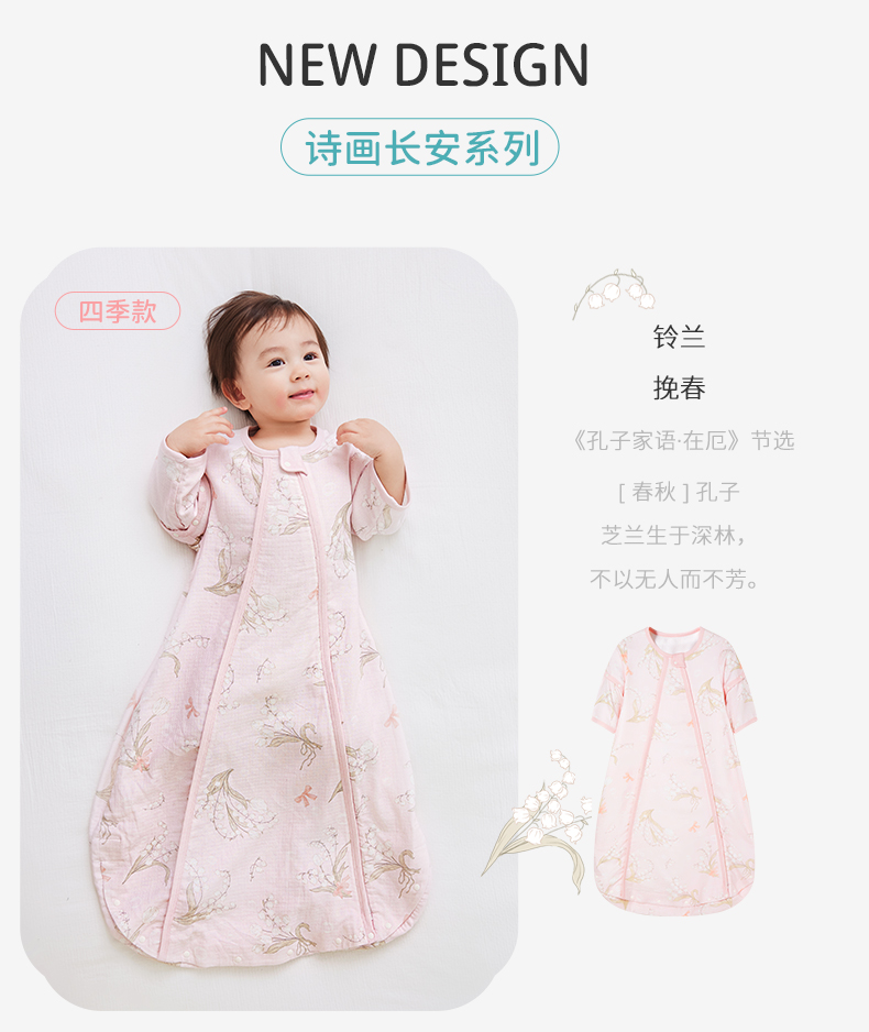 i-baby/英伦宝贝6-12月婴儿髋腿发育恒温深睡四层纱布U型睡袋防踢被 春秋四季通用防惊跳U型睡袋
