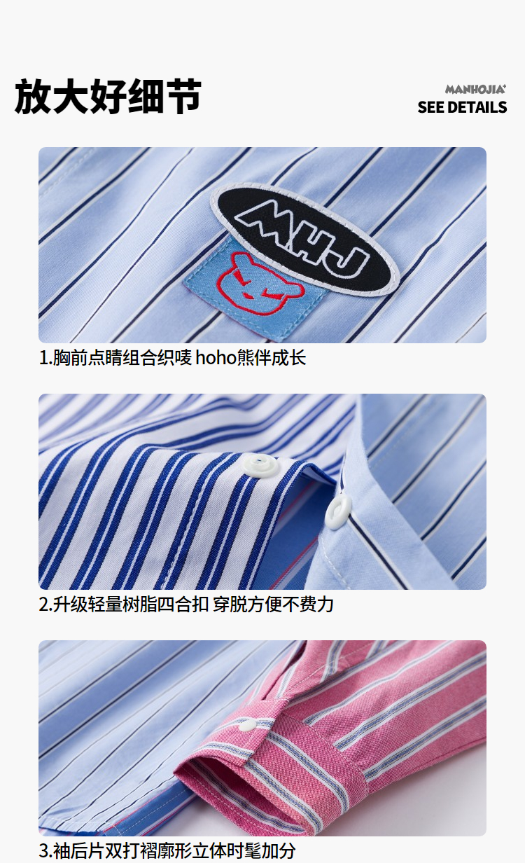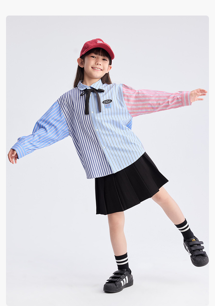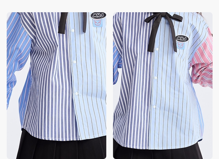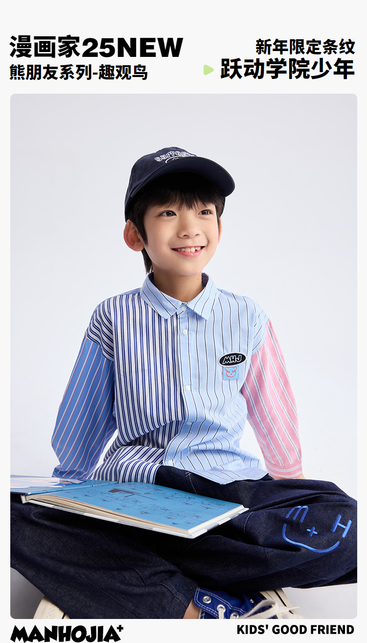 【熊盆友】漫画家25春新年限定红蓝条纹撞条纹学院拼接衬衫