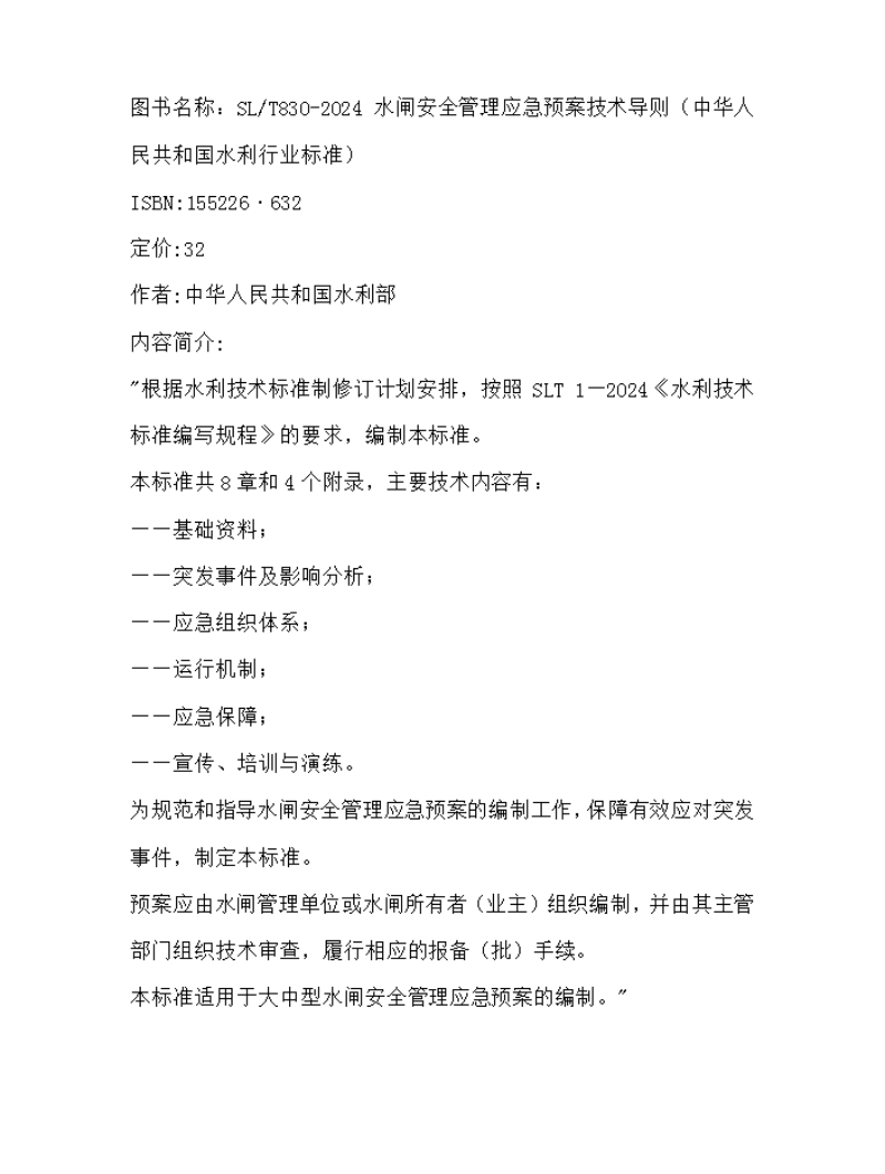 SL/T830-2024水闸安全管理应急预案技术导则(中华人民共和国水利行业标准)