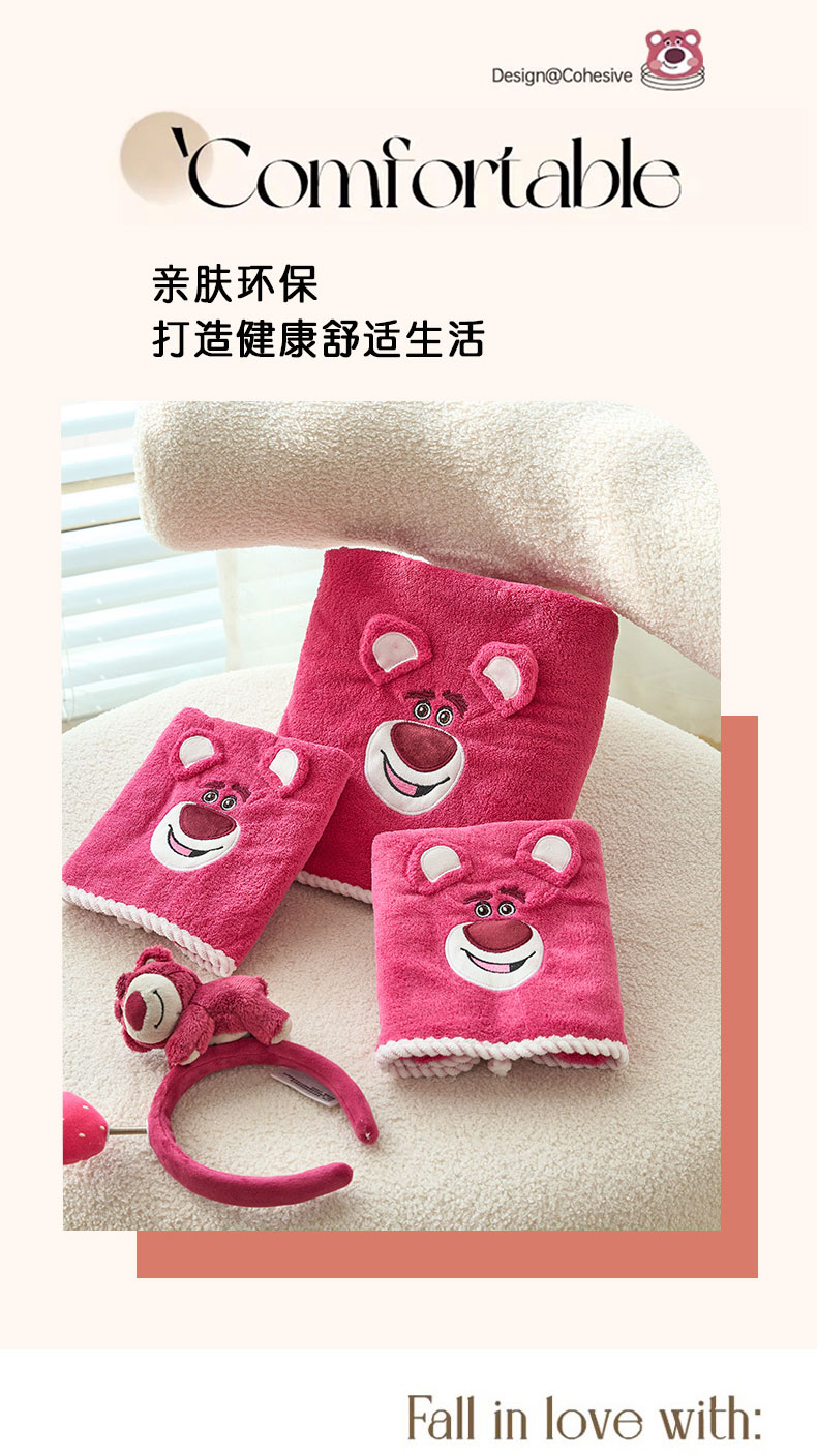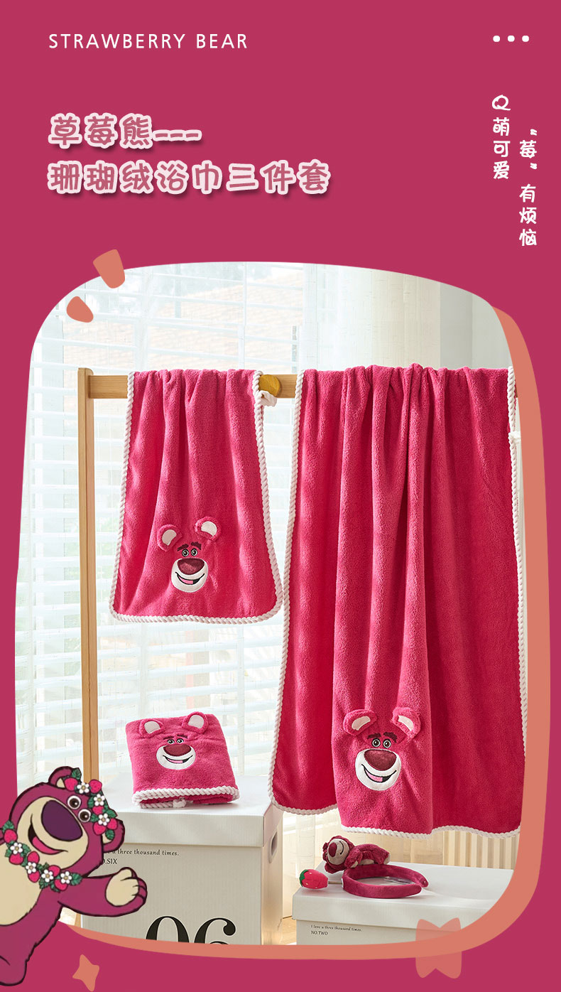 迪士尼草莓熊毛巾浴巾三件套