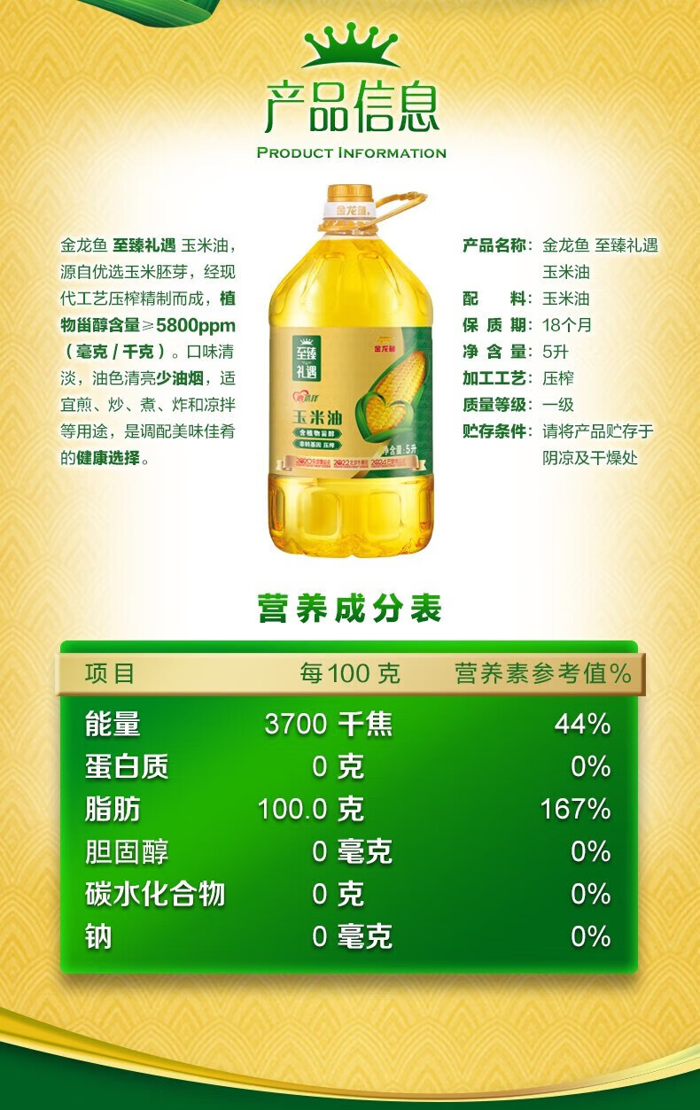 金龙鱼食用油非转基因玉米油 至臻礼遇玉米油5L