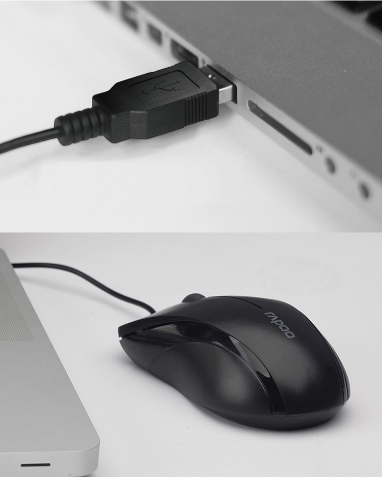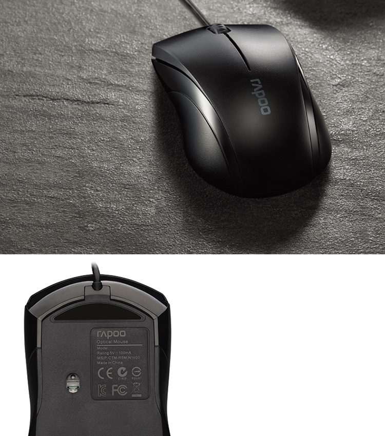 雷柏(Rapoo) N1200 有线鼠标 办公鼠标 静音鼠标 对称鼠标 笔记本鼠标 电脑鼠标 黑色