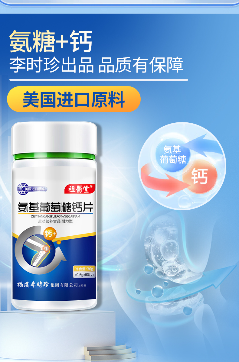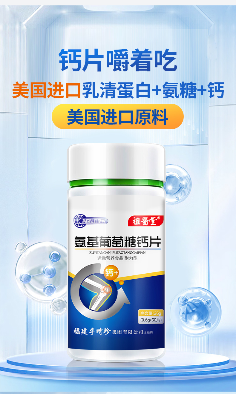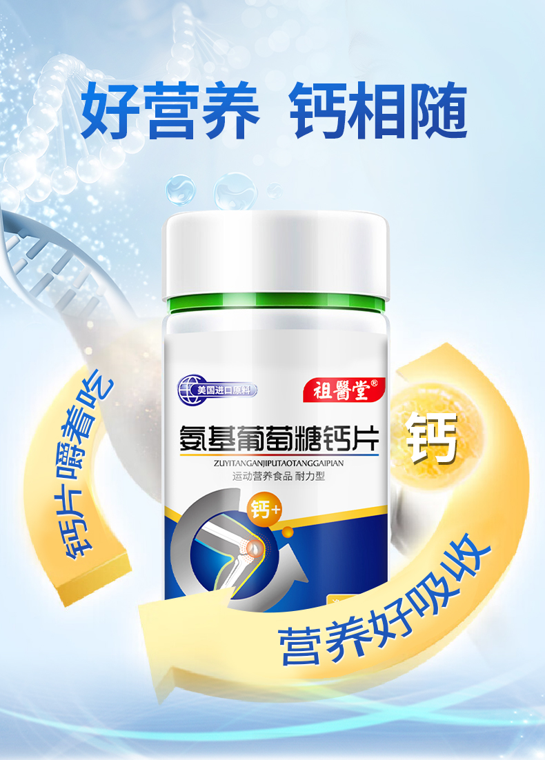 祖医堂氨基葡萄糖钙片 钙片嚼着吃 营养好吸收