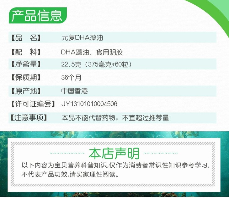 元复藻油DHA软胶囊儿童型