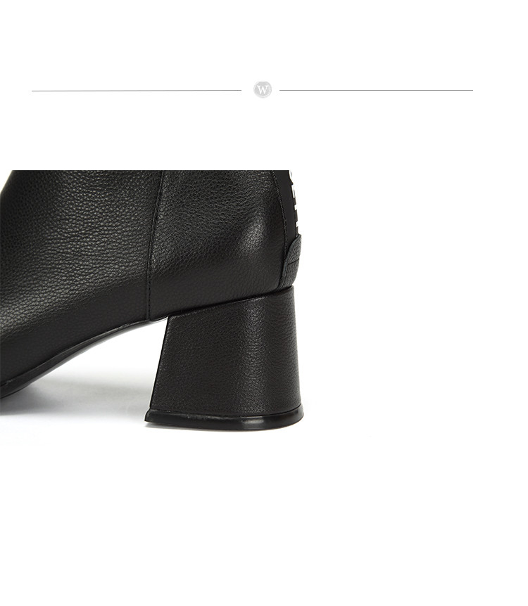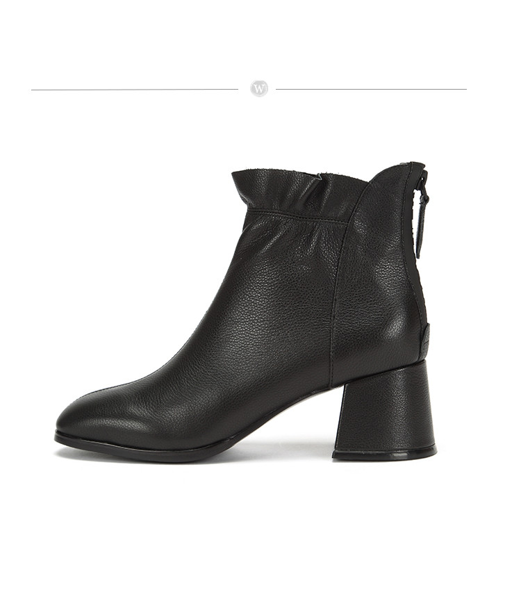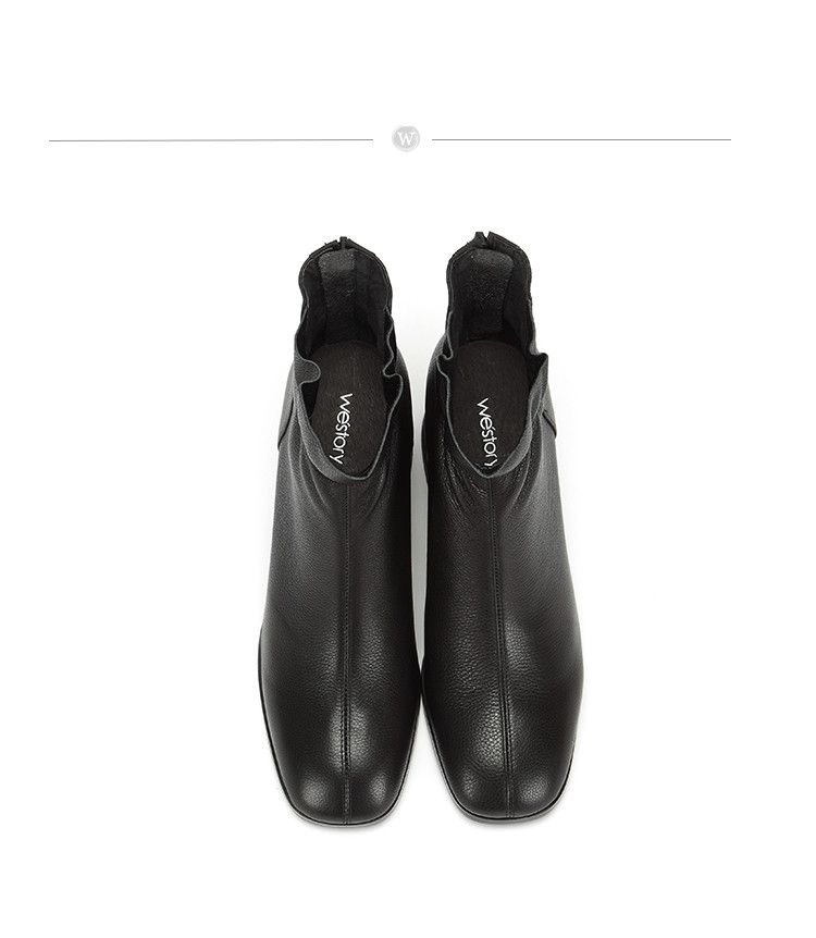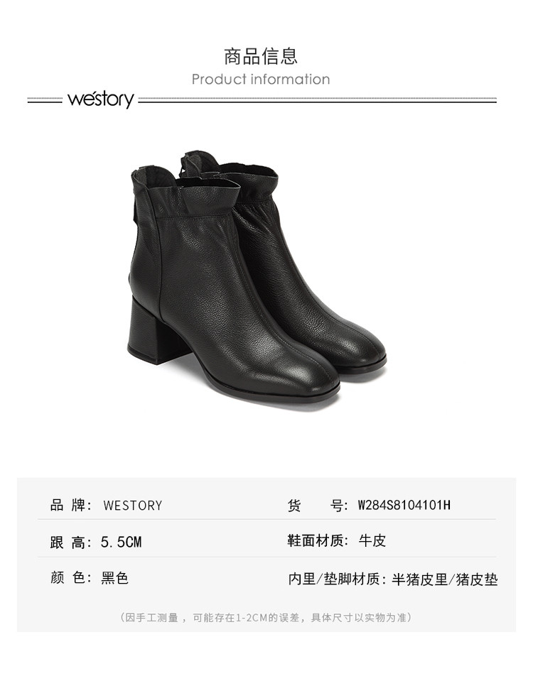 westory商场专柜同款牛皮方头荷叶边极简百搭职场社交短靴W284S81041
