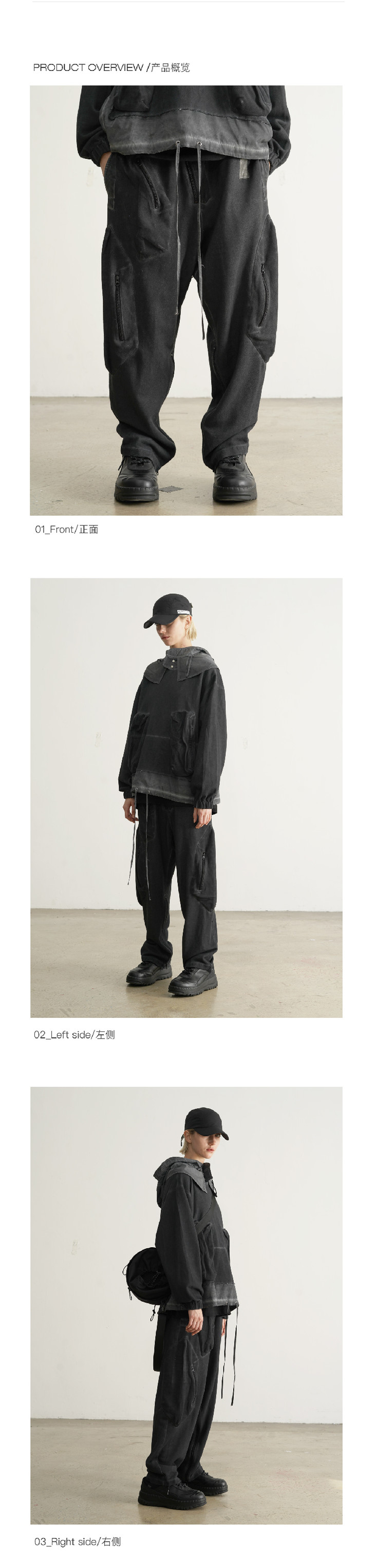 ATTEMPT 19AW-PNT12 脏染立体口袋PMU裤腿拉链针织长裤