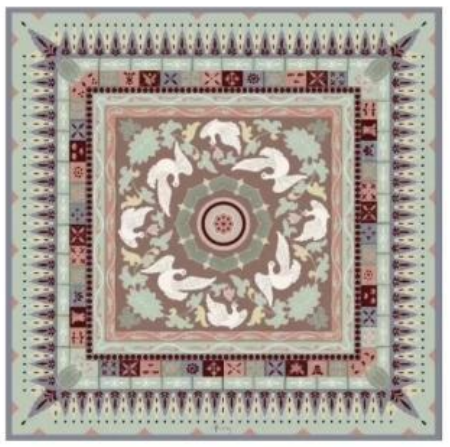 【和平鸽】关于和平鸽的灵感来源,常沙娜老师这样回忆:“我设计的真丝头巾采用敦煌隋代石窟藻井的形式,上面穿插和平鸽图案,就是在林先生指导下搞出来的。记得当时她讲:‘你看看毕加索的和平鸽,可以把鸽子的形式用在藻井上。她一说,我就有了灵气,马上就设计出来了’既是敦煌风格,又是现代的,我们的设计做出来林先生都挺满意。”