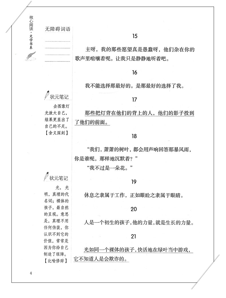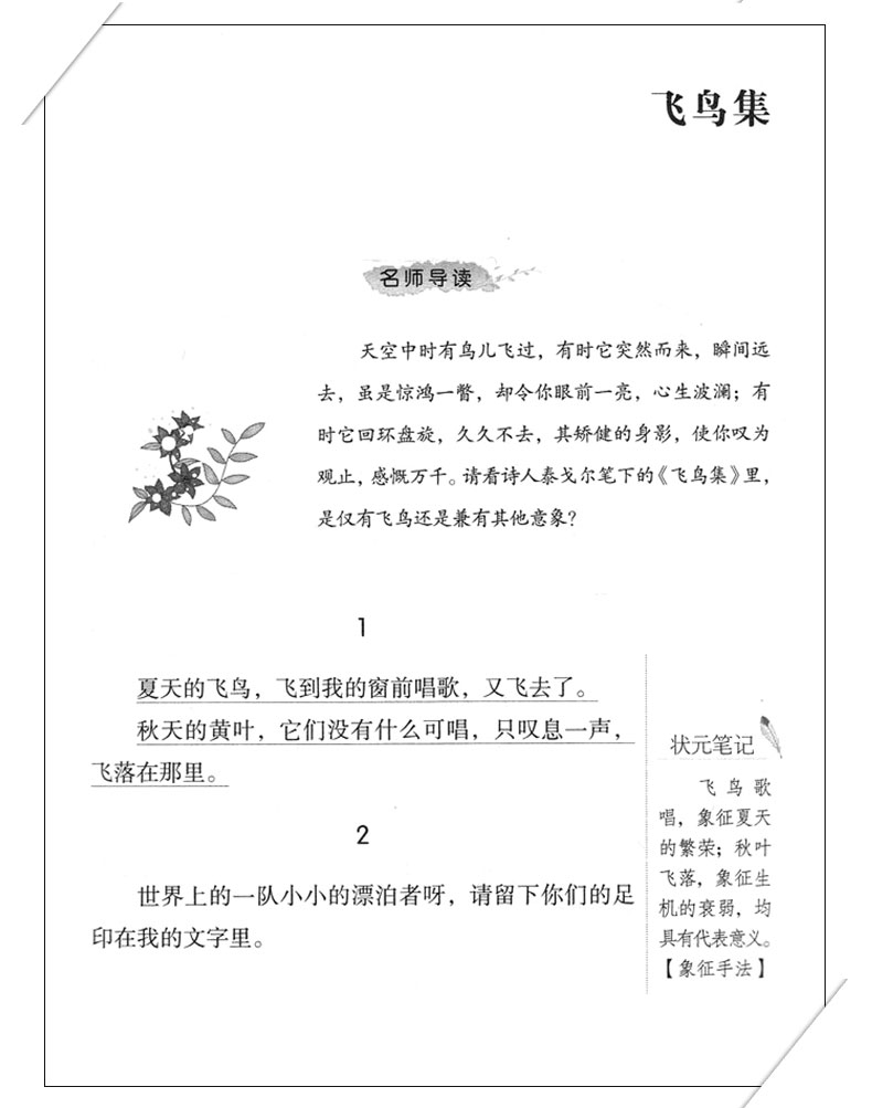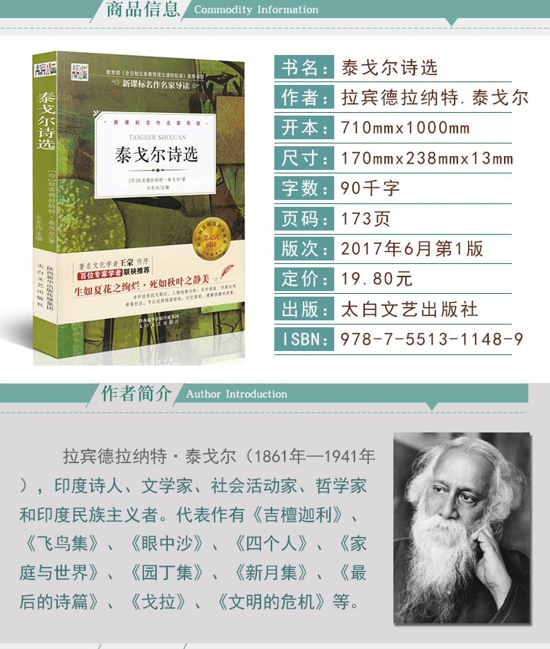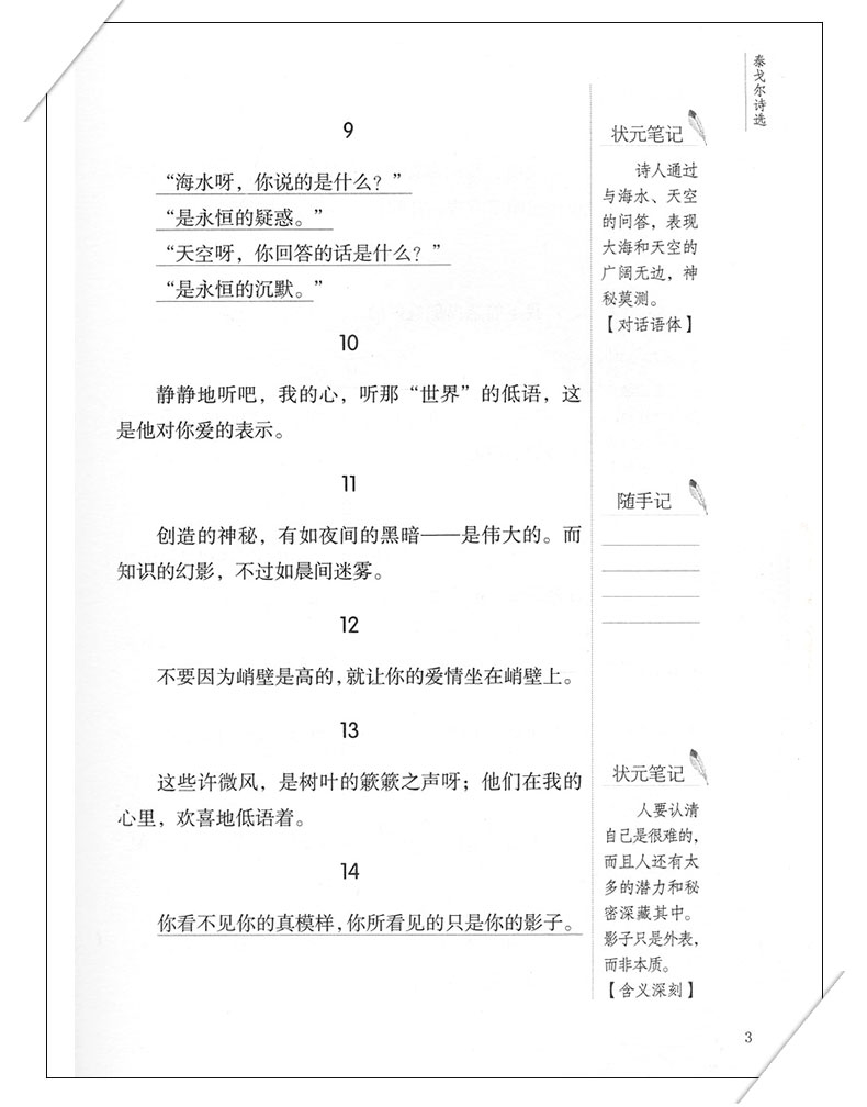泰戈尔诗选 核心阅读 新课名作名家导读 笔记式阅读文学经典 初三九年级上册上学期 语文配套
