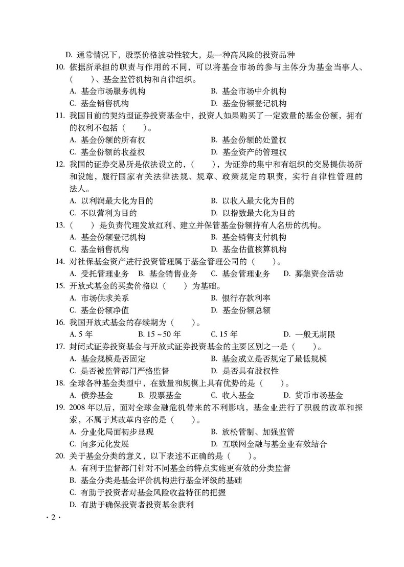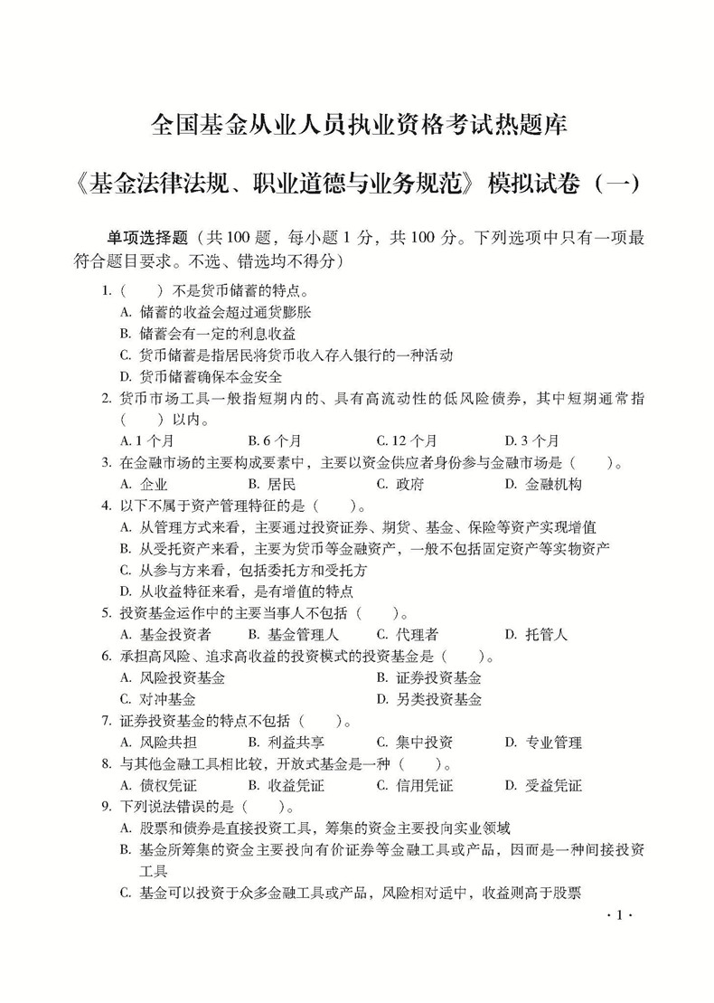 全国基金从业人员执业资格认证考试热题库——基金法律法规、职业道德与业务规范
