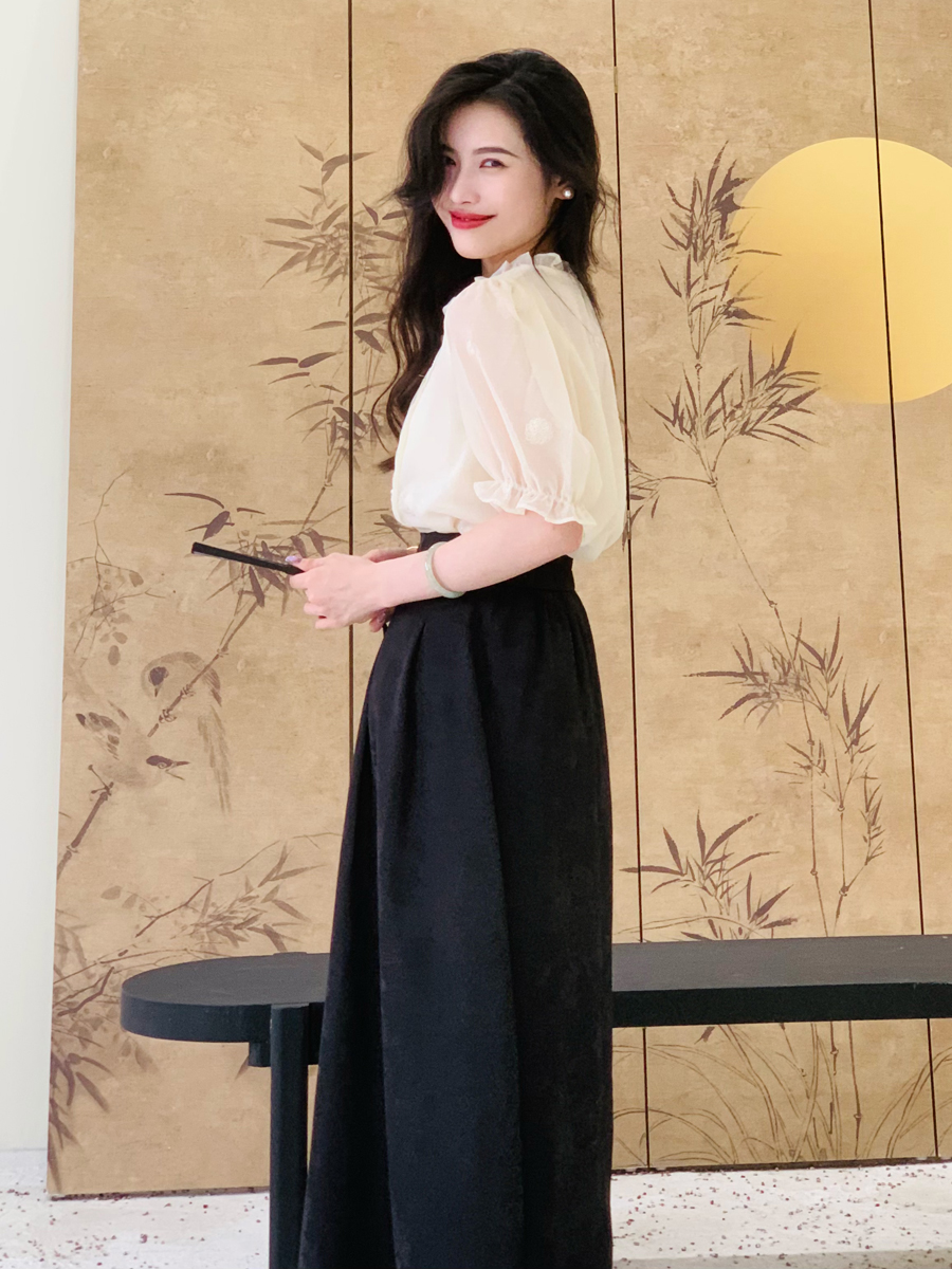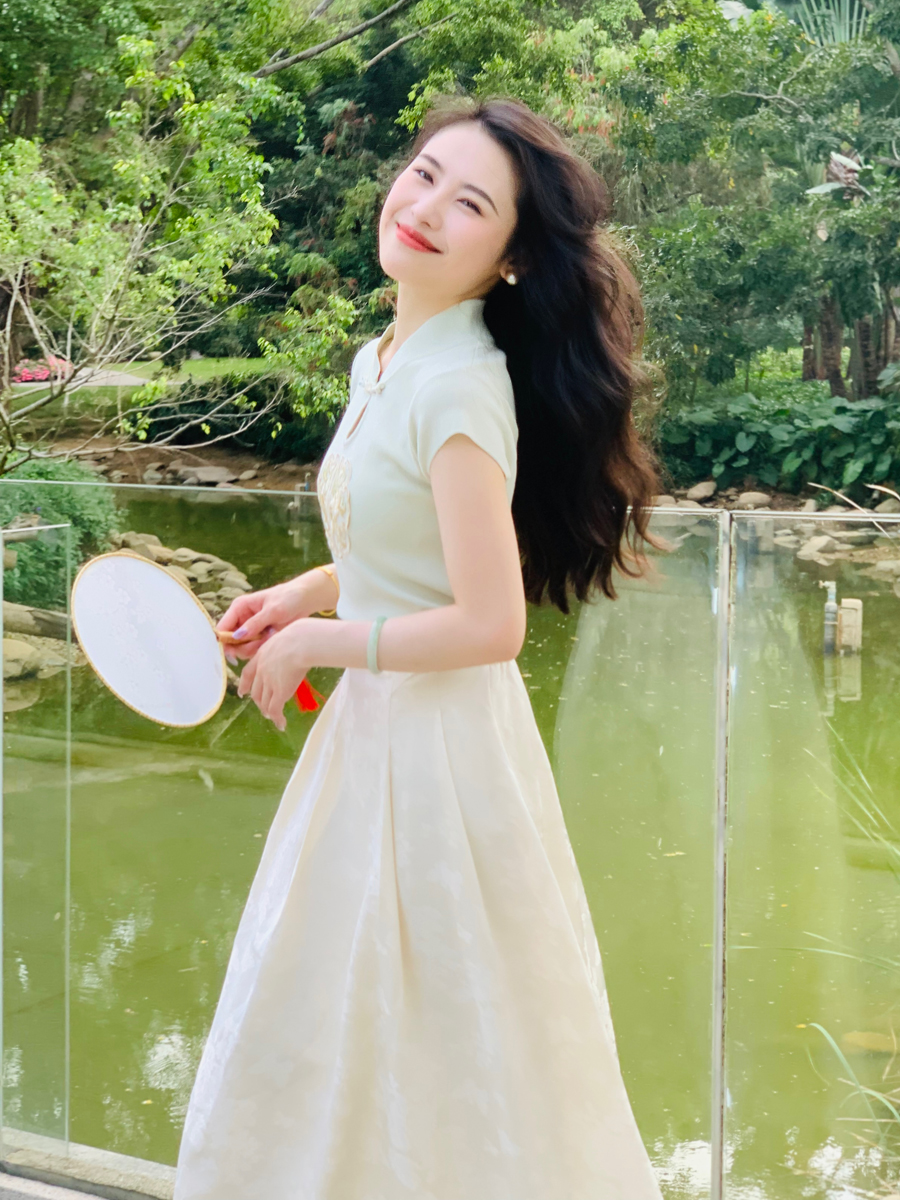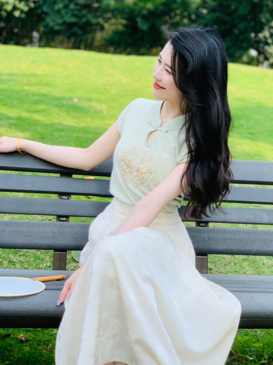 模特身穿常规款裙长83cm,适合身高160-168cm
