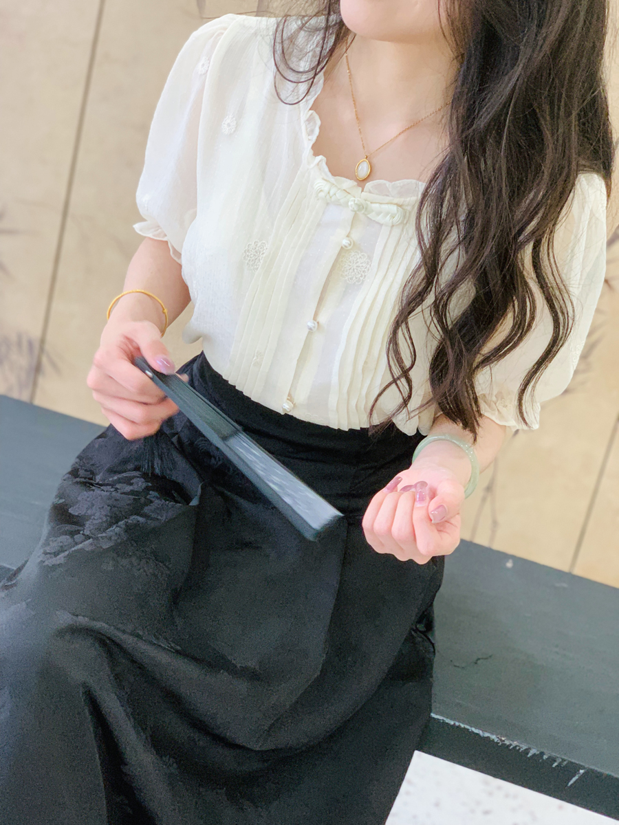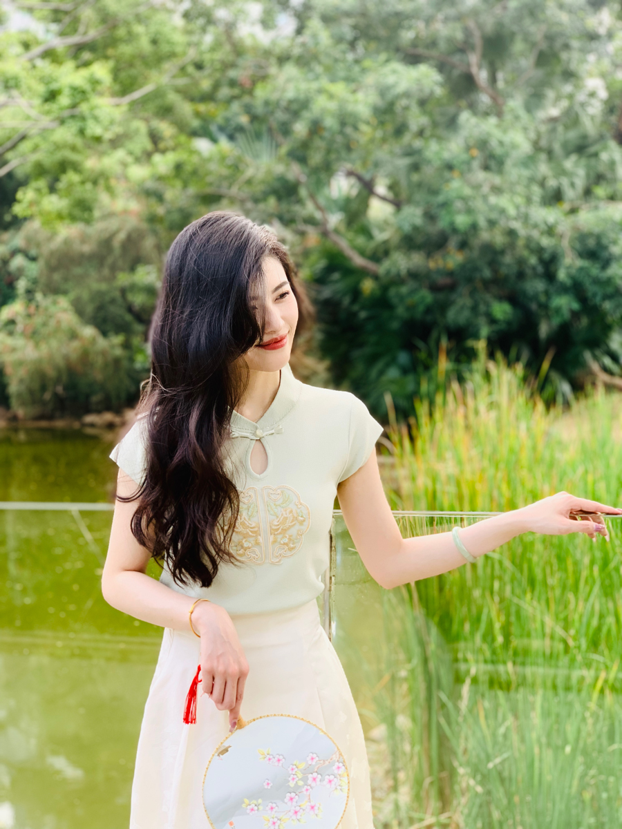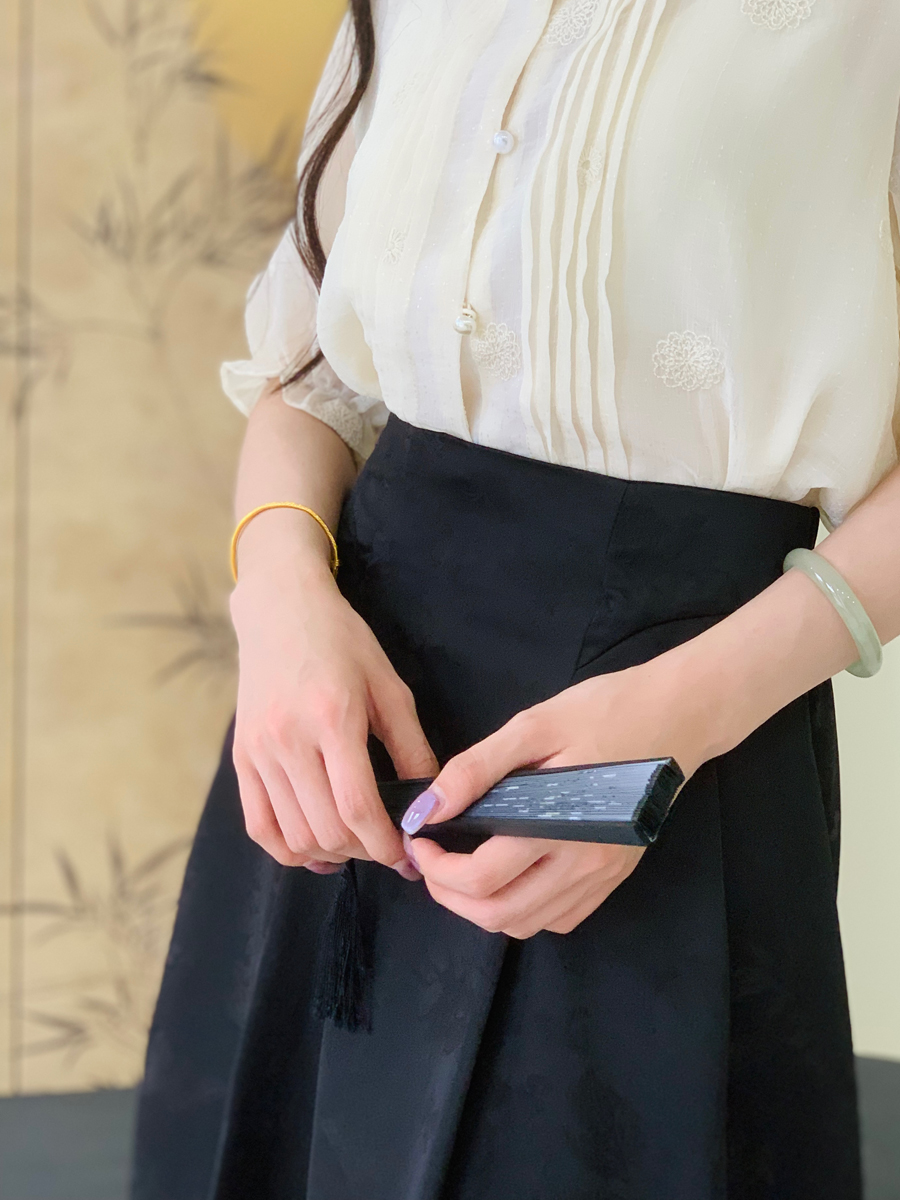 模特身穿常规款裙长83cm,适合身高160-168cm