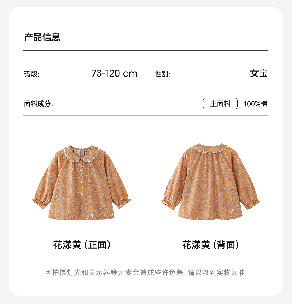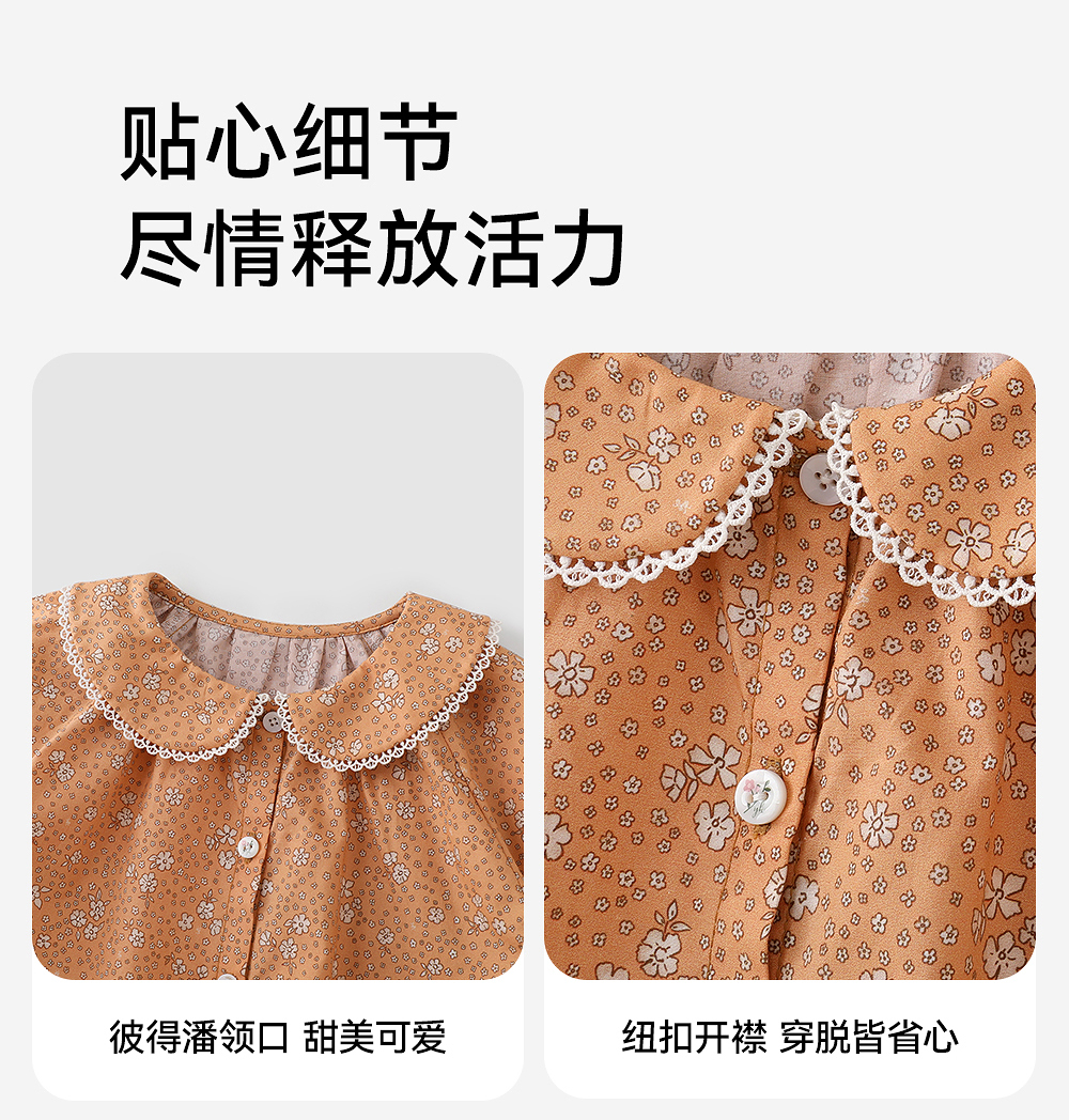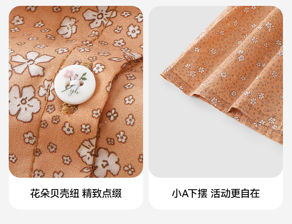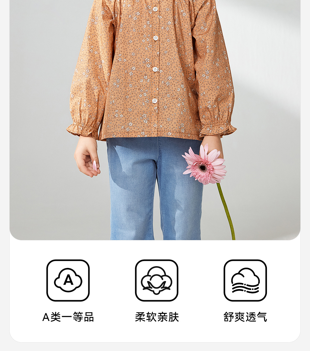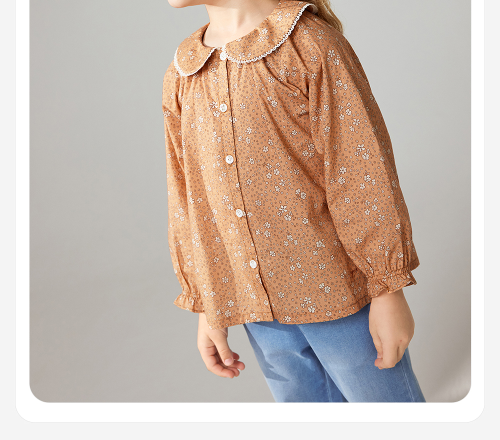 英氏儿童衬衫夏季长袖甜美女童碎花衬衫2025新款上衣YRCAJ1R001A