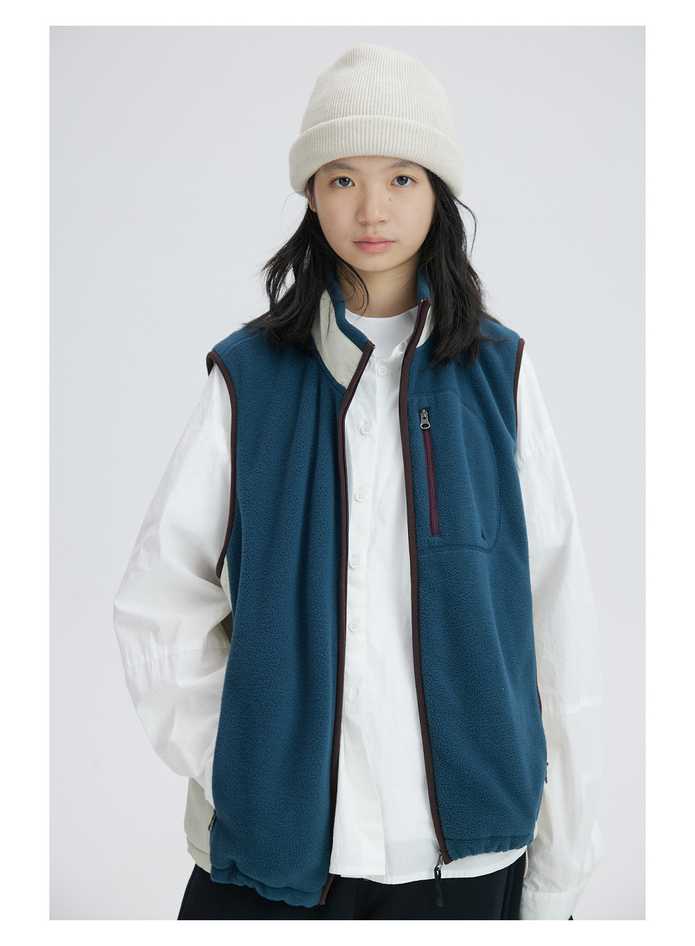 步履不停/3C14020C/拼色摇粒绒立领马甲