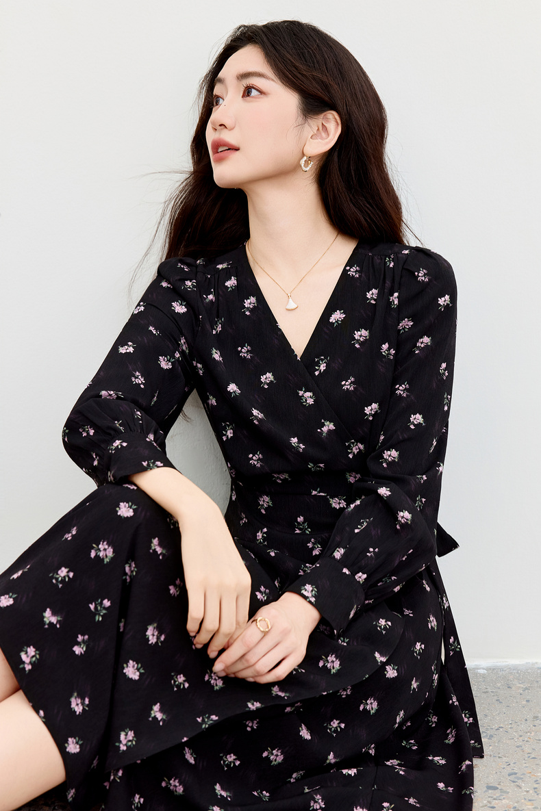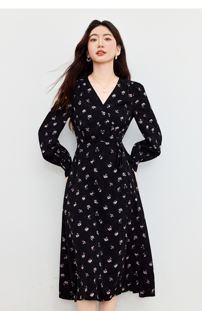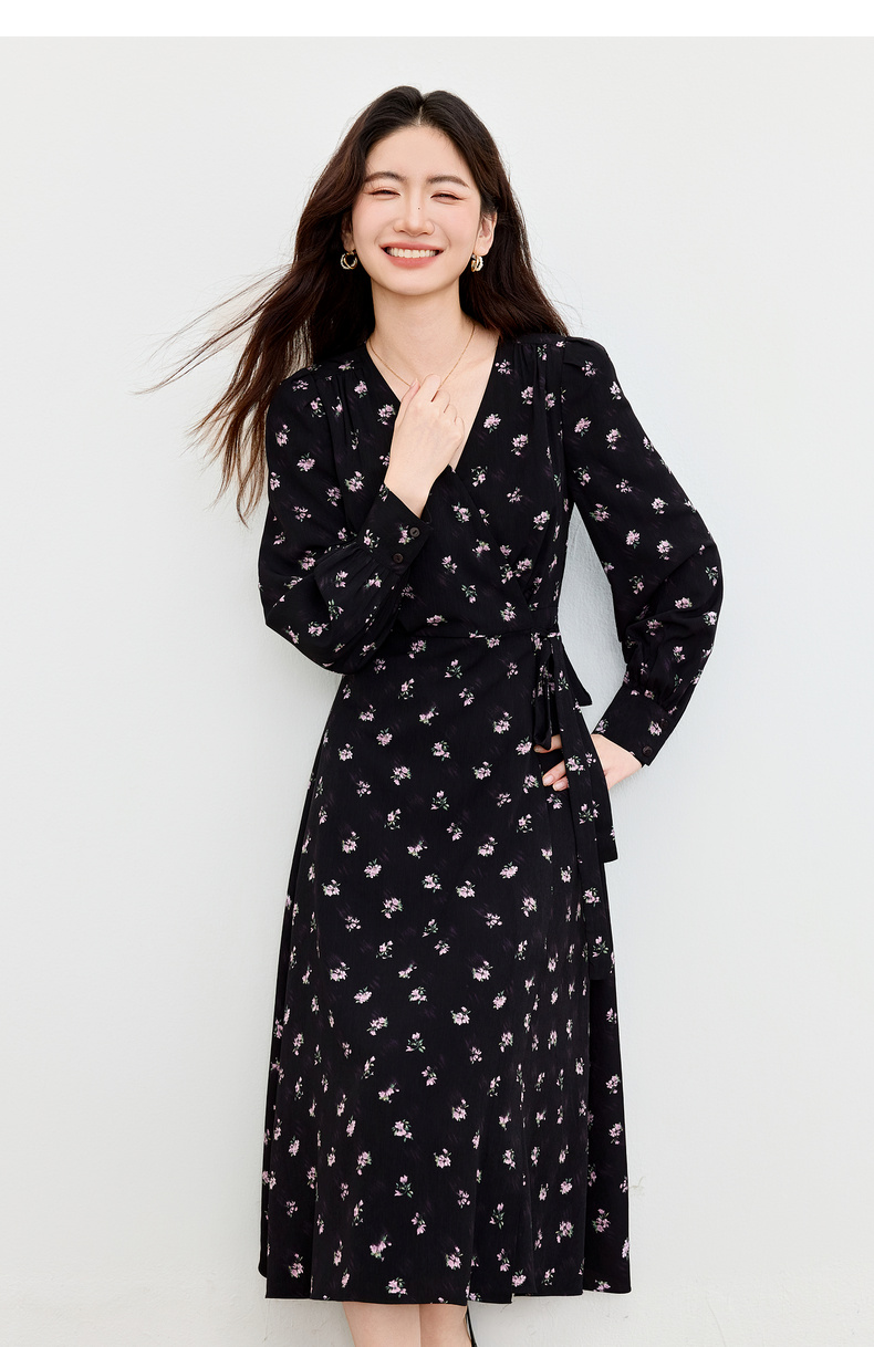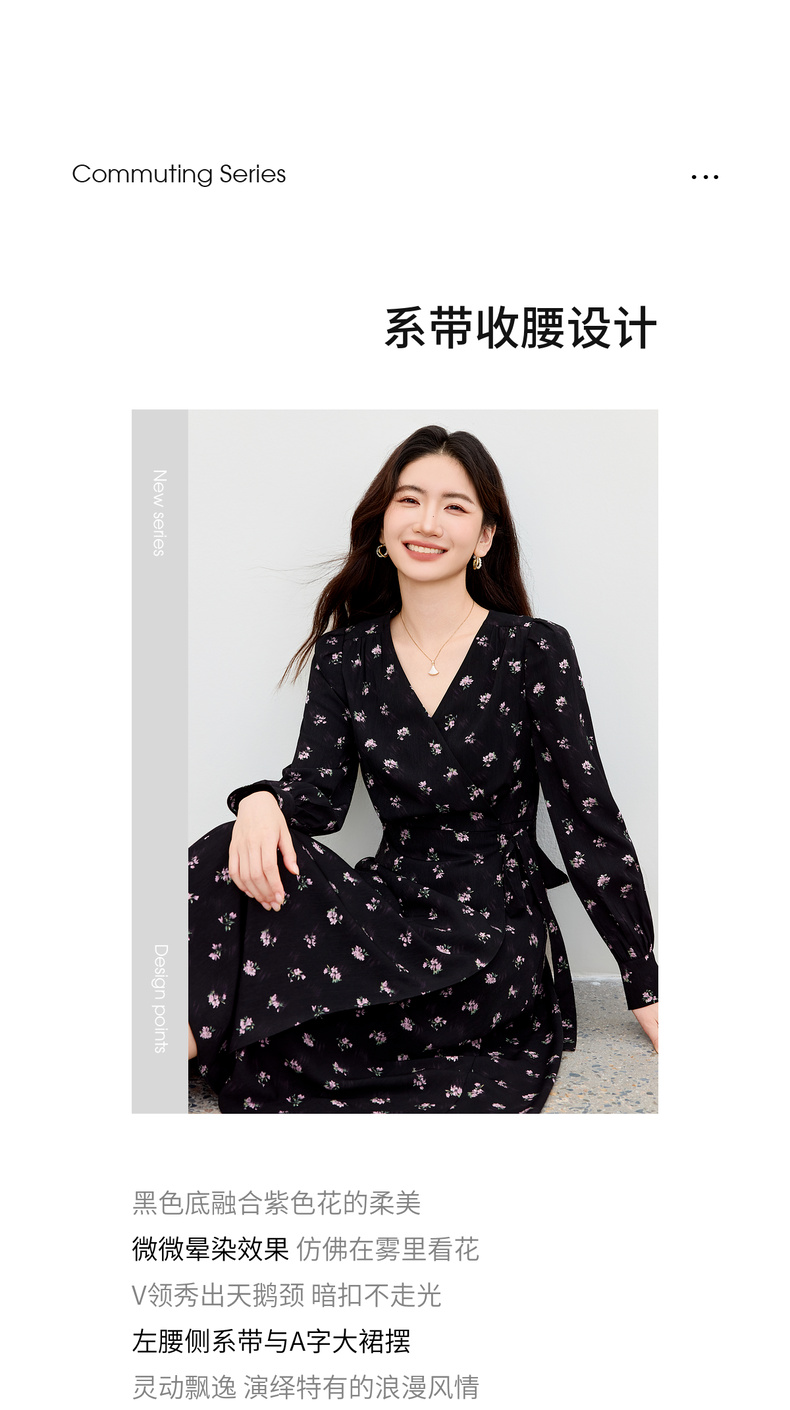 【内购】【收腰显瘦】浪漫度假V领暗扣不走光腰侧系带印花A字茶歇连衣裙-153LO3121