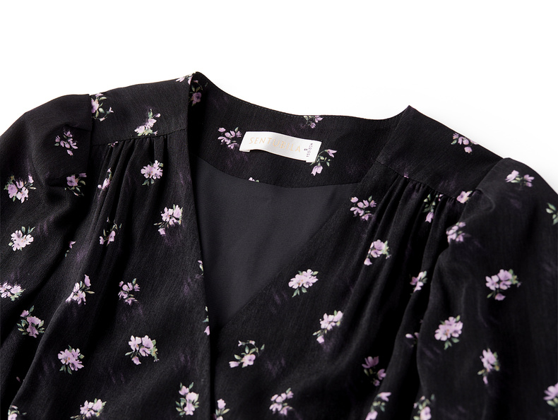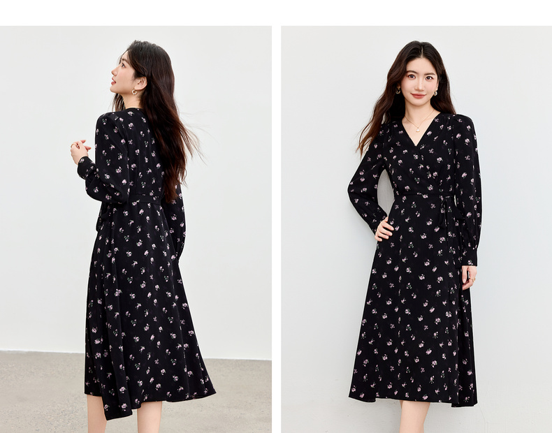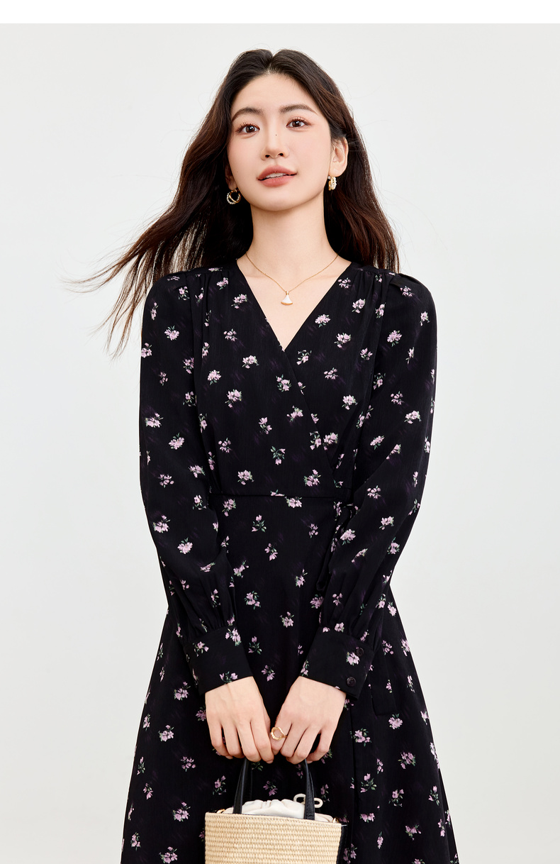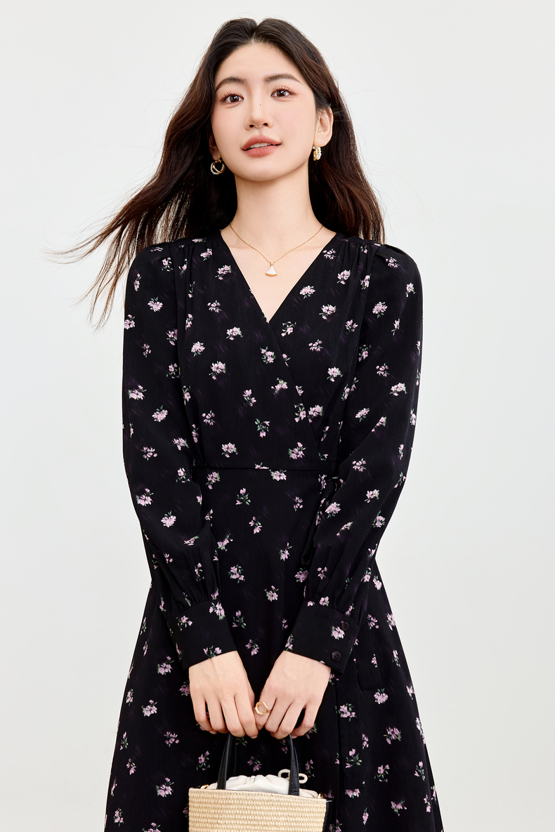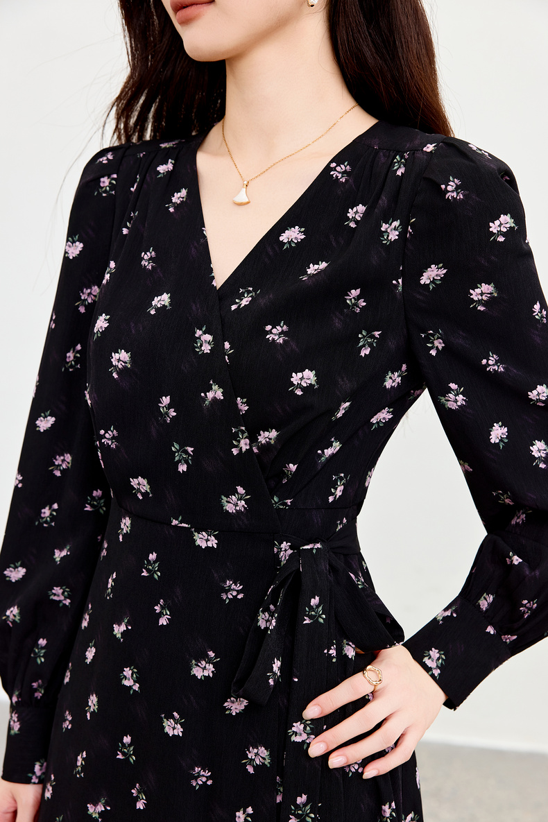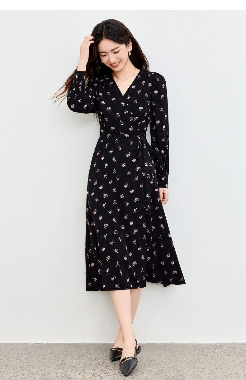 【内购】【收腰显瘦】浪漫度假V领暗扣不走光腰侧系带印花A字茶歇连衣裙-153LO3121