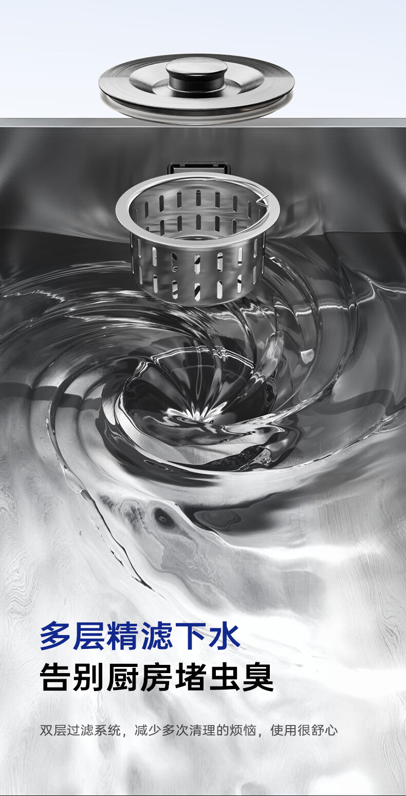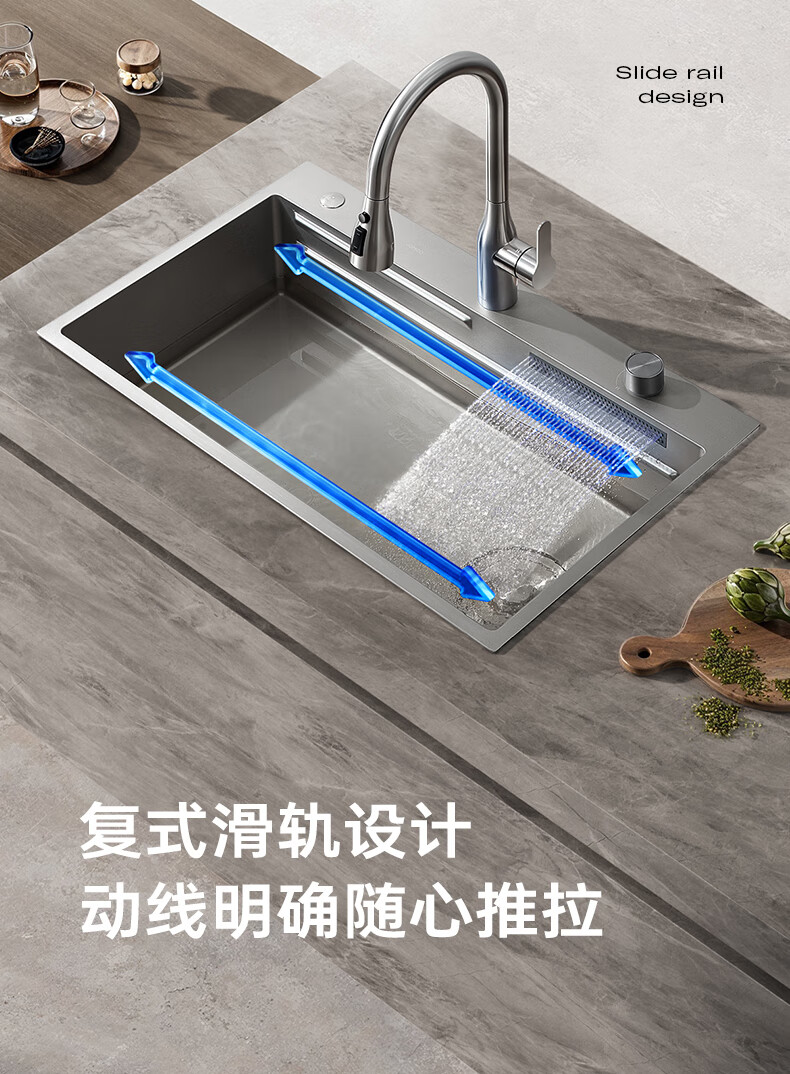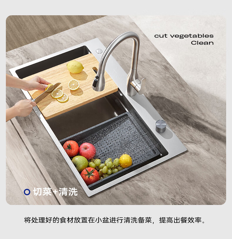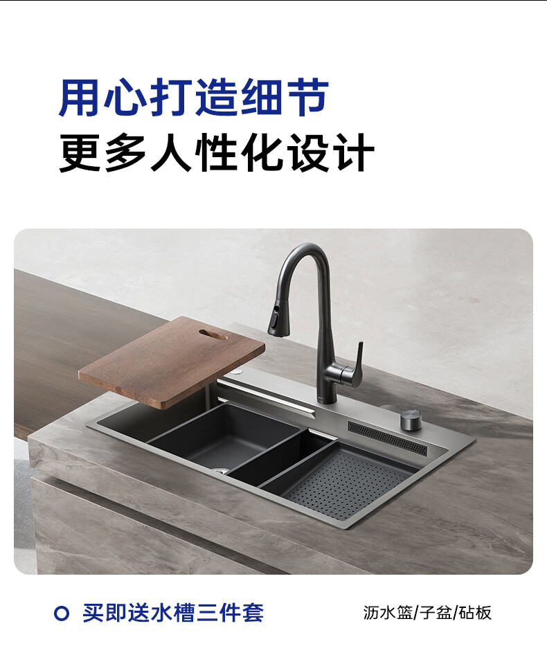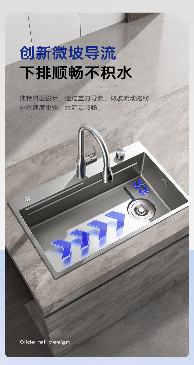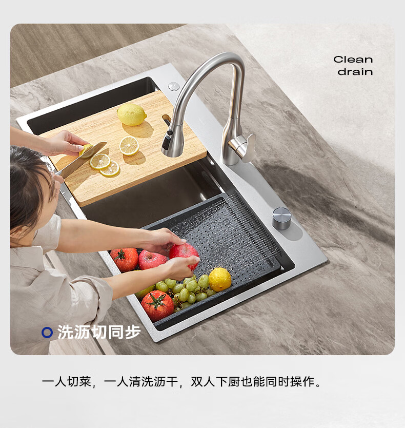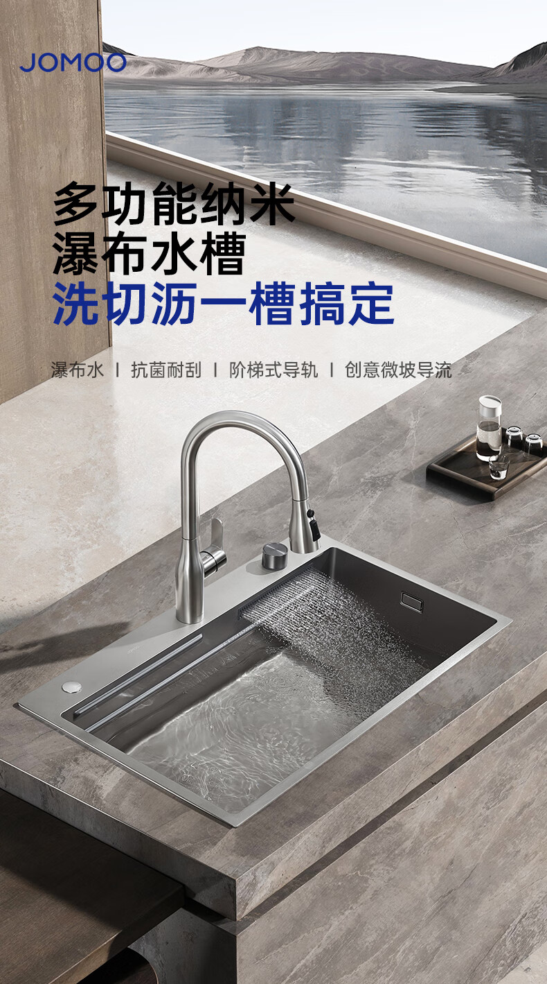 九牧(JOMOO)不锈钢抗菌耐刮飞雨瀑布水槽阶梯式厨房洗菜盆 78*48 06299-CZ-1