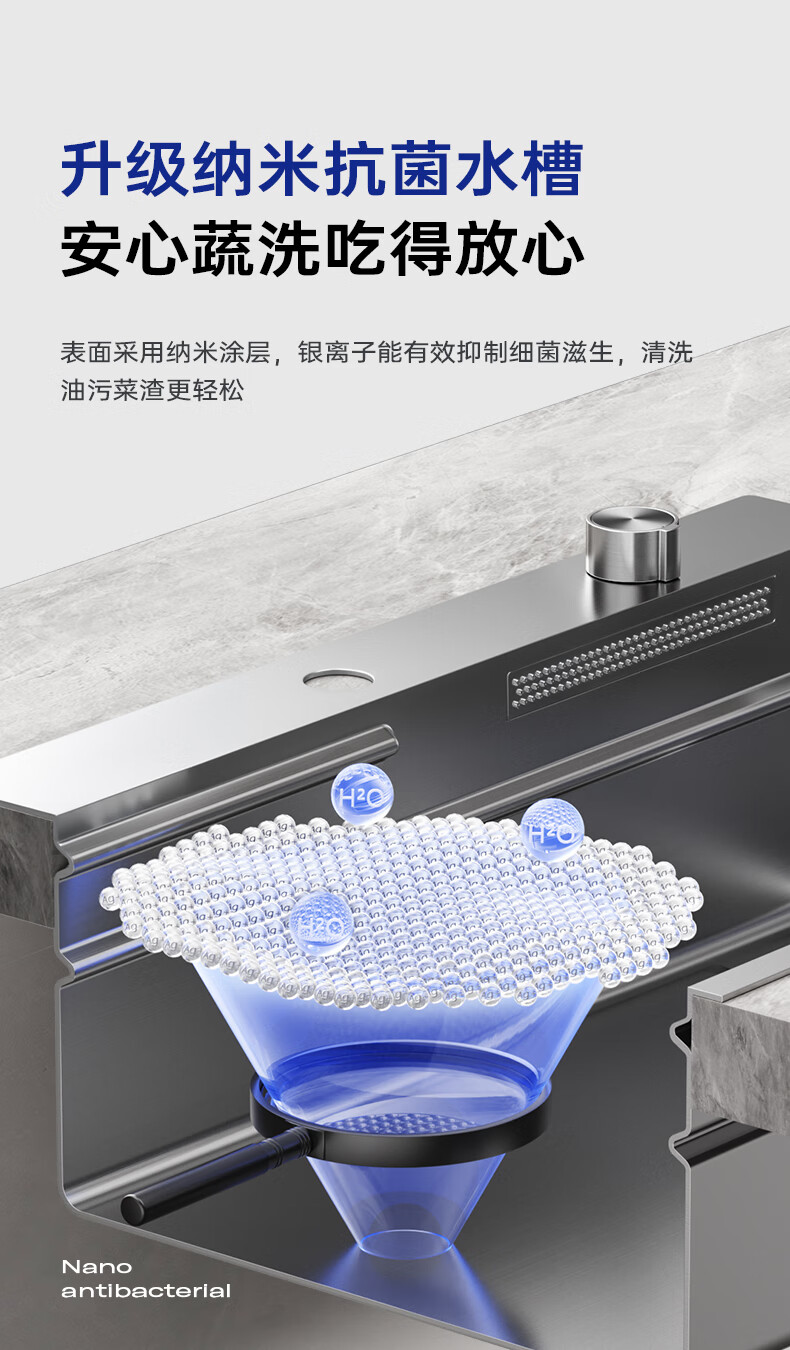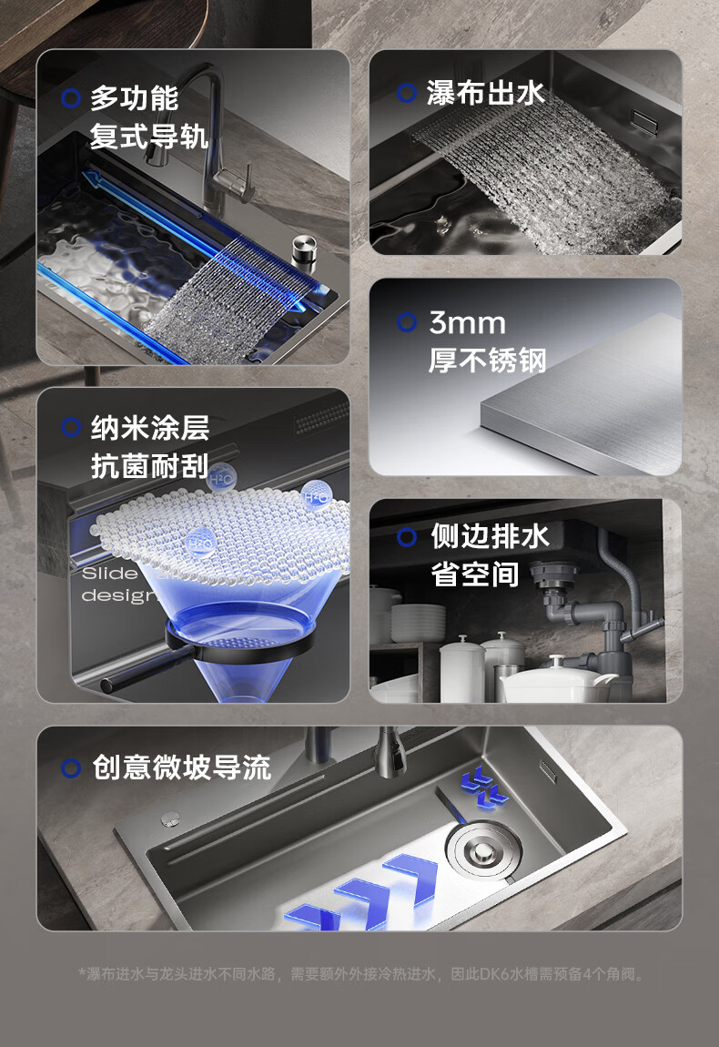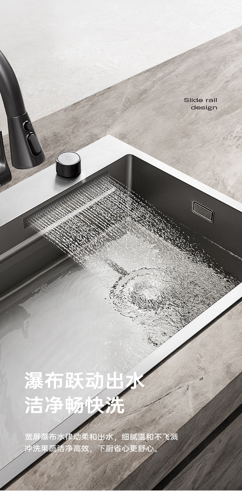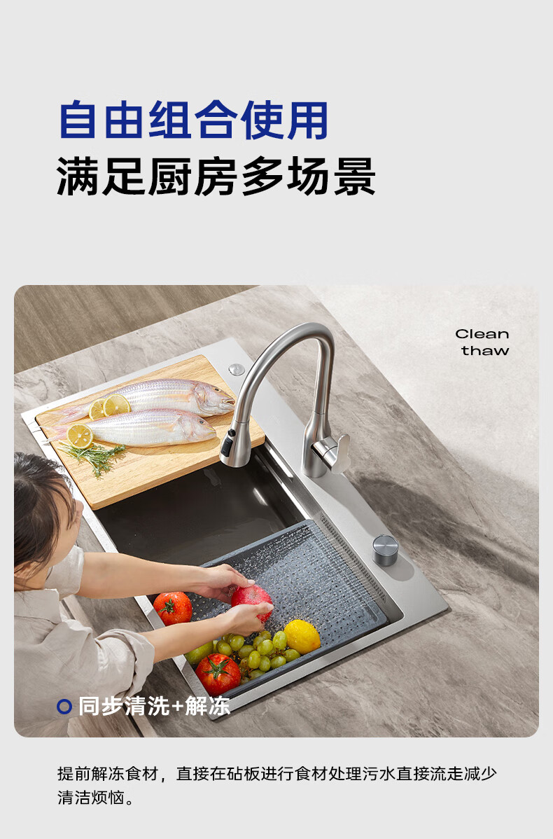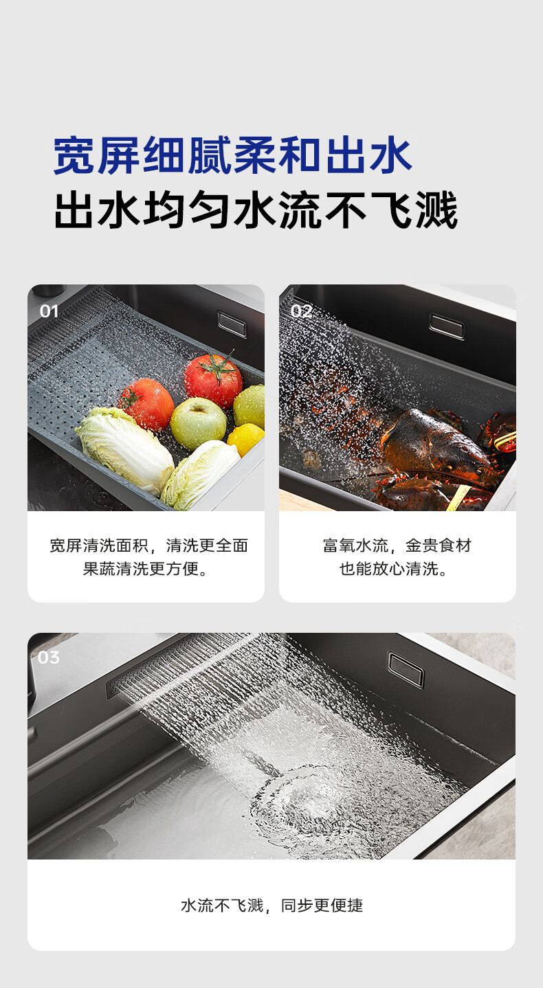 九牧(JOMOO)不锈钢抗菌耐刮飞雨瀑布水槽阶梯式厨房洗菜盆 78*48 06299-CZ-1