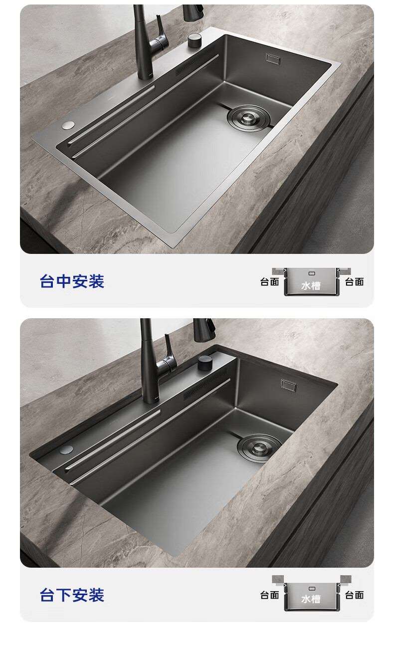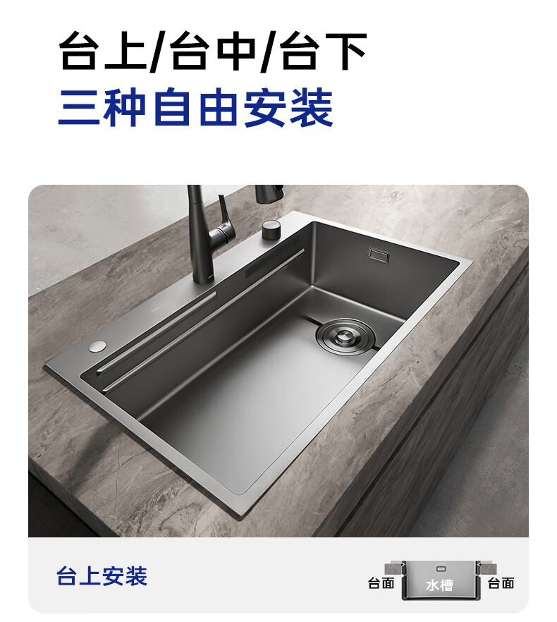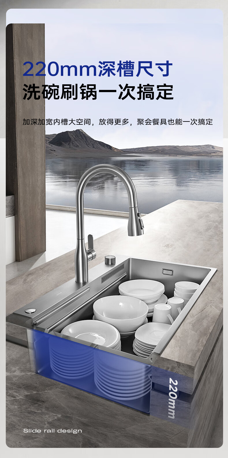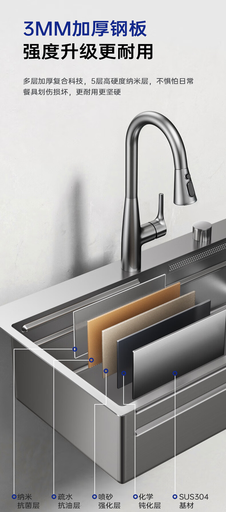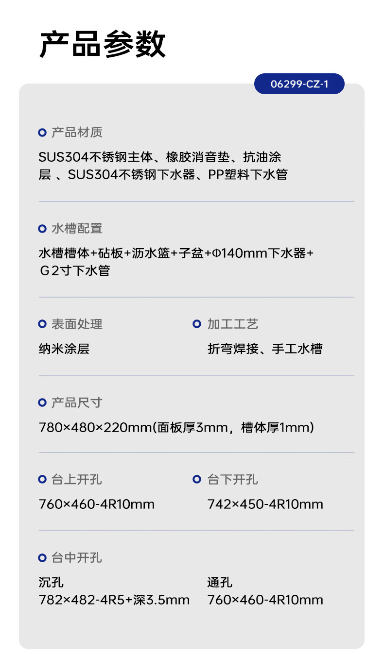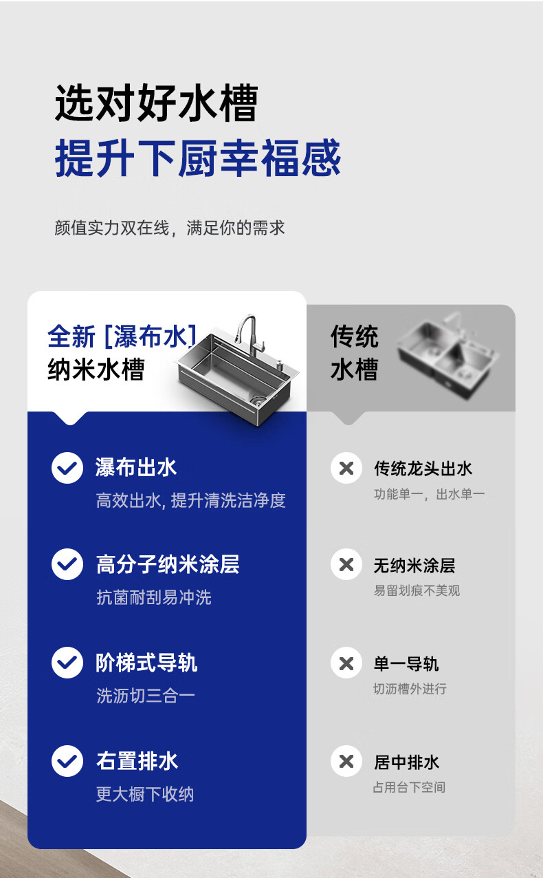 九牧(JOMOO)不锈钢抗菌耐刮飞雨瀑布水槽阶梯式厨房洗菜盆 78*48 06299-CZ-1