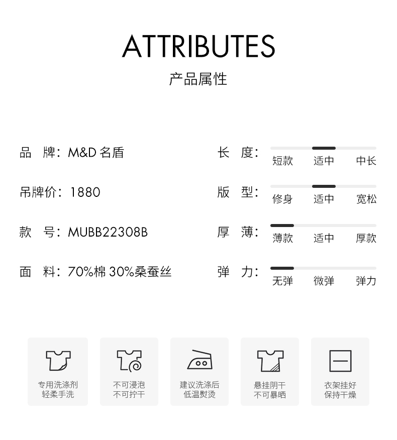 | 销售渠道类型: 商场同款(线上线下都销售) | 材质成分: 棉70% 桑蚕丝30% |