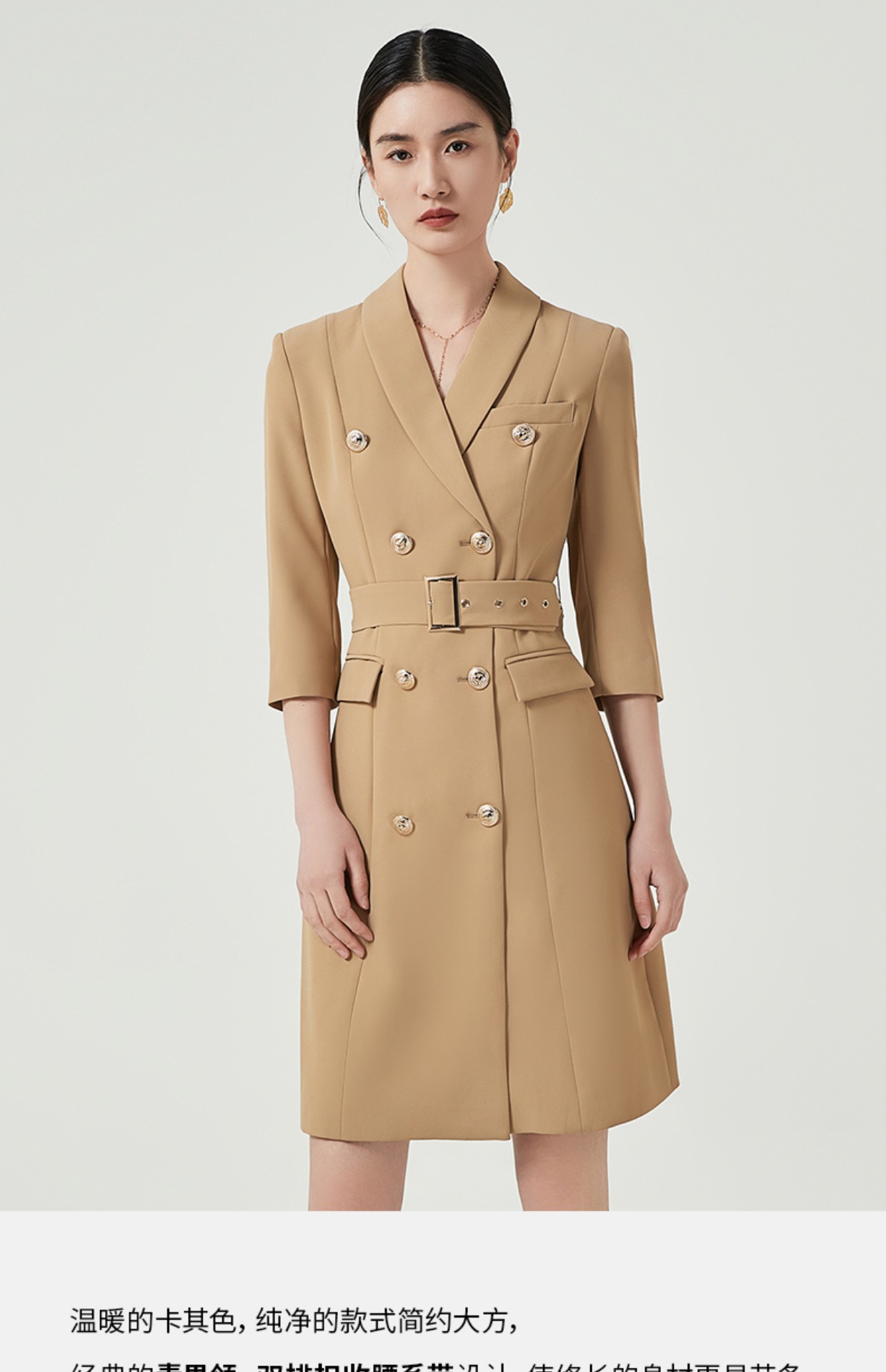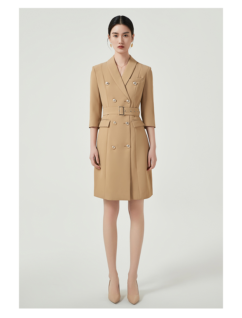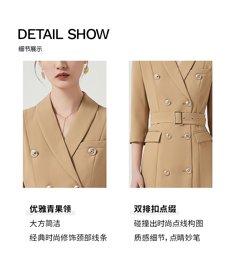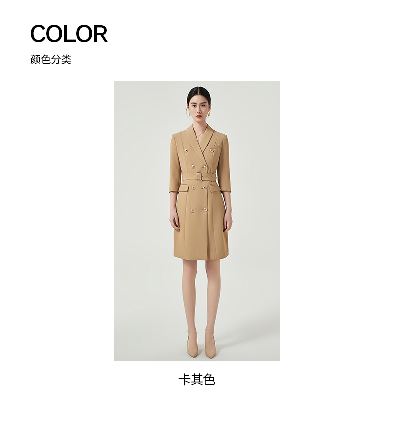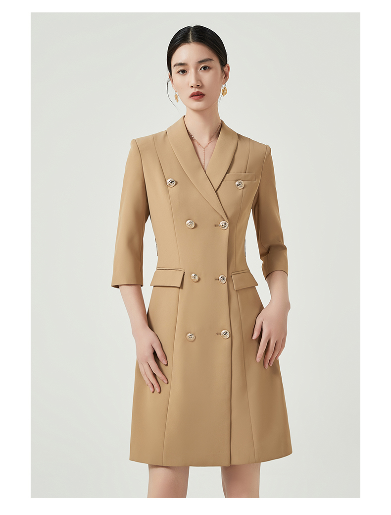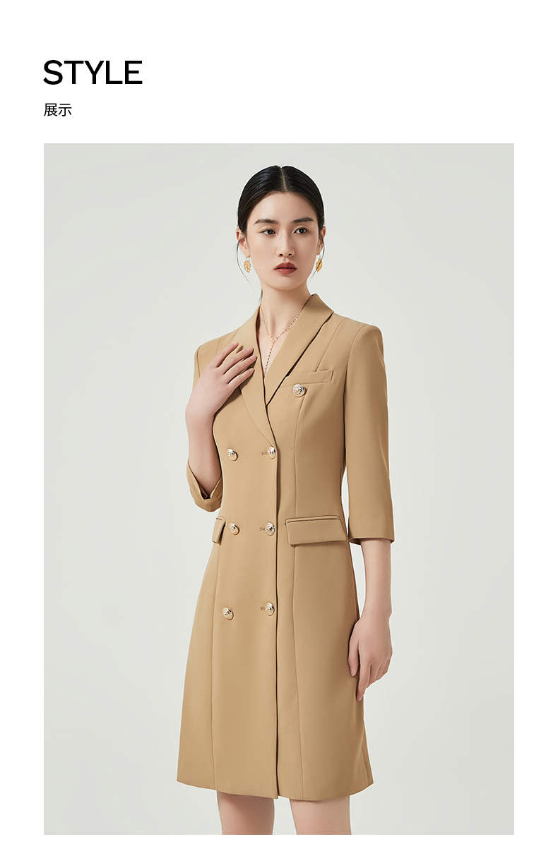 IWY/卡其色高端职业连衣裙女士商务经理正装工作服七分袖西装裙Q470