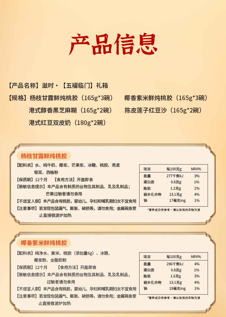 滋时新年礼箱春节礼盒即食桃胶甜品组合(效期至26-9)