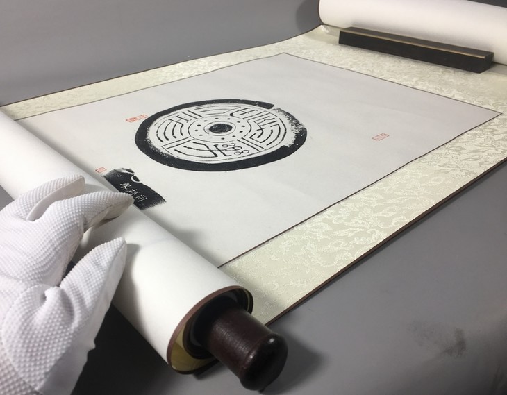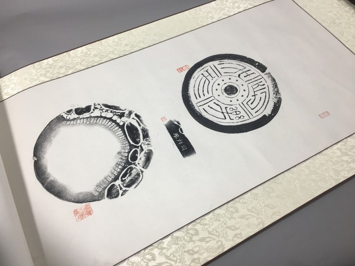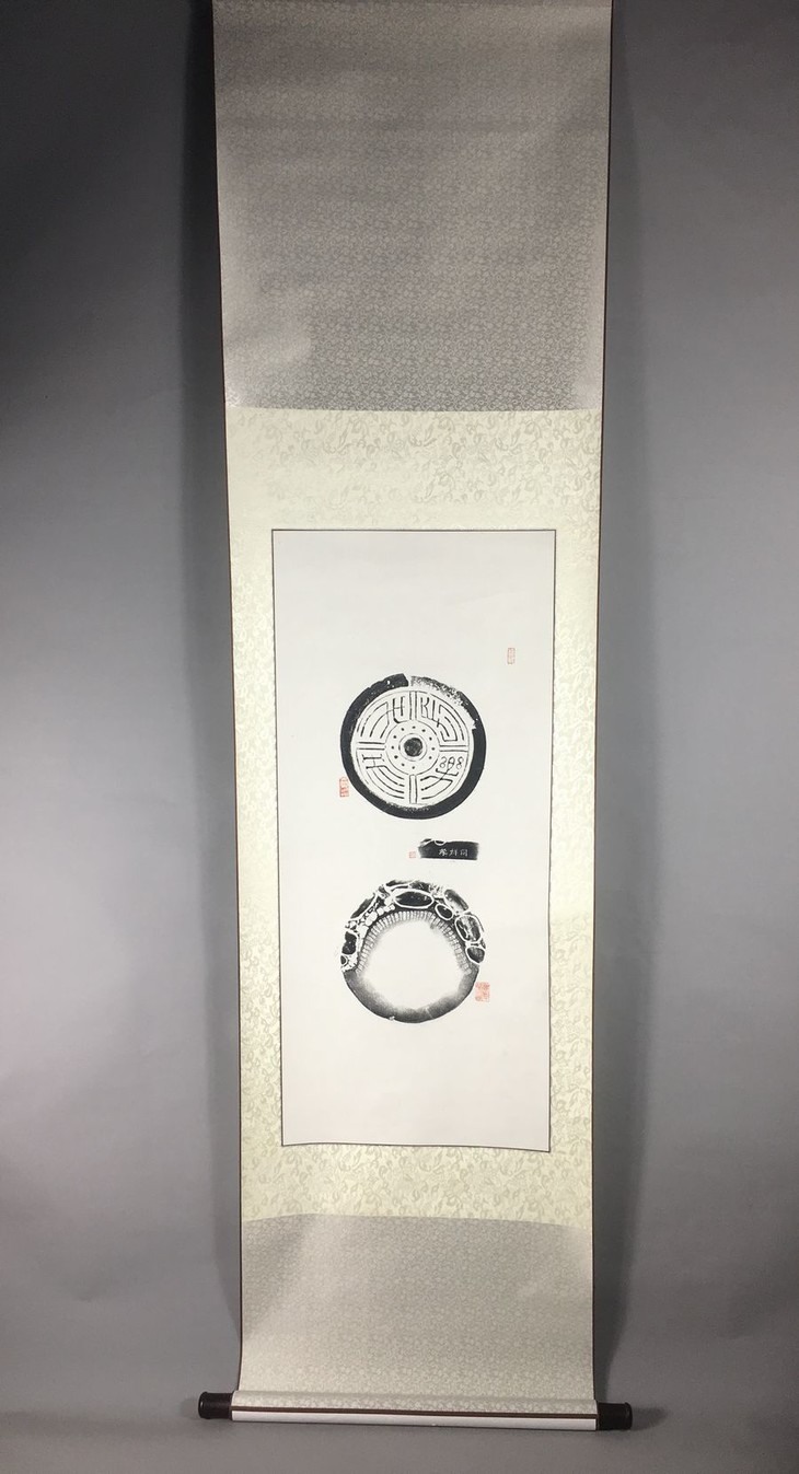 【古泉书馆文创-精品拓片挂轴】【长乐未央汉代瓦当砚拓】孤品 大师手拓 82*36