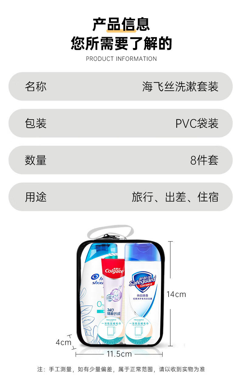 诺兰森迪 海飞丝洗漱套装酒店洗护包洗发露沐浴露出差旅行8件套