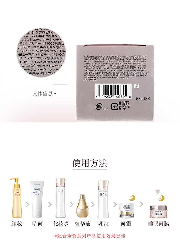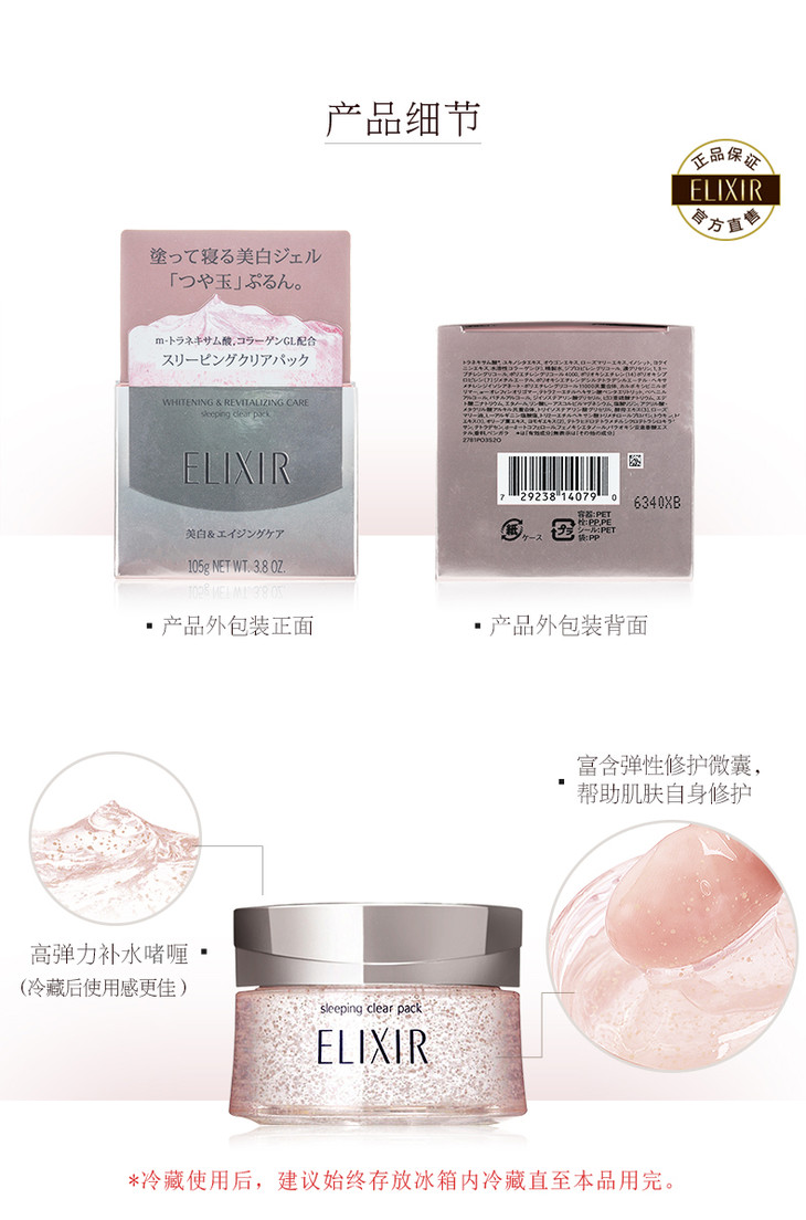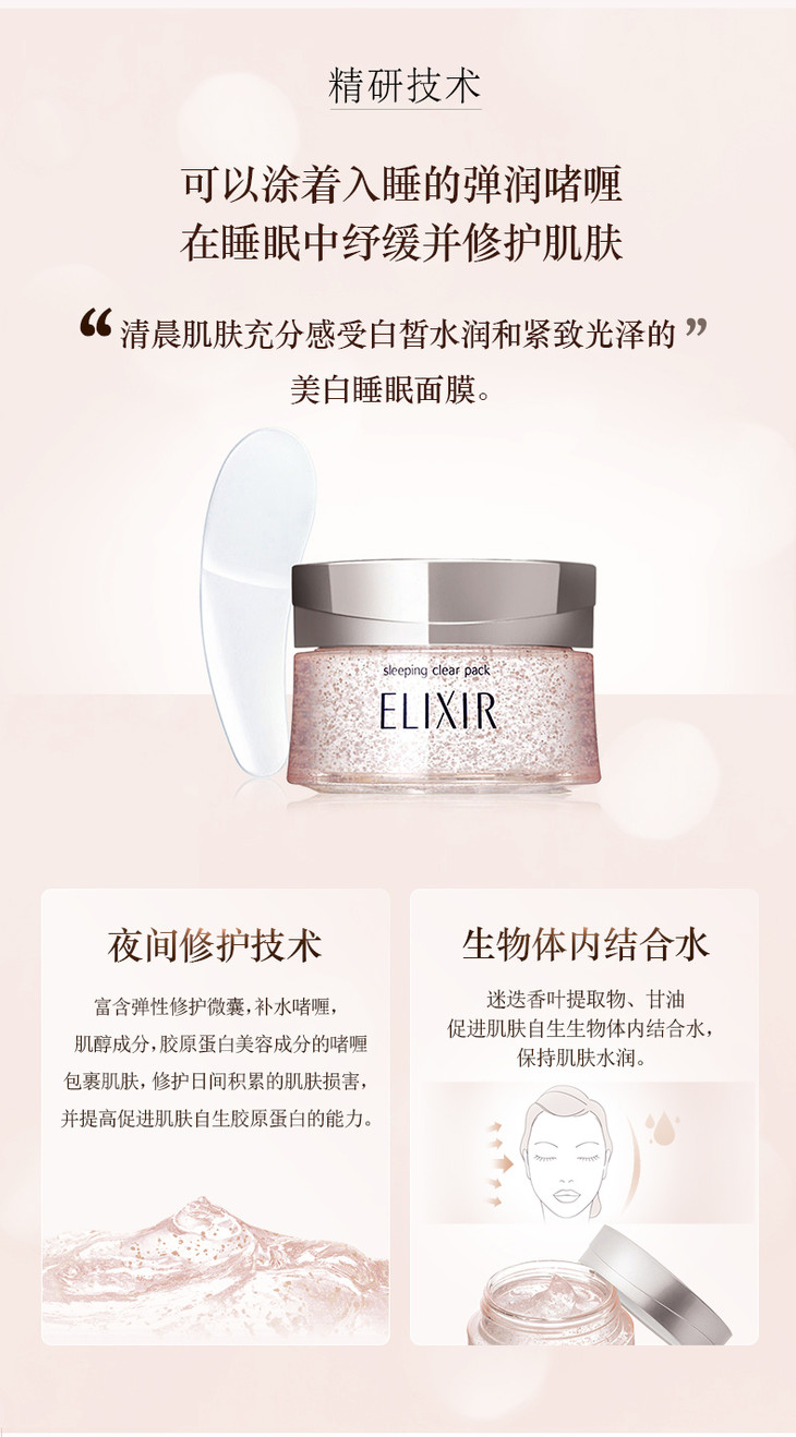 【香港直邮】日本ELIXIR怡丽丝尔胶原弹力透白保湿睡眠面膜