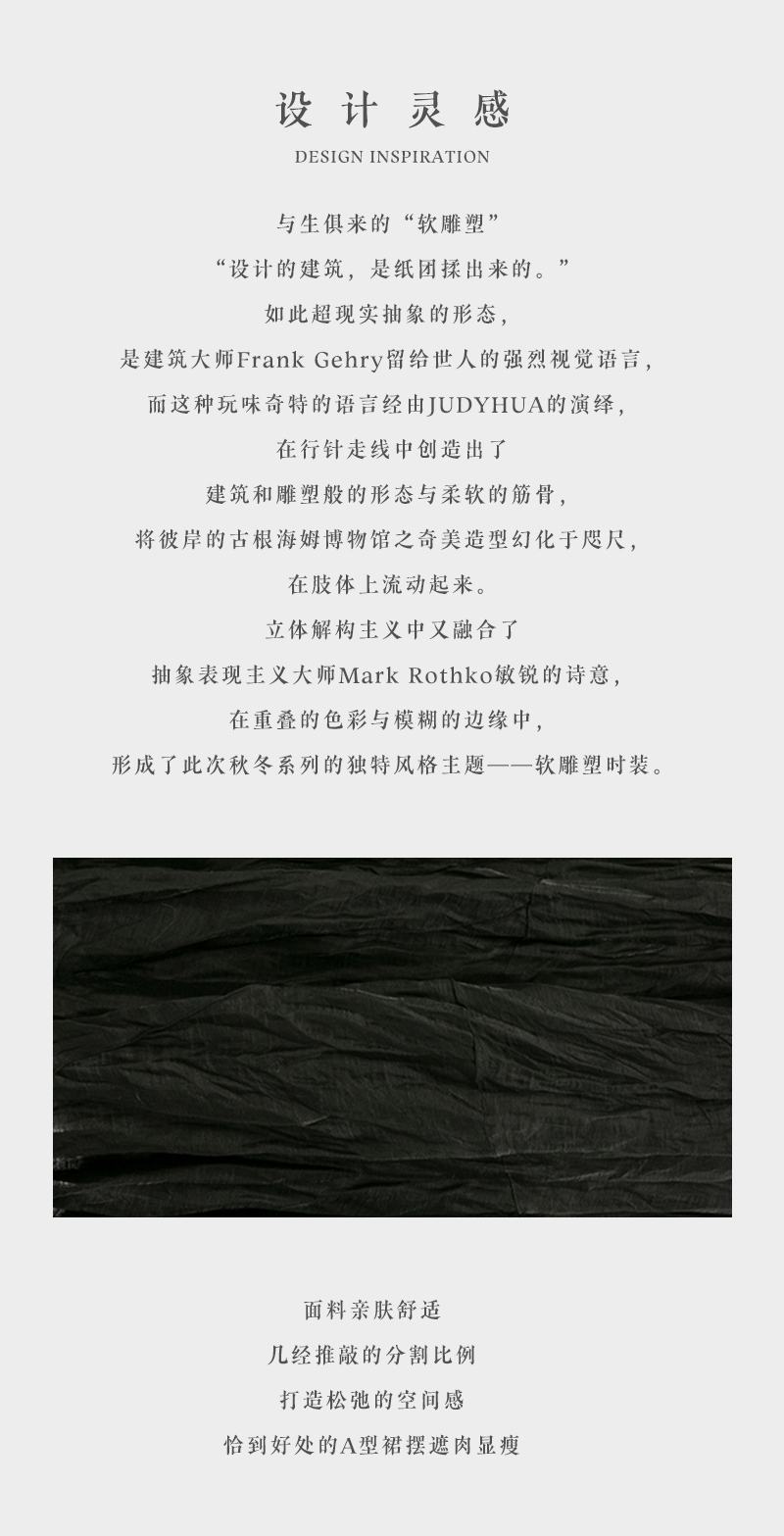 以极简建筑风格,诠释对生活美学之独特理解,JUDYHUA以作品触动您心。更多新款上架,请亲临JUDYHUA STUDIO试穿选购。预约电话:021-62663449,18201881913