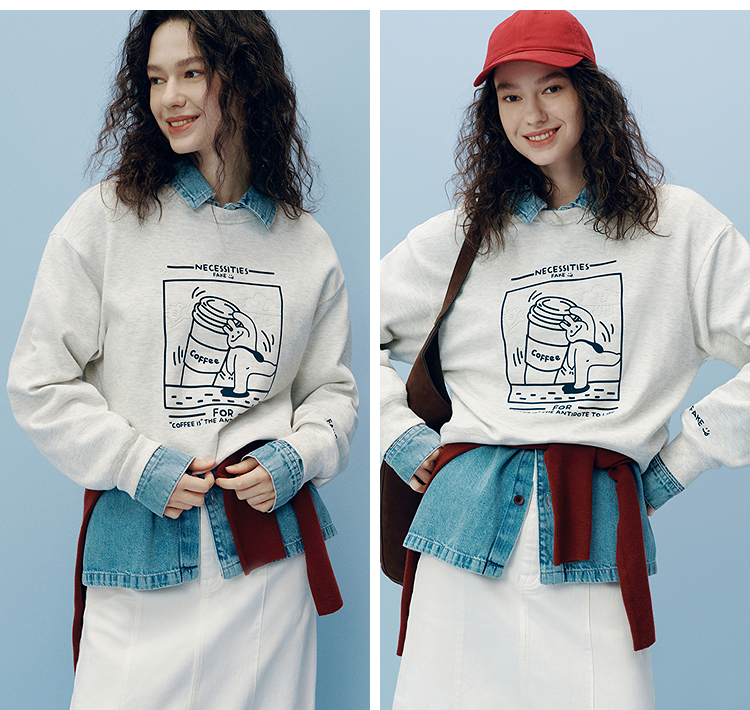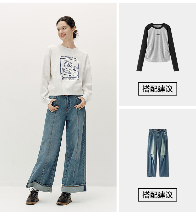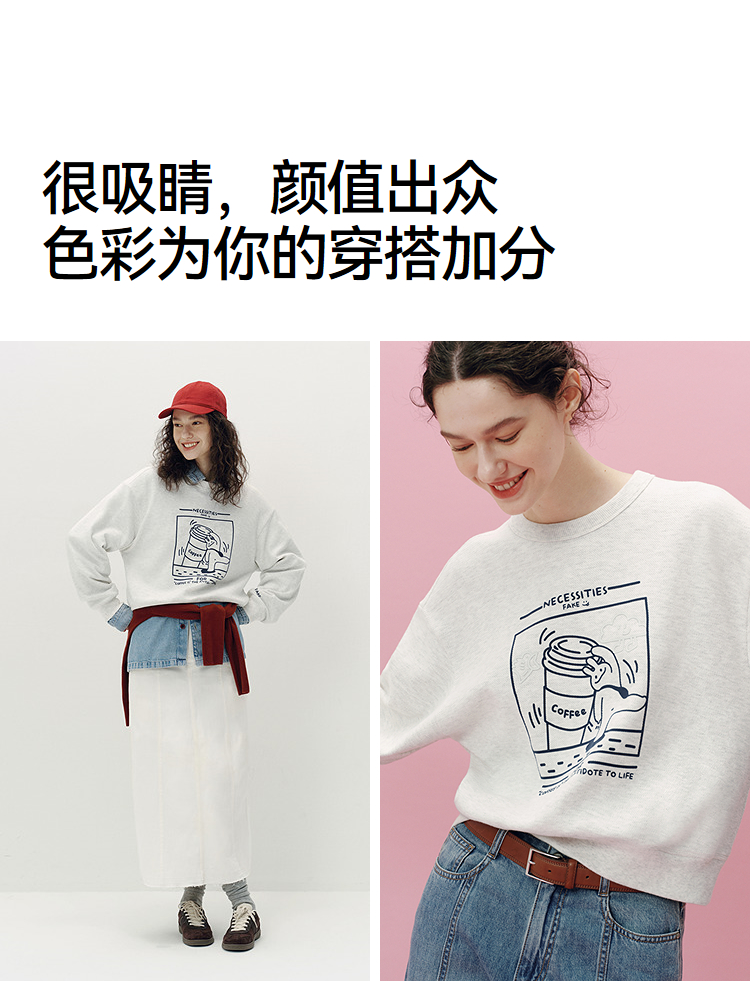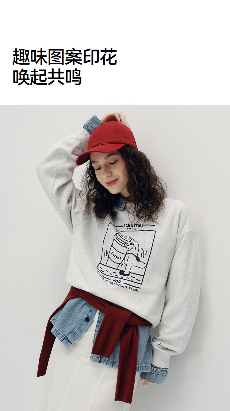 [商场同款]森马JUJU联名卫衣女落肩宽松秋季2025新款趣味图案衣服