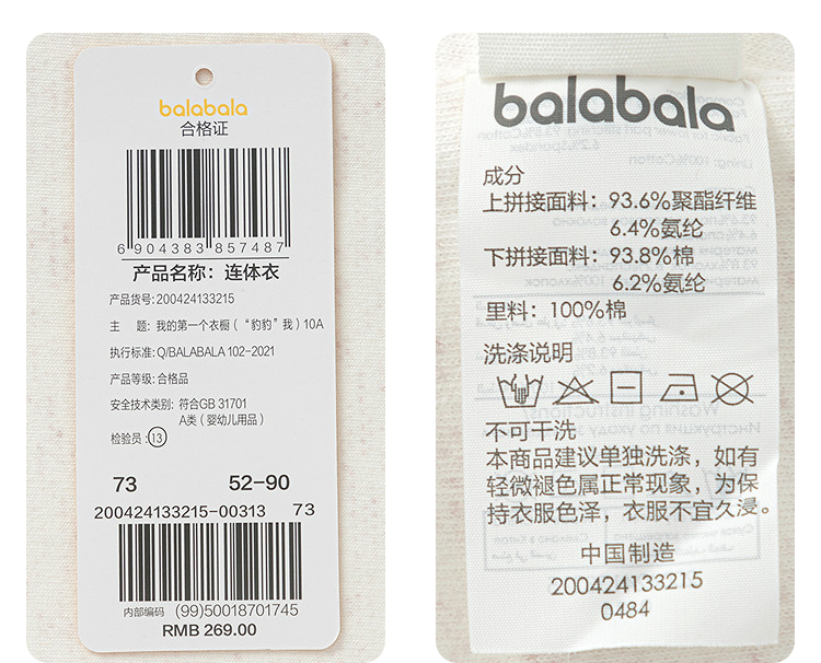 巴拉巴拉童装新生儿连体衣婴儿衣服冬季宝宝哈衣爬服可爱萌趣舒适