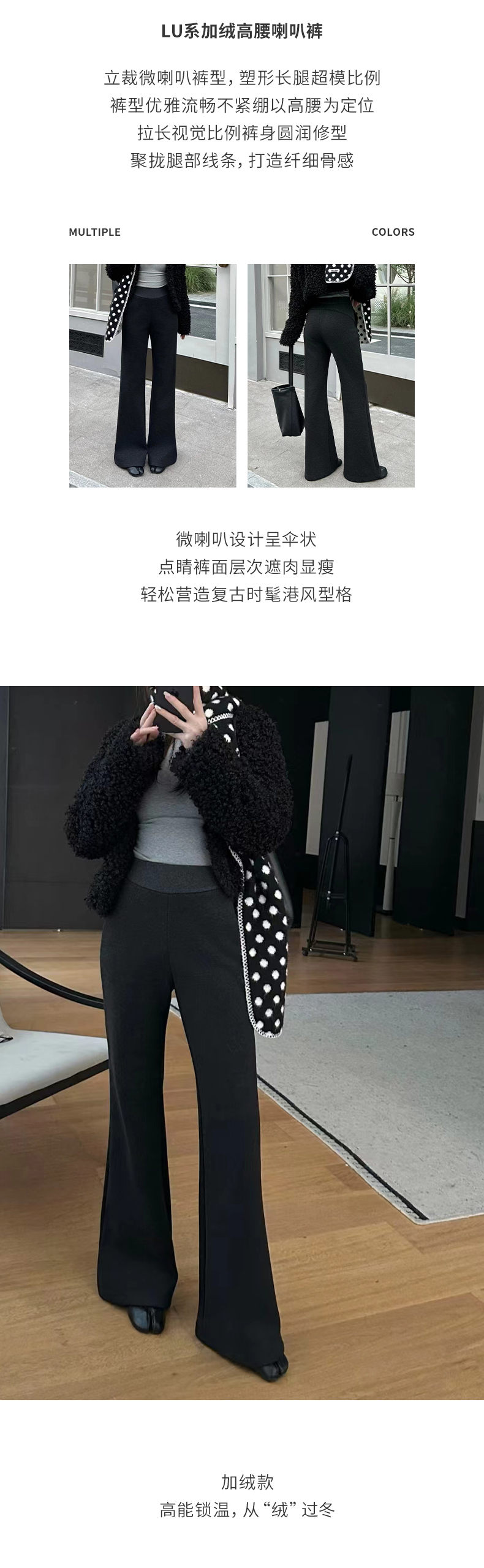 【喇叭复古】阿菁娜冬季新款LU系港风裤高腰微喇叭复古时髦加绒款F30D210037