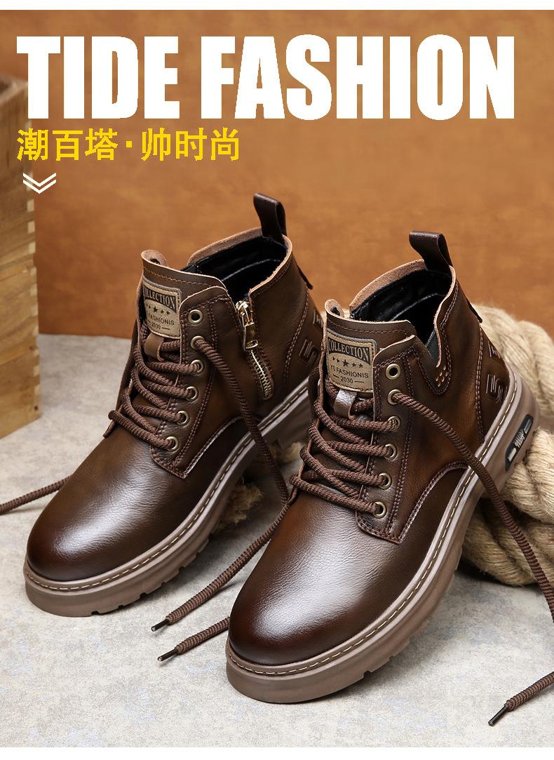 2025冬季马丁靴男款真皮复古工装靴子男士英伦潮流加绒保暖棉鞋