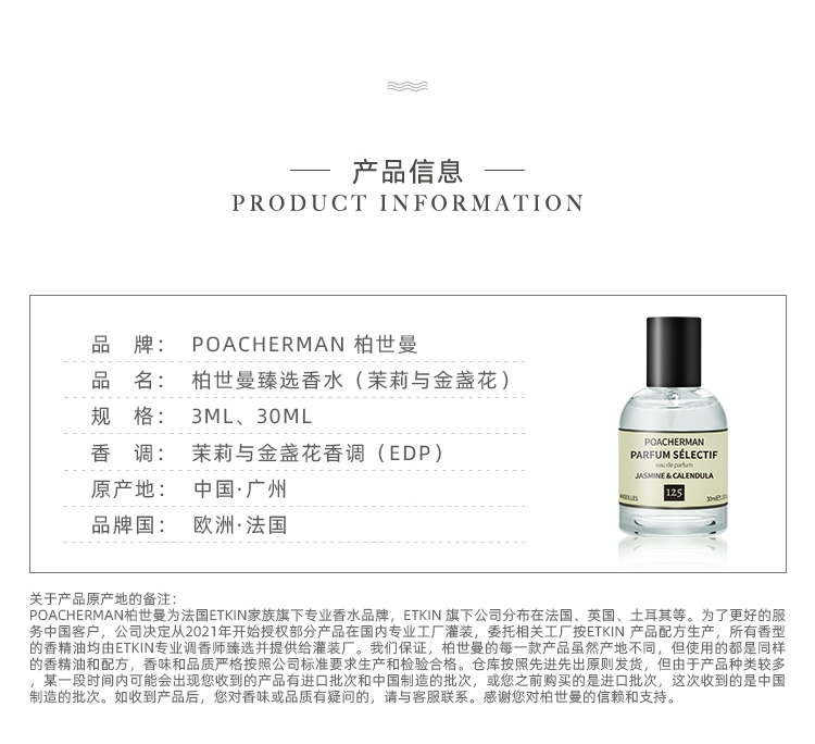 柏世曼茉莉与金盏花香水 花香调持久留香小众香水学生淡香