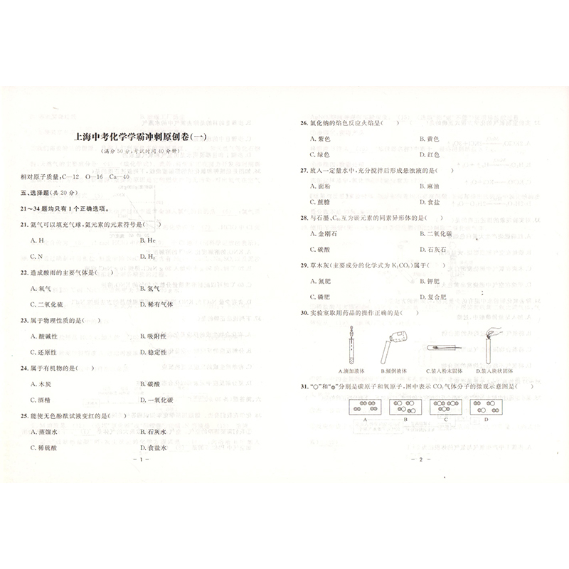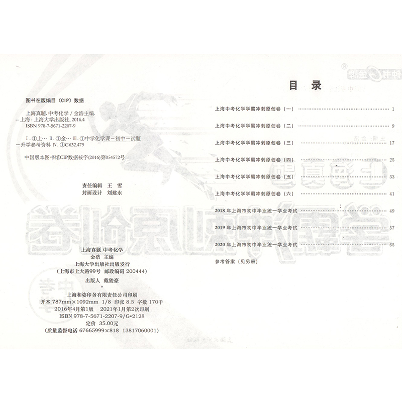 钟书金牌 2021新版 上海真题学霸冲刺原创卷 中考化学 2018-2020上海初中学业考试卷 上海大学出版社