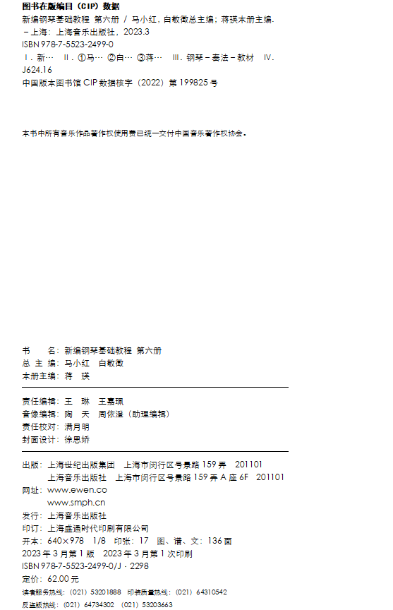 新编钢琴基础教程 第6册 扫码赠送音频 马小红 白敬徵主编 中央音乐学院周广仁先生作序推荐 上海音乐出版社自营