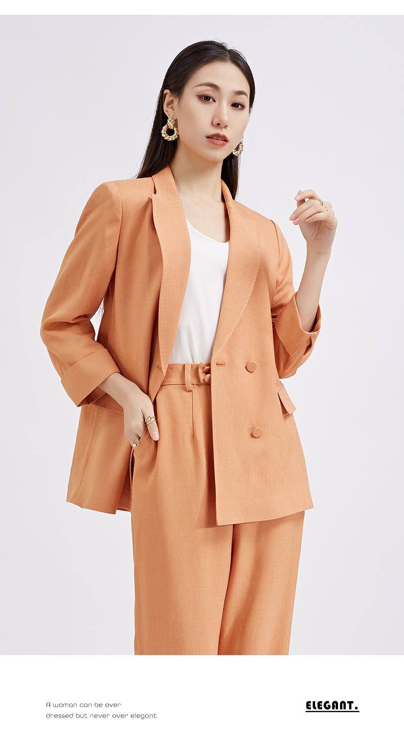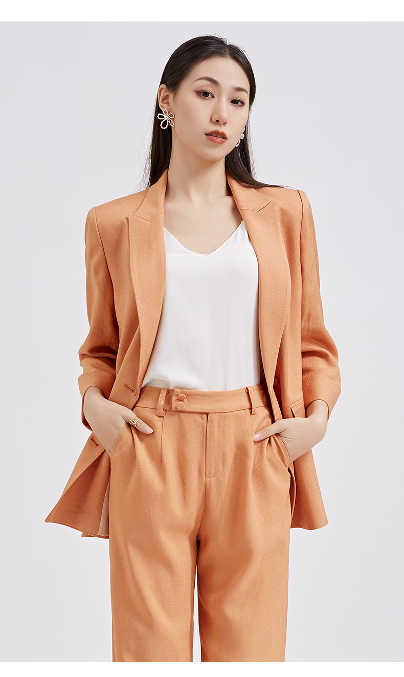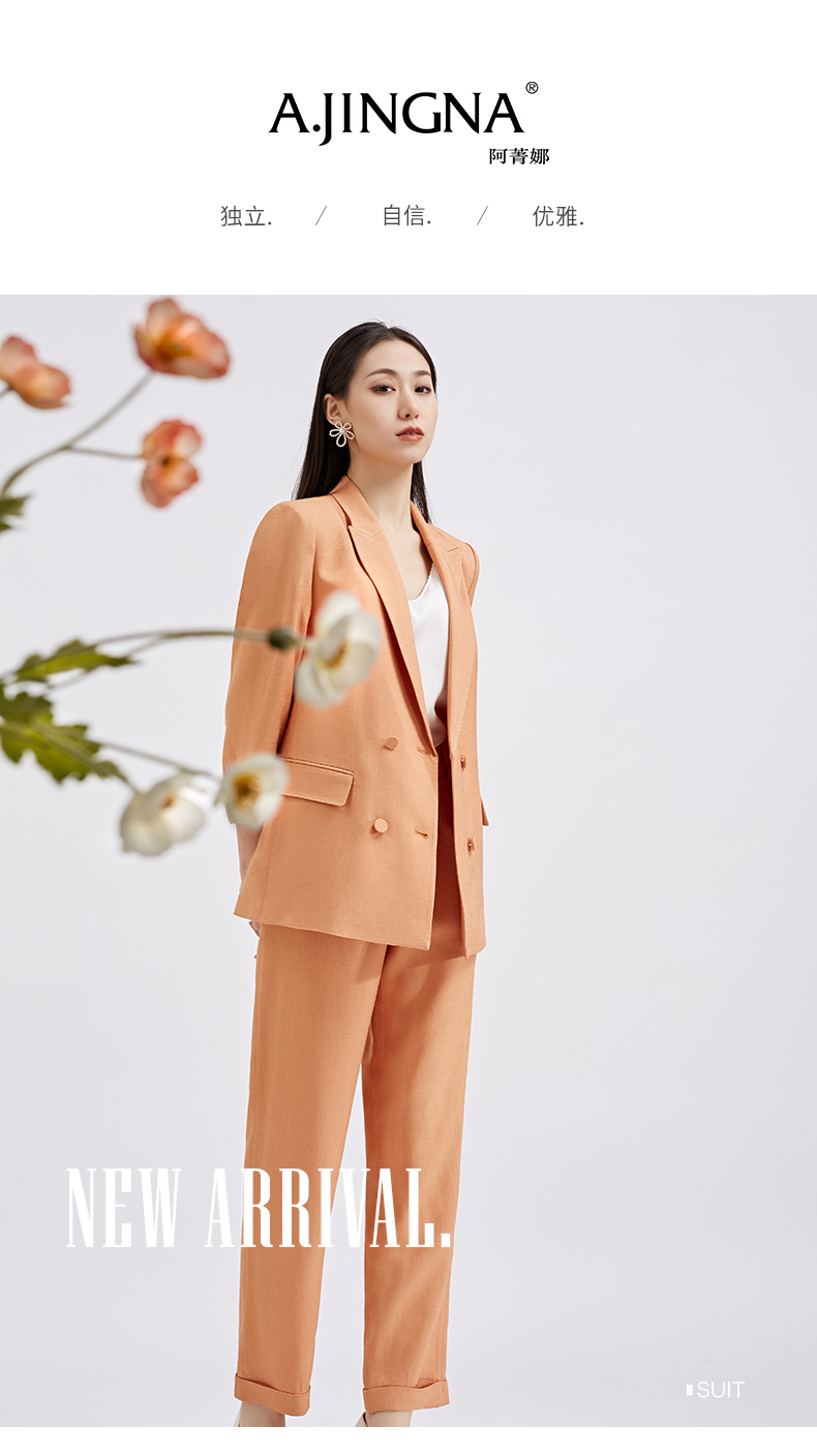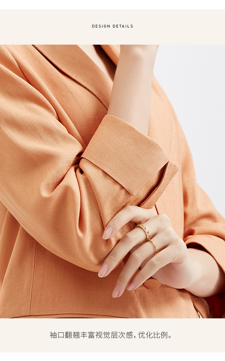 【商场同款】阿菁娜春夏新品醋酸纤维麻感西服时尚亮橘黄女士西装A27C108001