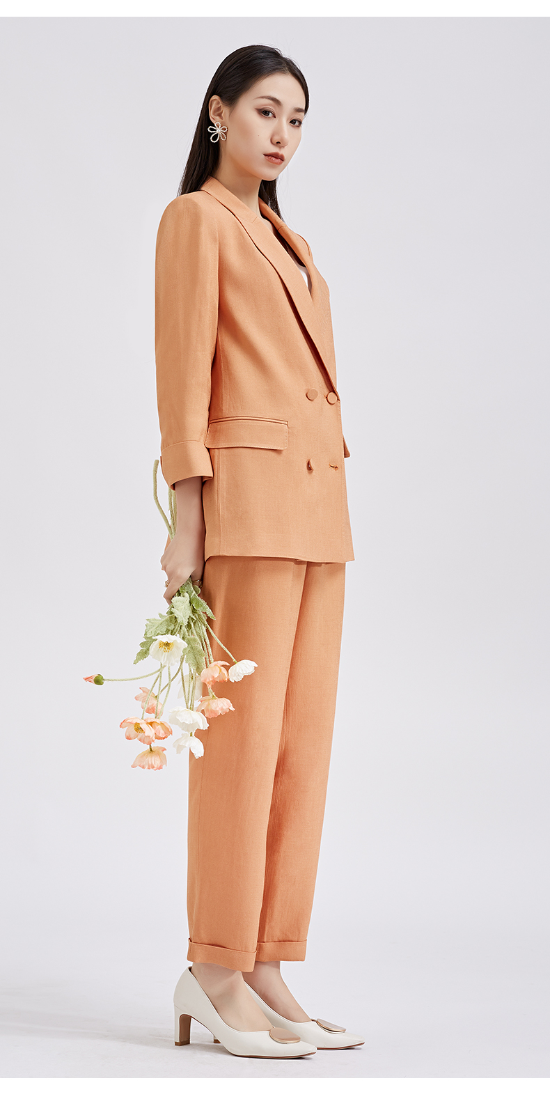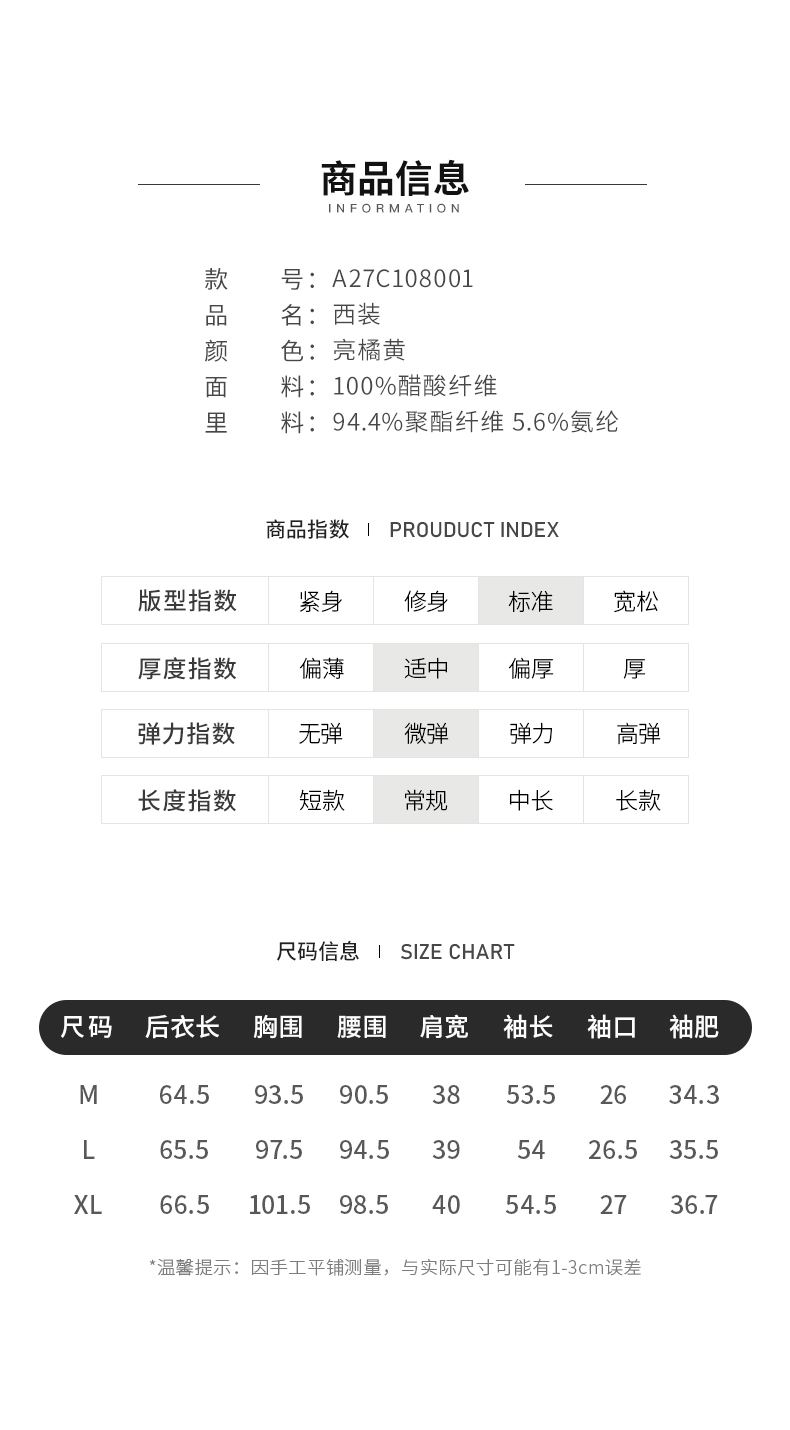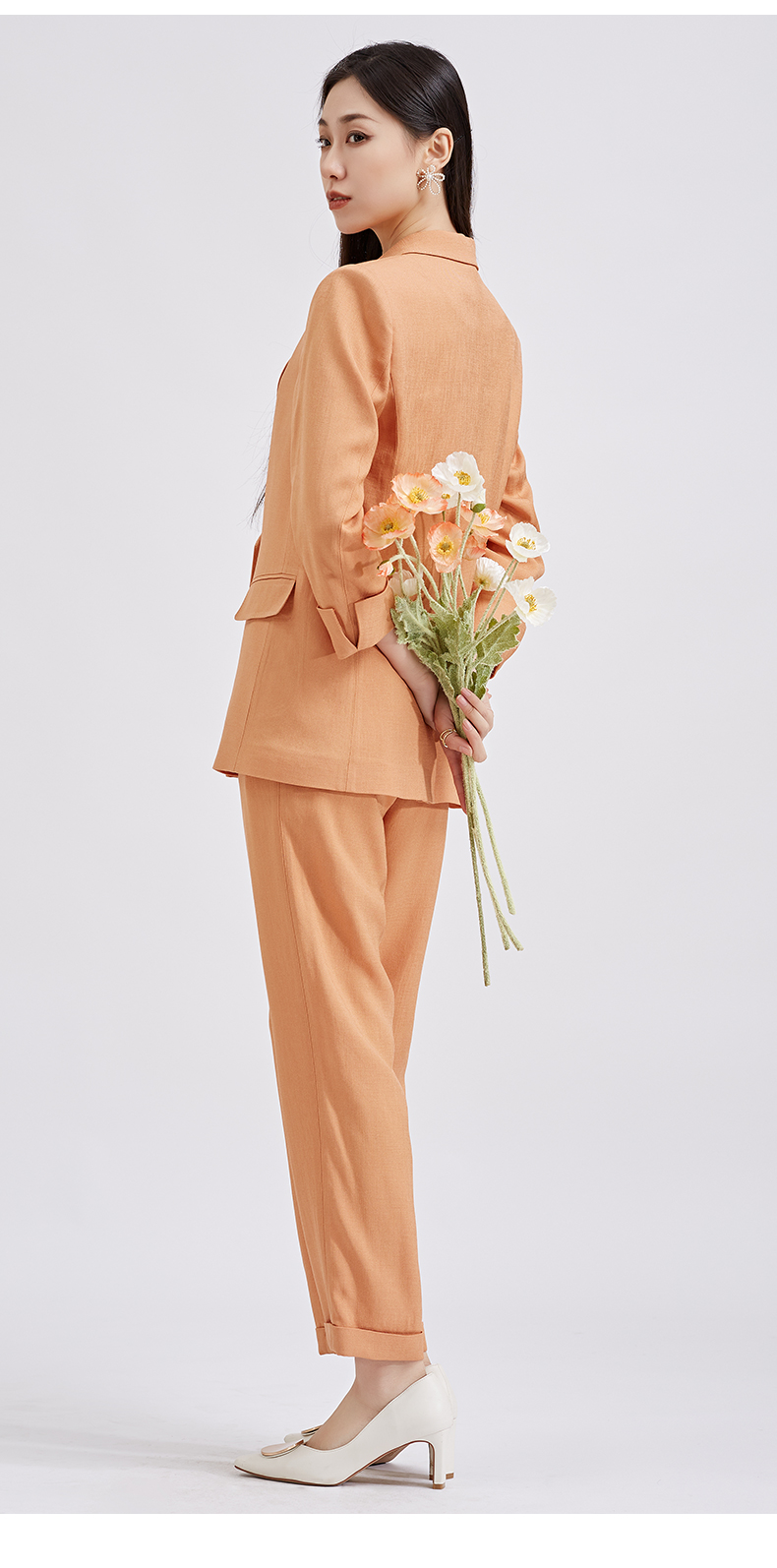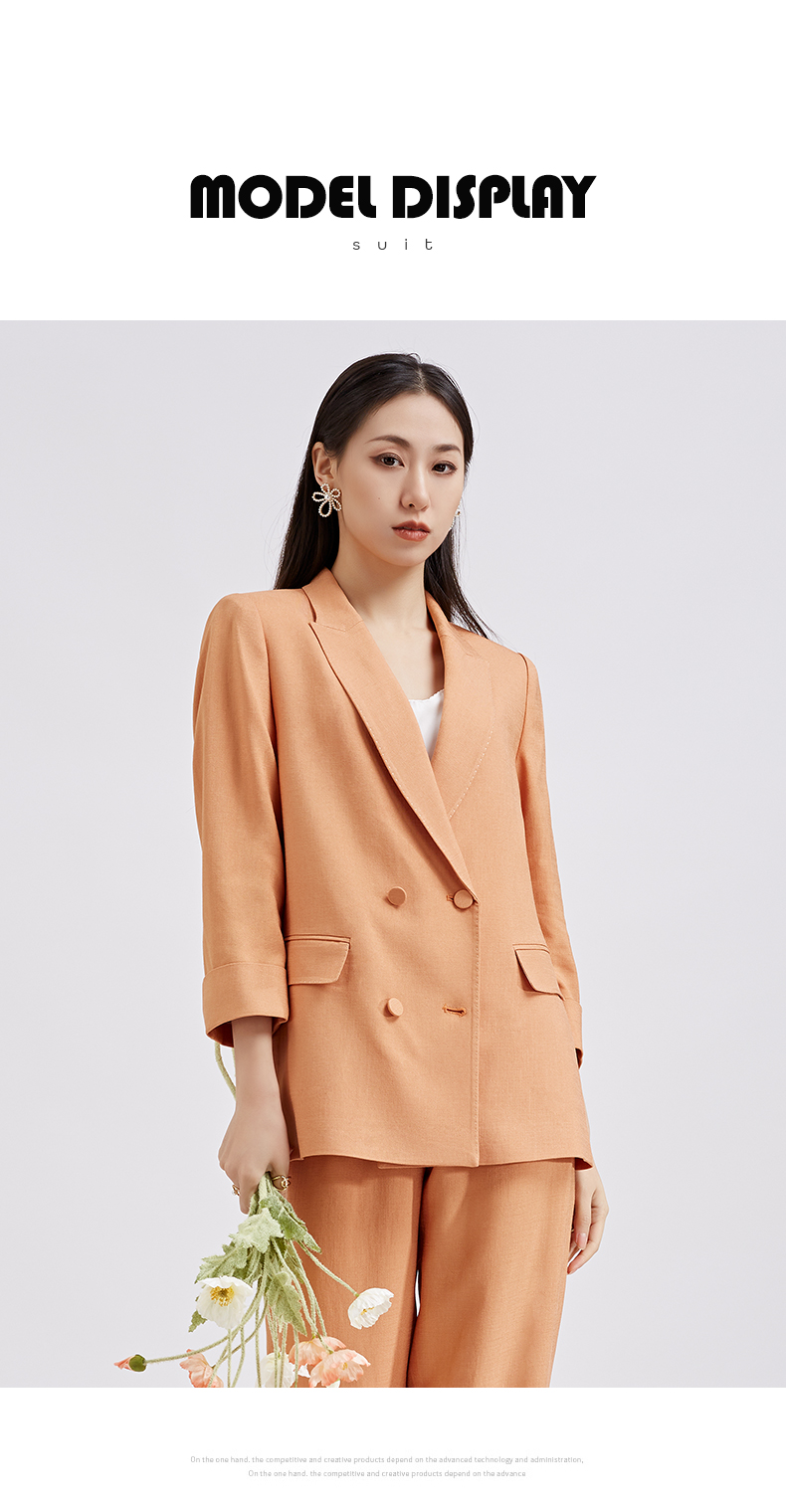 【商场同款】阿菁娜春夏新品醋酸纤维麻感西服时尚亮橘黄女士西装A27C108001