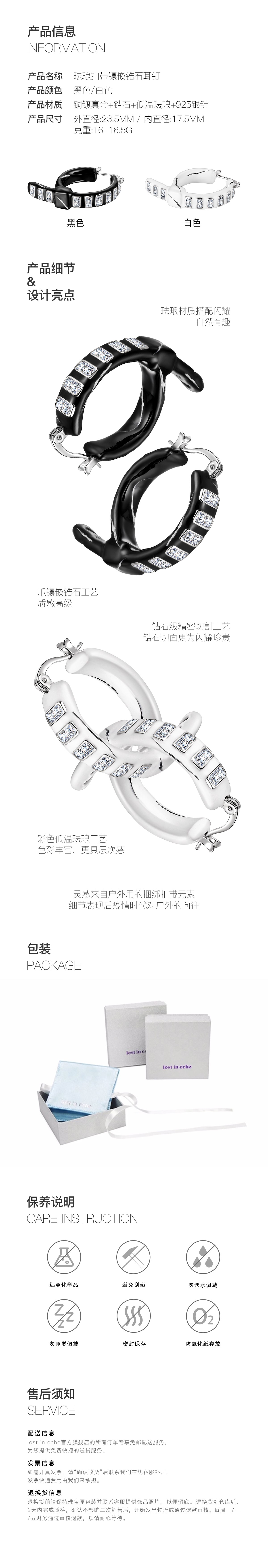 lost in echo 设计感轻奢小众珐琅扣带镶嵌锆石耳钉