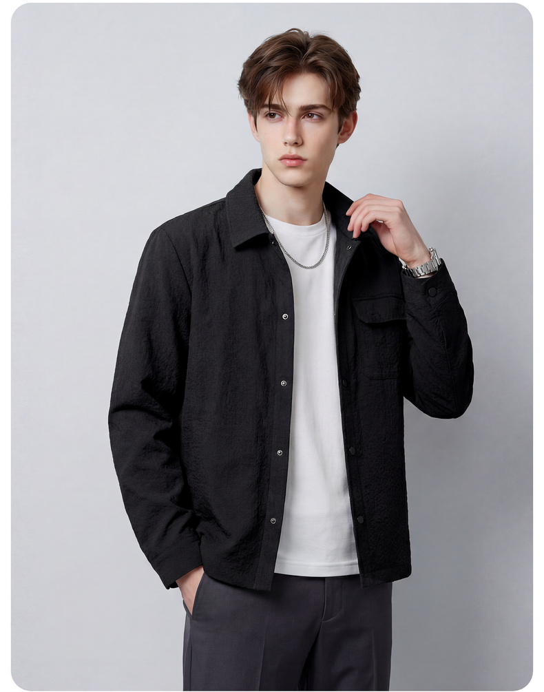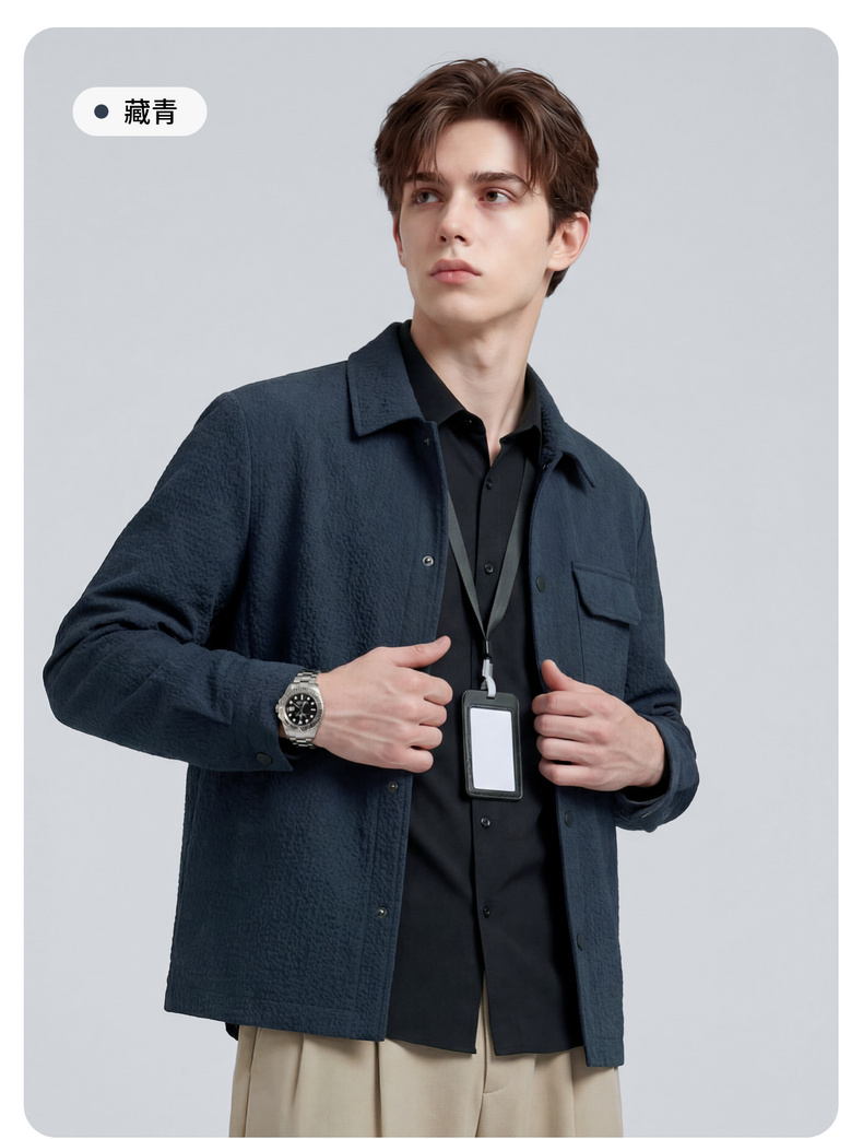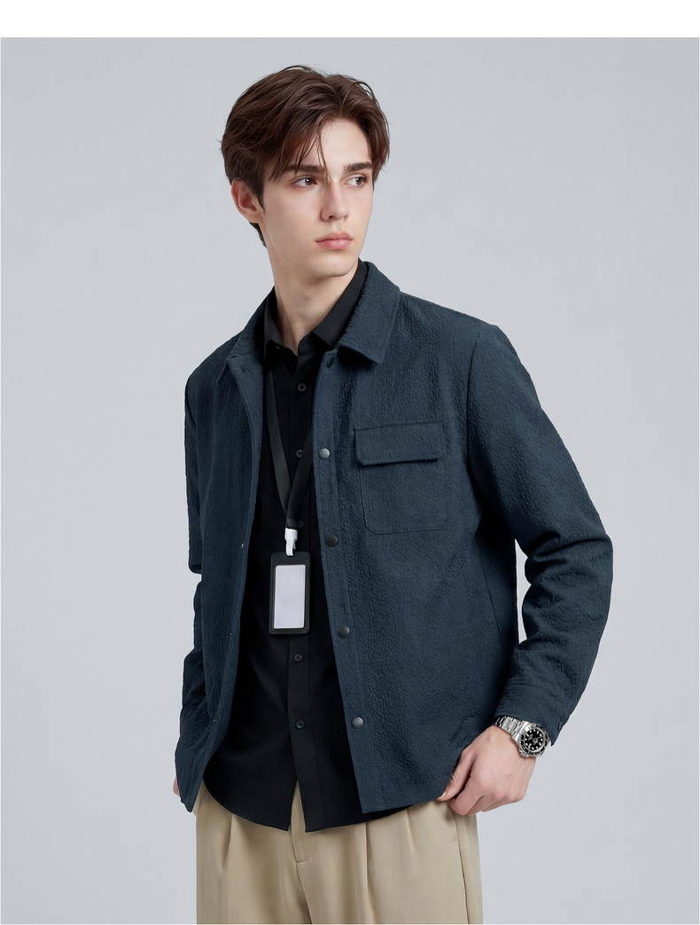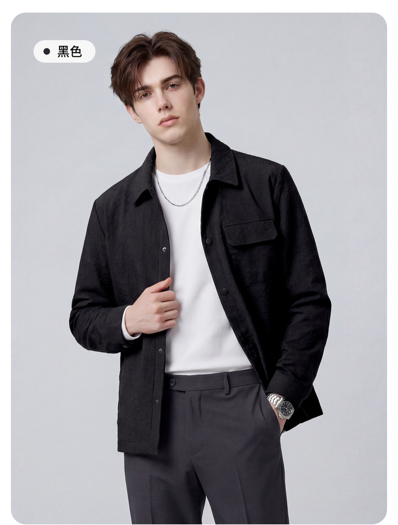 【泡泡面料】圣得西男士春季外套2026新款翻领轻商务通勤衬衫夹克