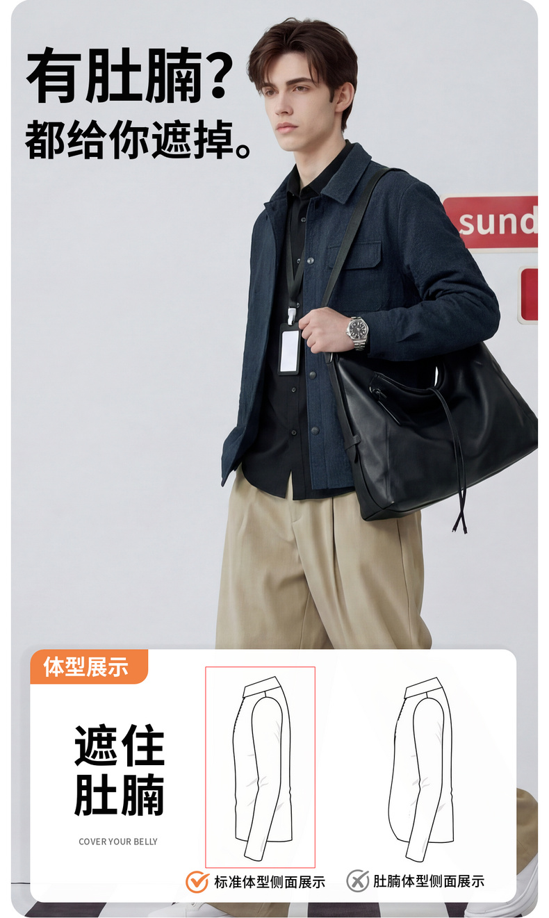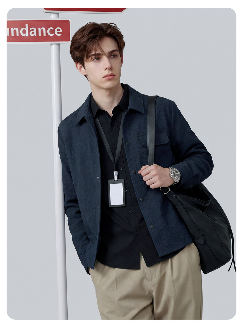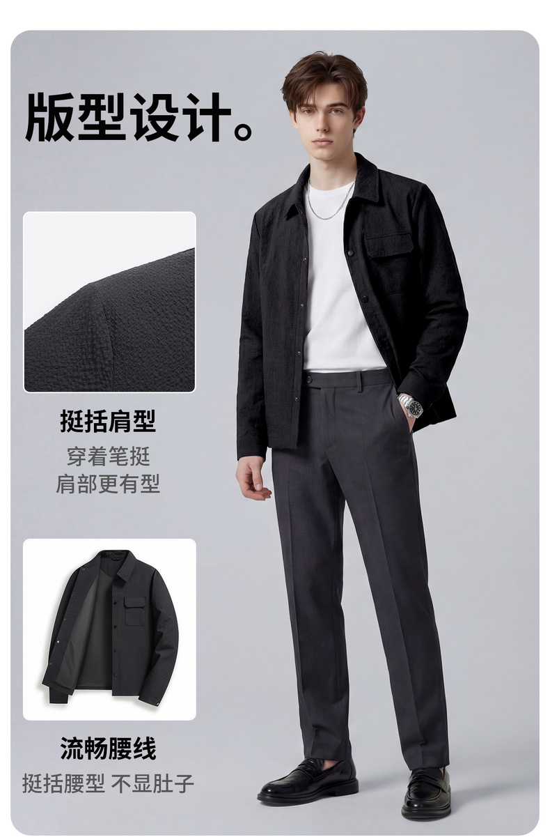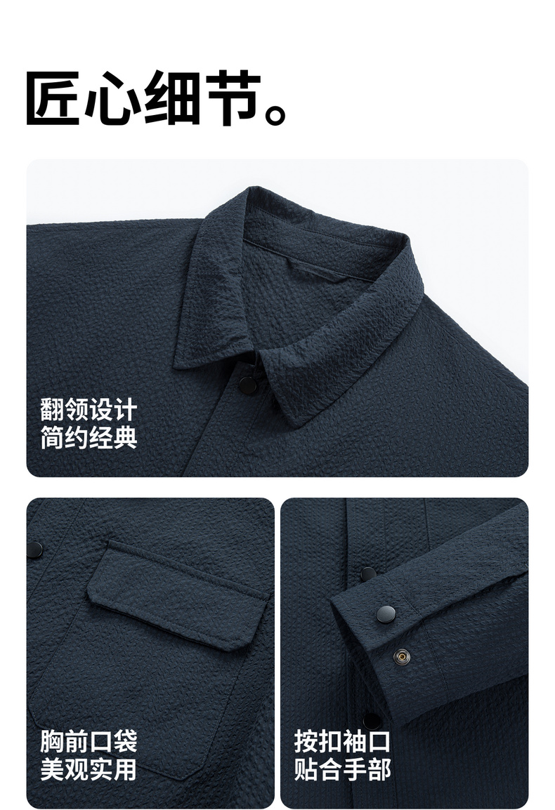 【泡泡面料】圣得西男士春季外套2026新款翻领轻商务通勤衬衫夹克