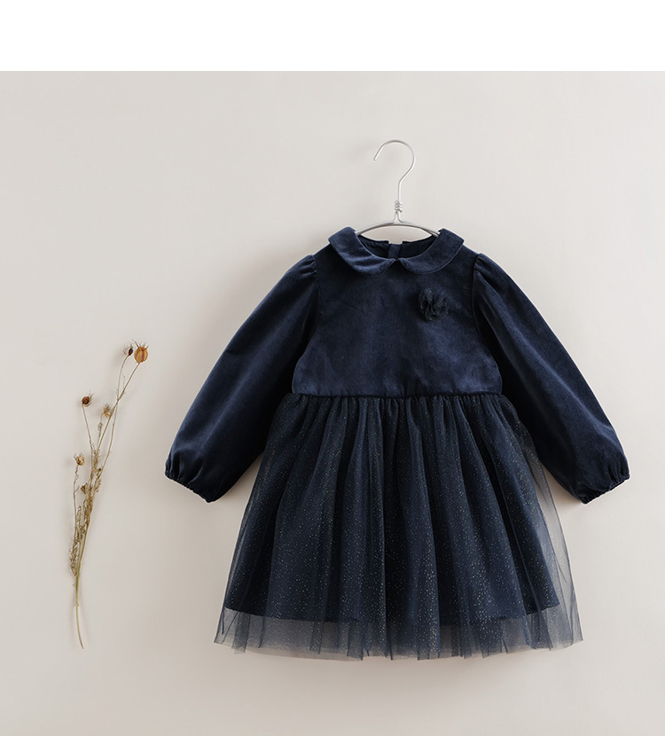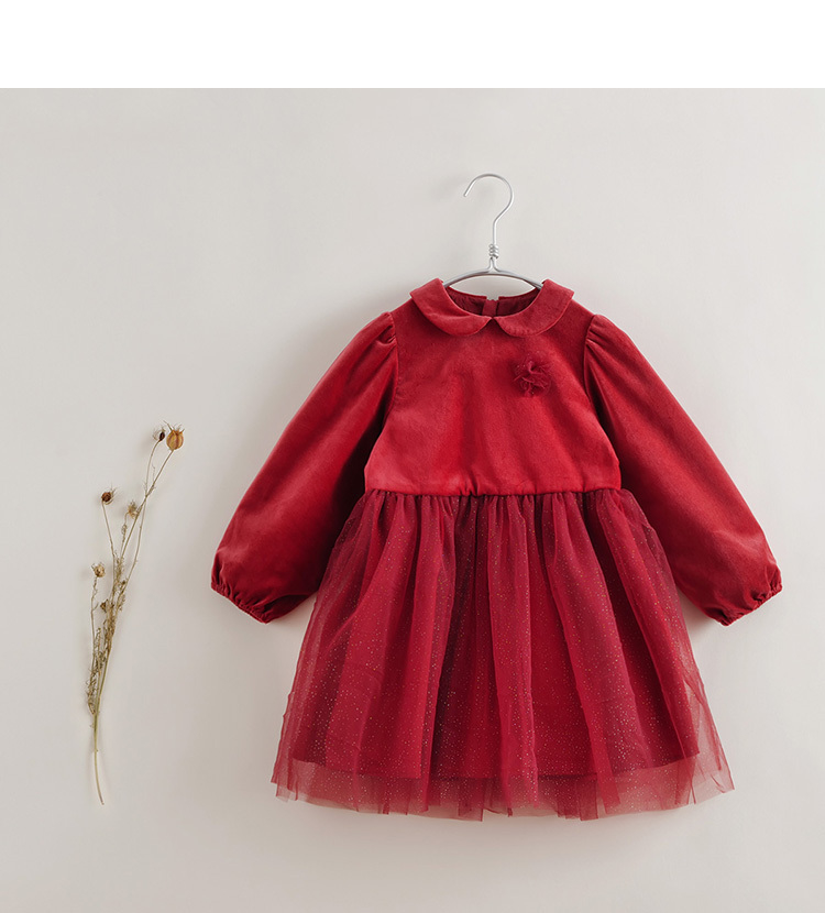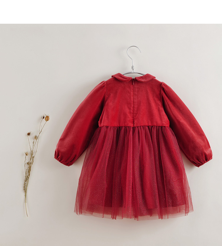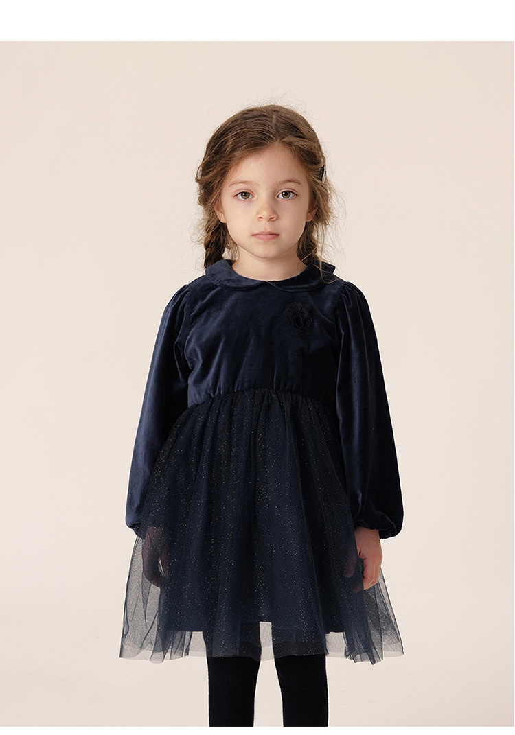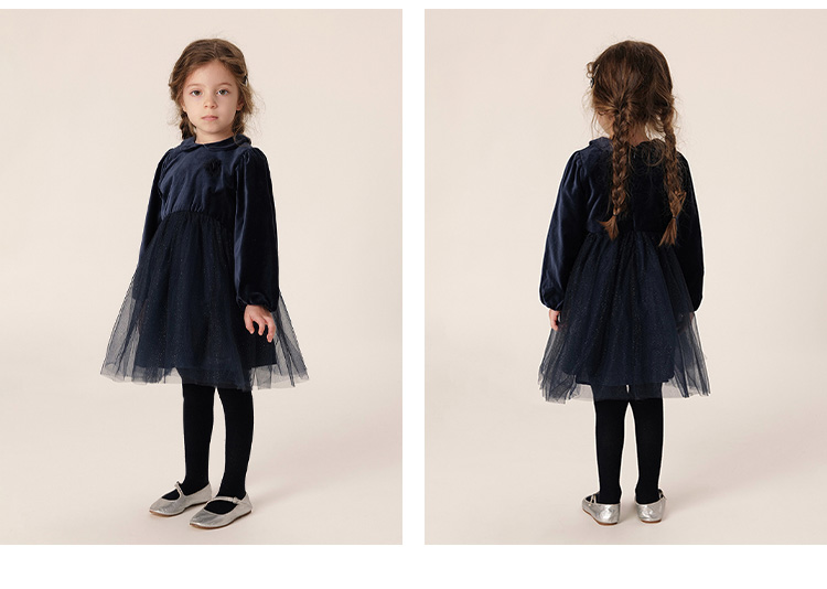 【马克珍妮 芦芙】秋冬新款 女童烫银网纱平绒连衣裙221392