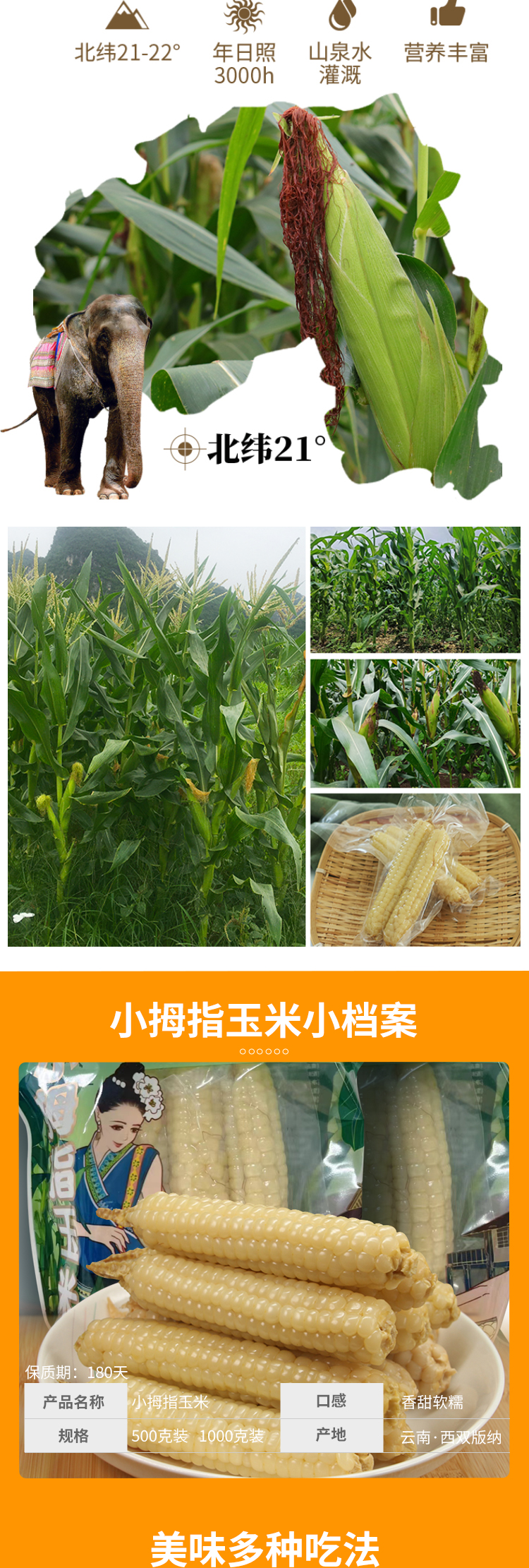 西双版纳—拇指小玉米香糯微甜 饱满弹牙 恰到好处 非转基因可以放心吃 真空包装 携带方便