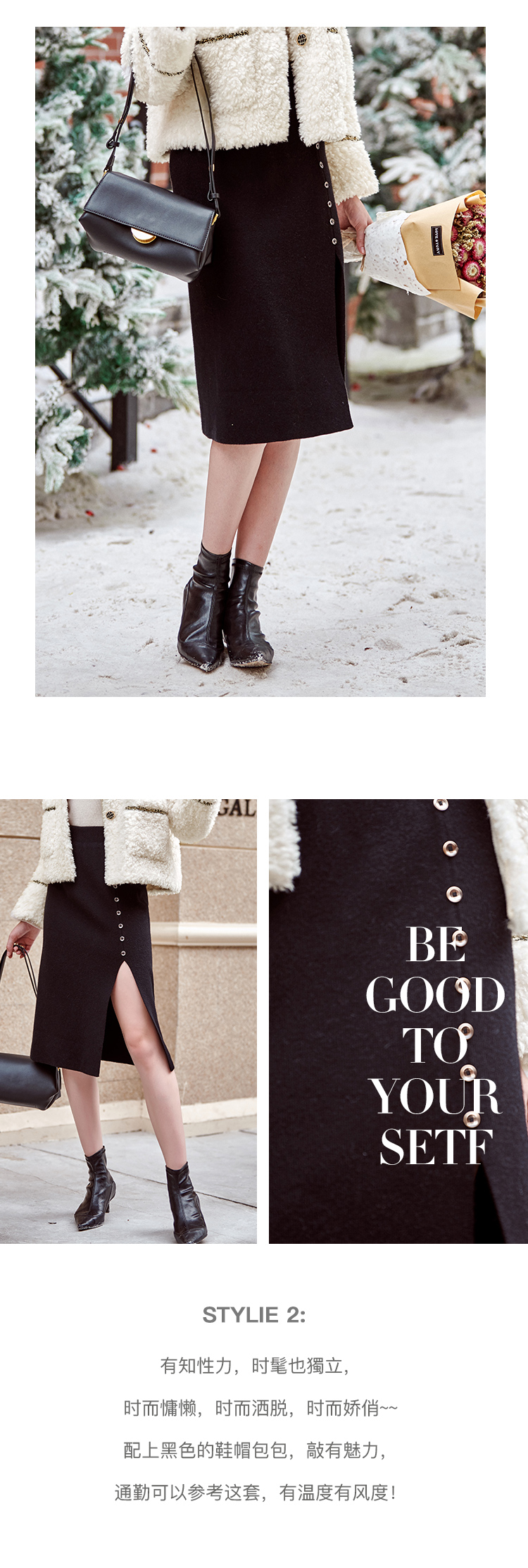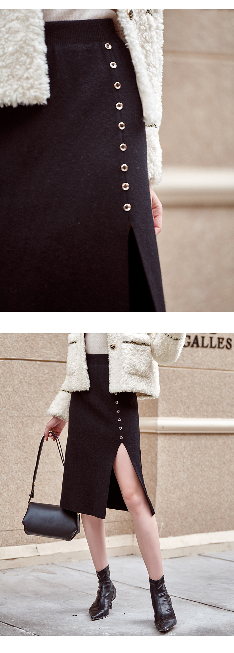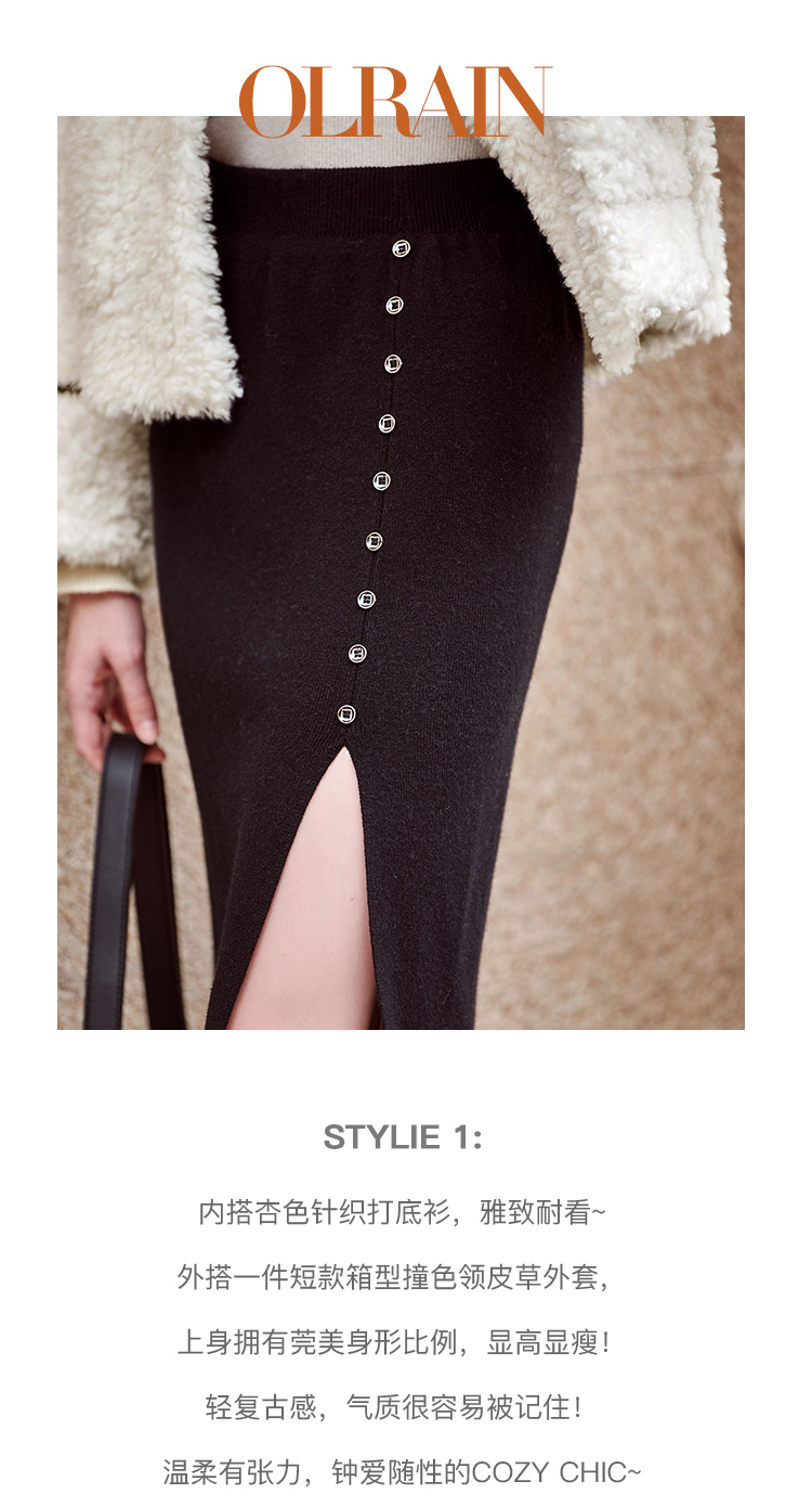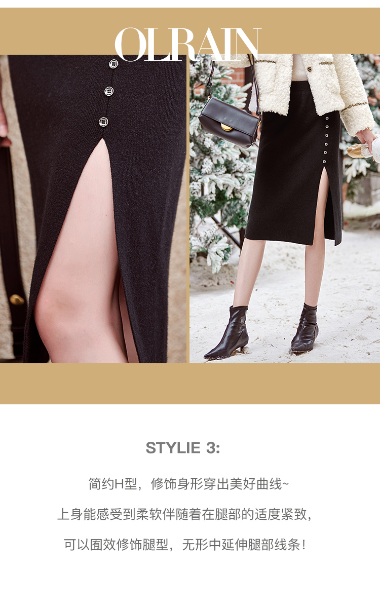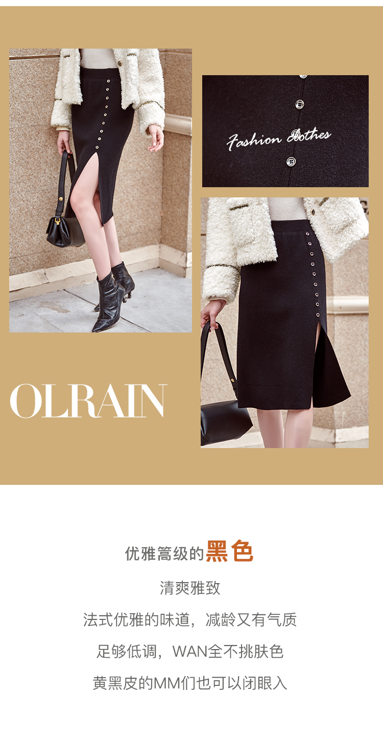 欧芮儿半身裙女2022春装单排扣开叉高腰显瘦包臀裙中长款一步裙