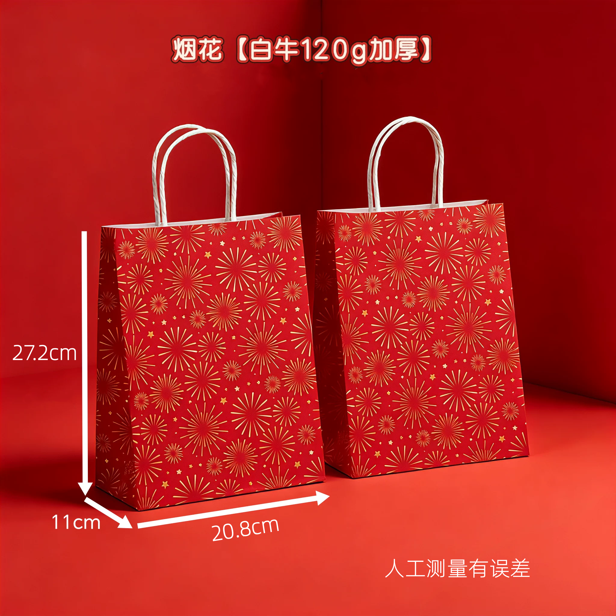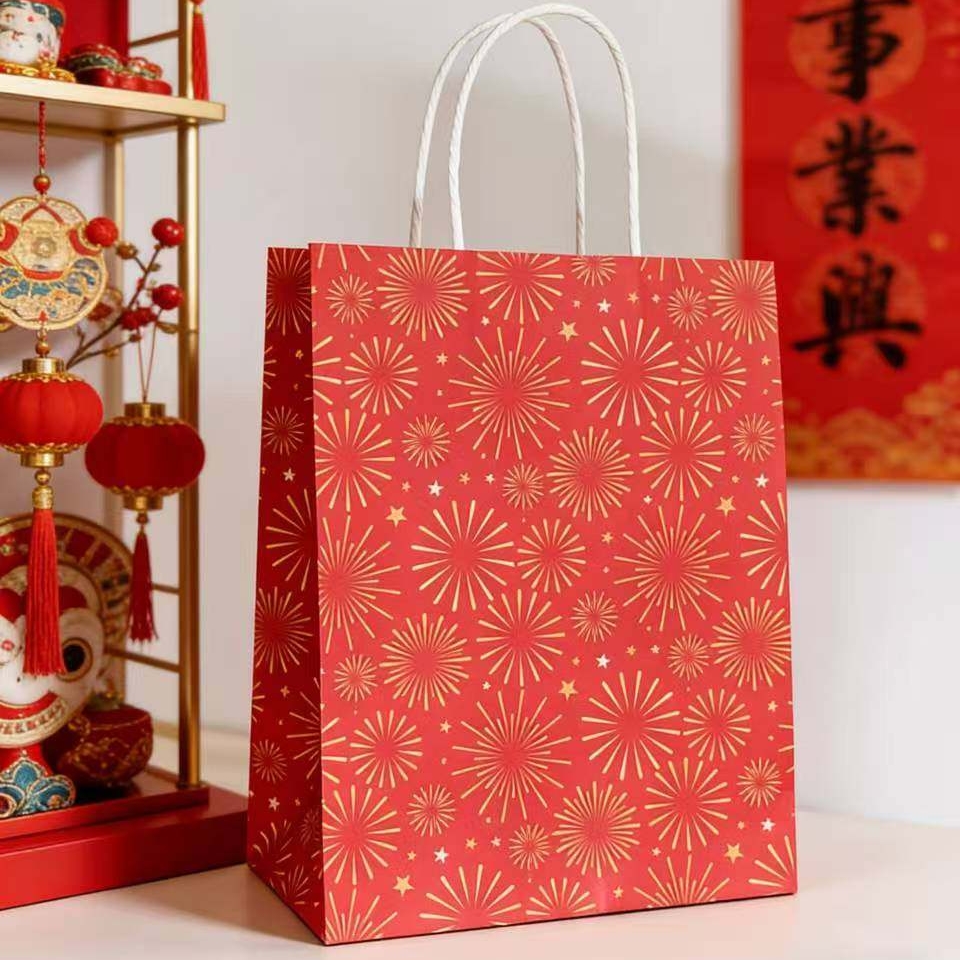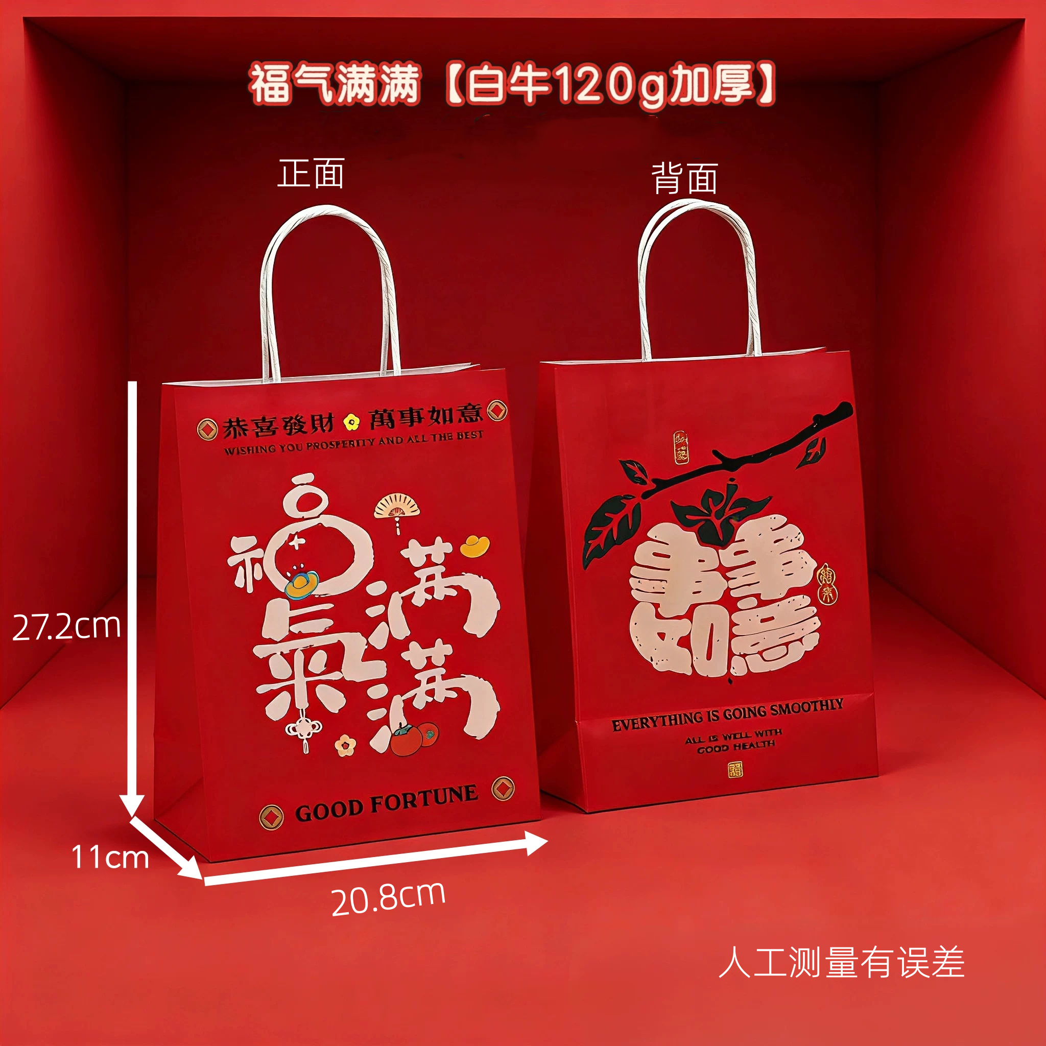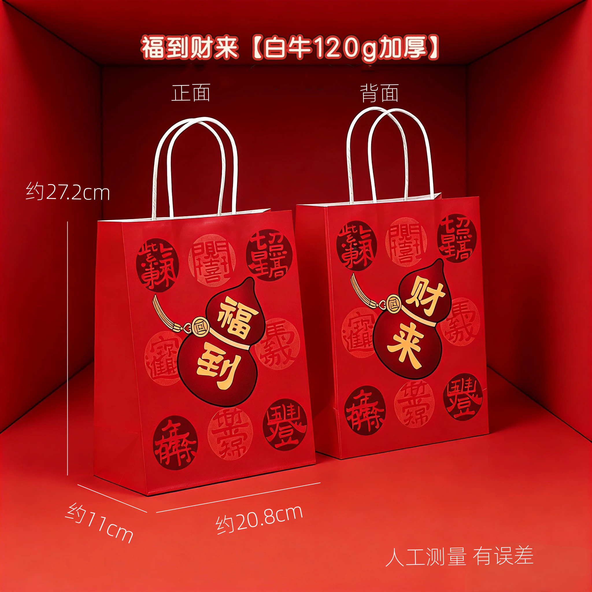 新年红色系手提袋 平安喜乐福气满满福到财来纸袋 礼品袋 糖果零食月饼外卖手提纸袋